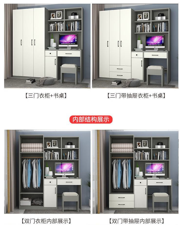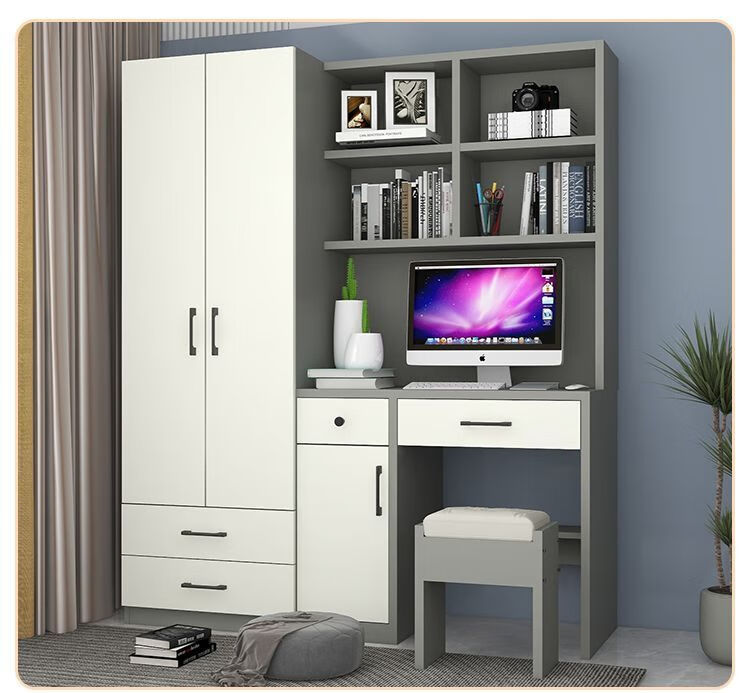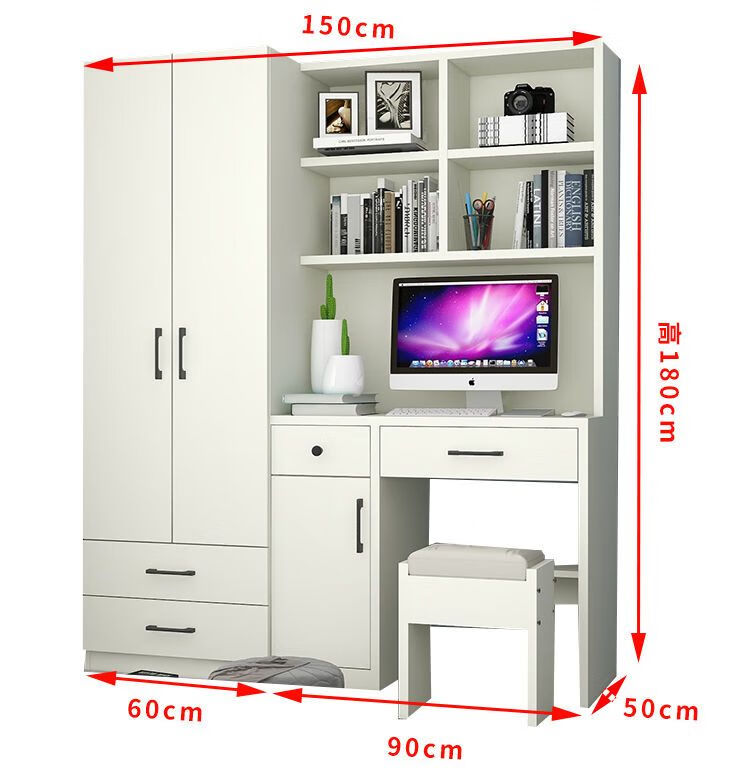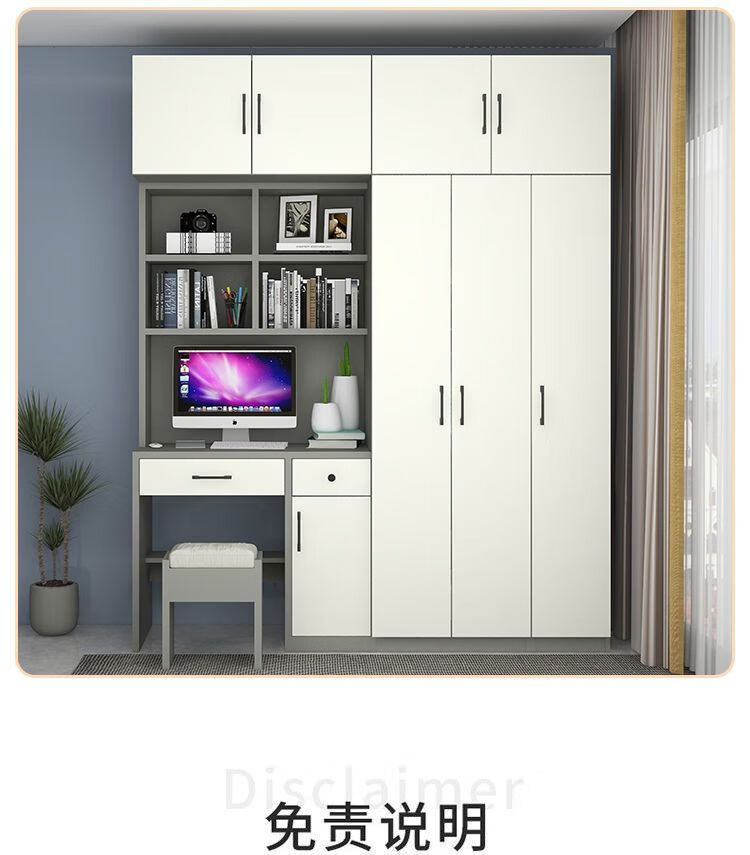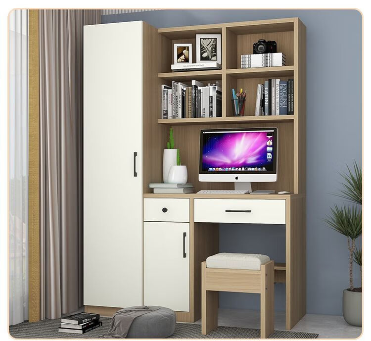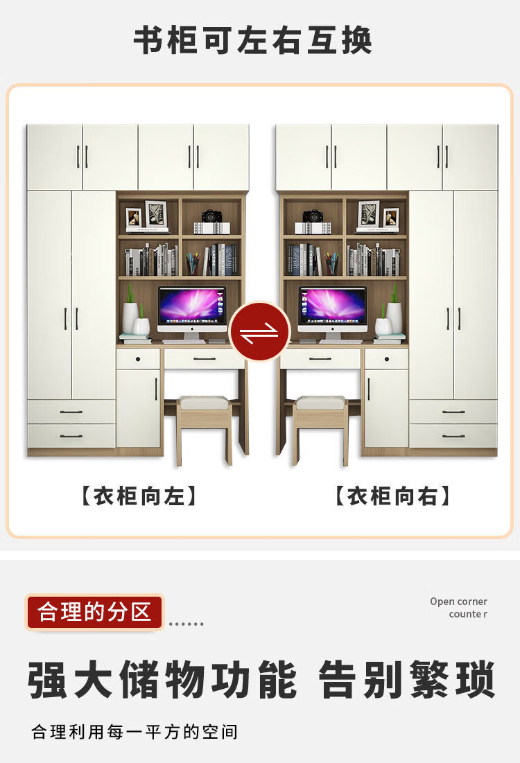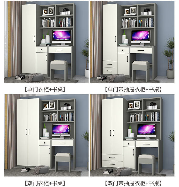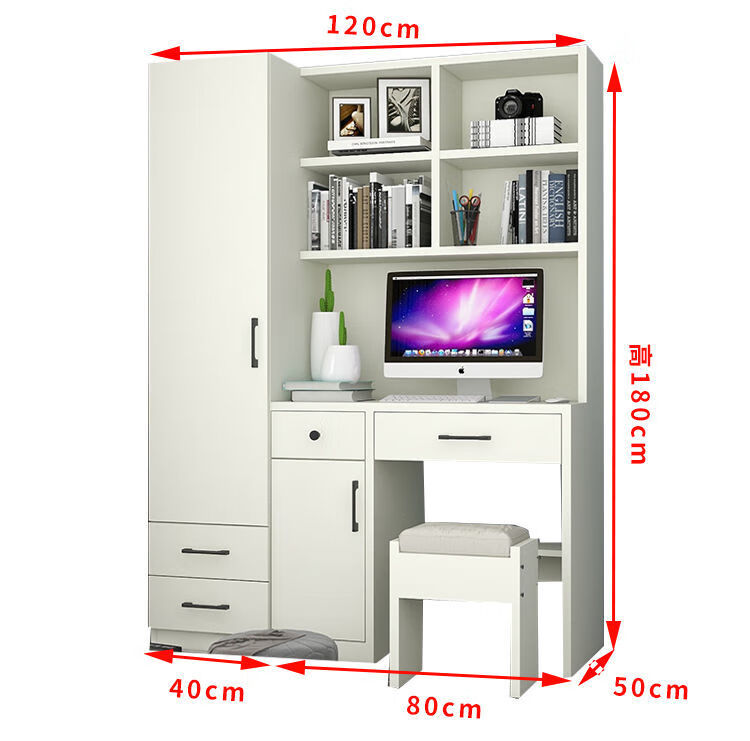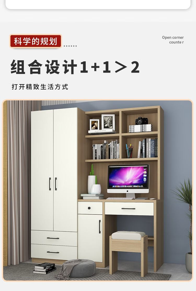 倘然之家现代简约书桌带衣柜一体电脑桌组合写字台学生书桌小户型连体书桌 白色升级款(不包安装) 1米2单门和书桌(送凳子)衣柜左
