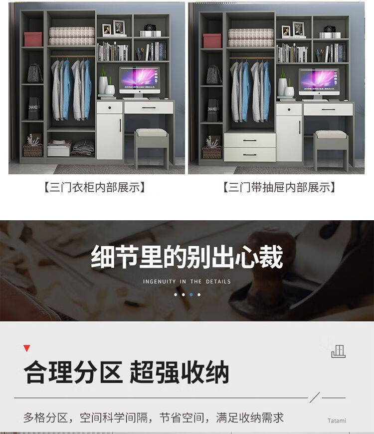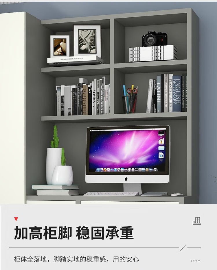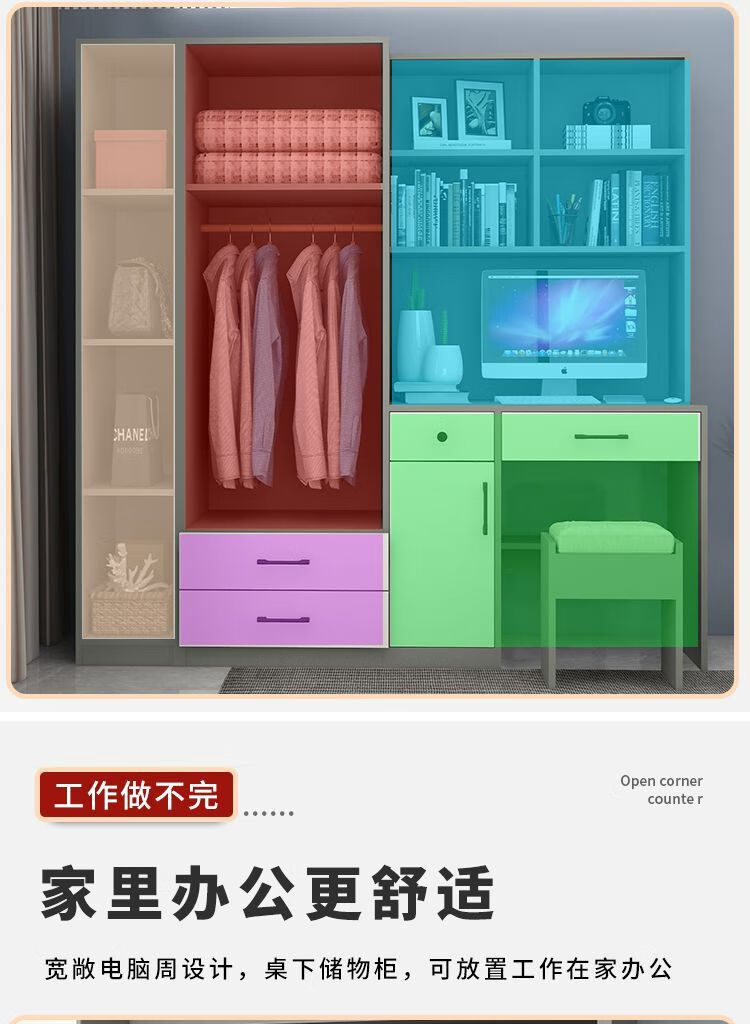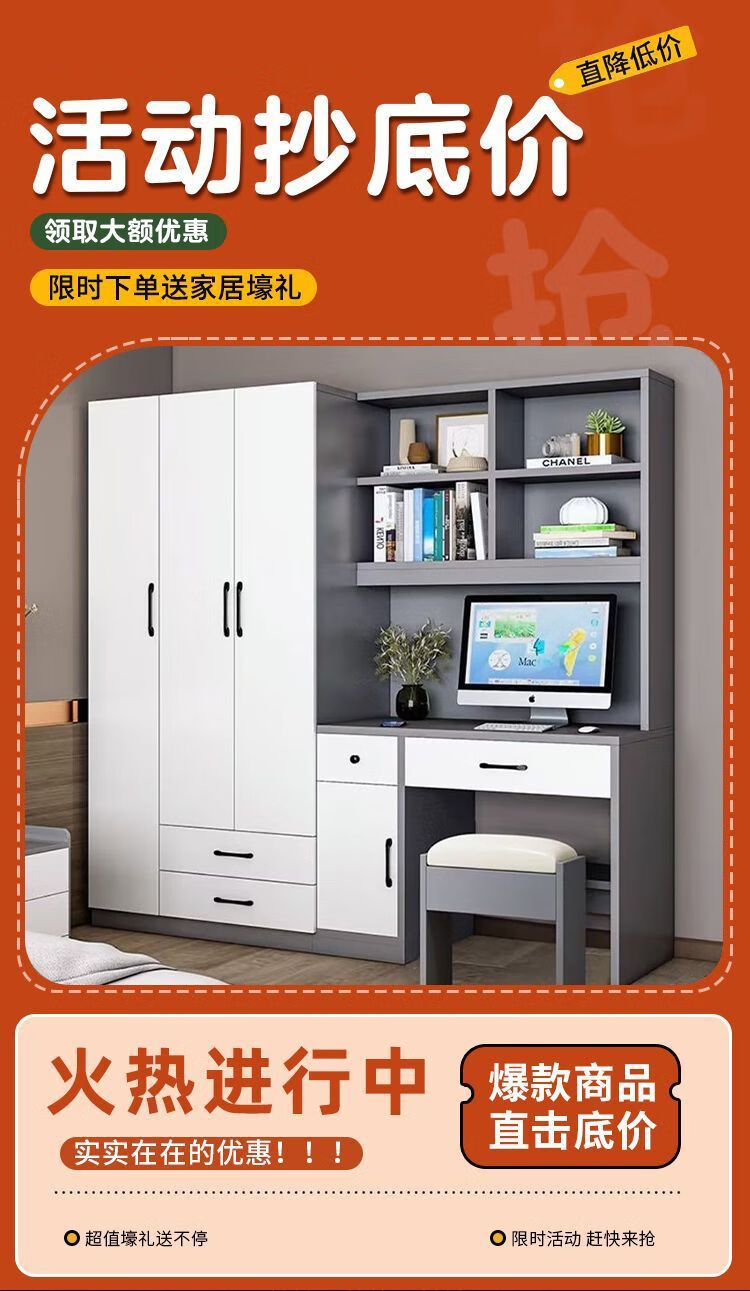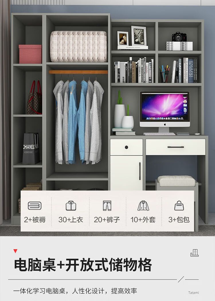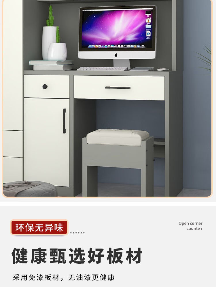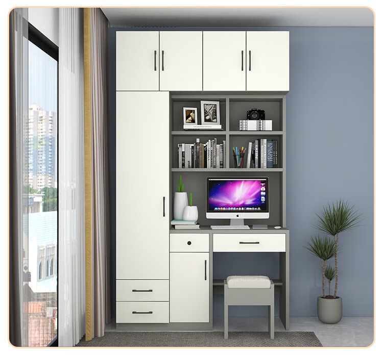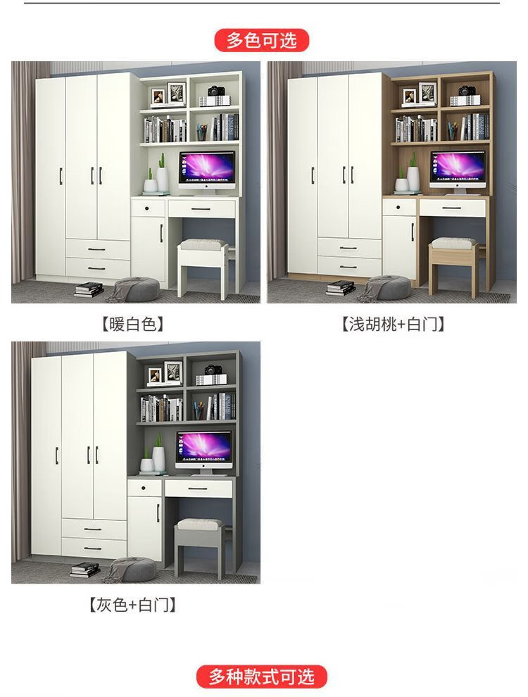倘然之家现代简约书桌带衣柜一体电脑桌组合写字台学生书桌小户型连体书桌 白色升级款(不包安装) 1米2单门和书桌(送凳子)衣柜左