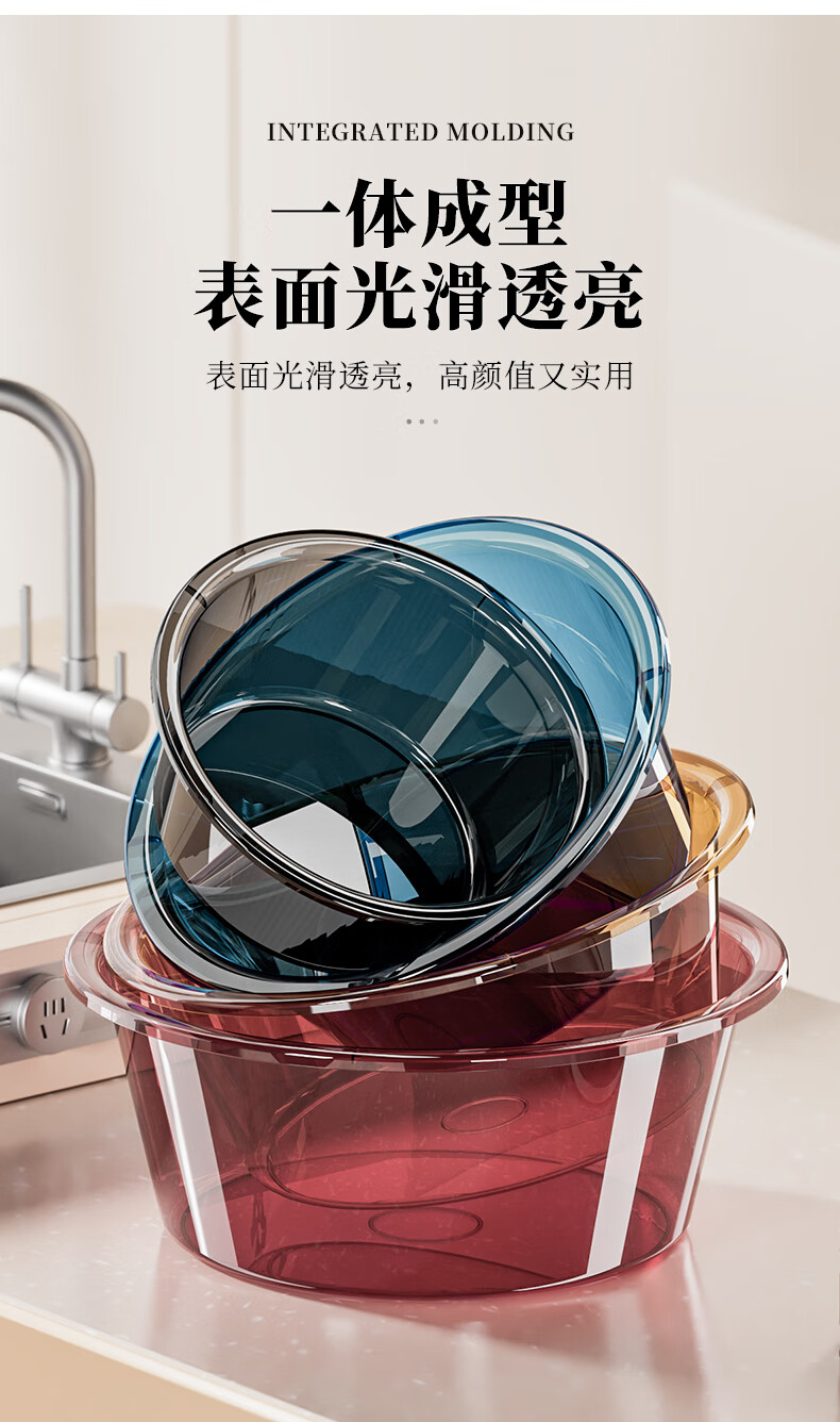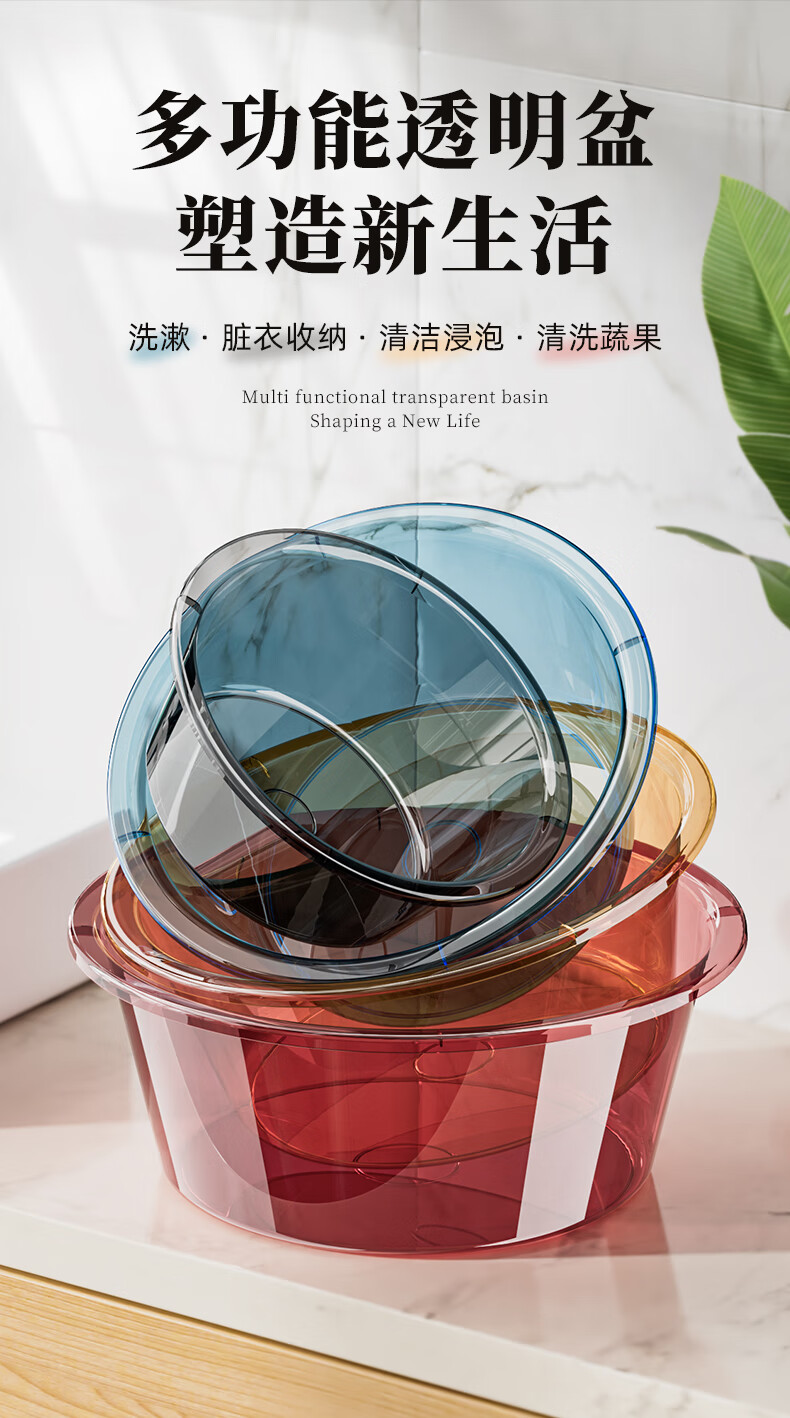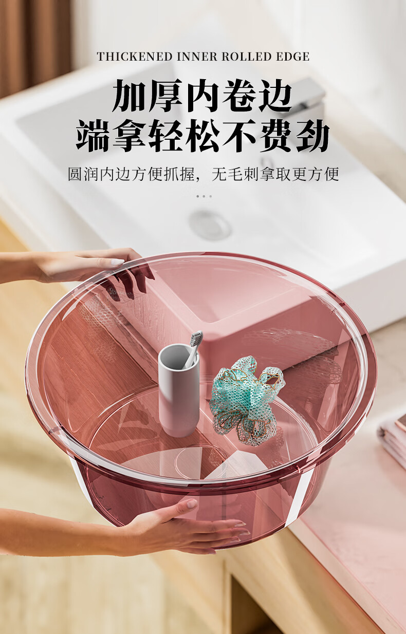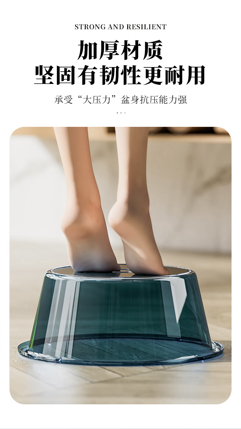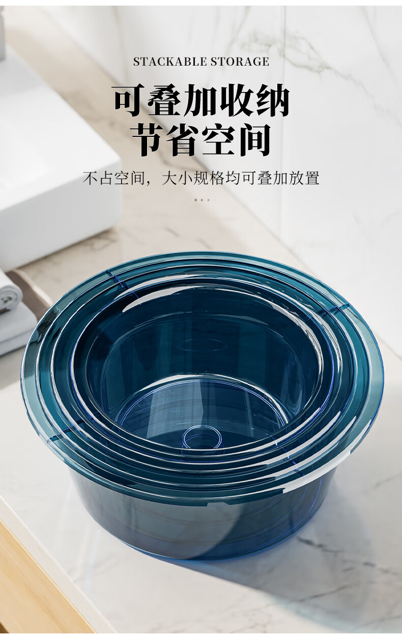 京东物流 加厚洗脸盆特大号家用洗衣服盆子学生宿舍洗脚盆婴儿盆 【特大号1个装】透明蓝
