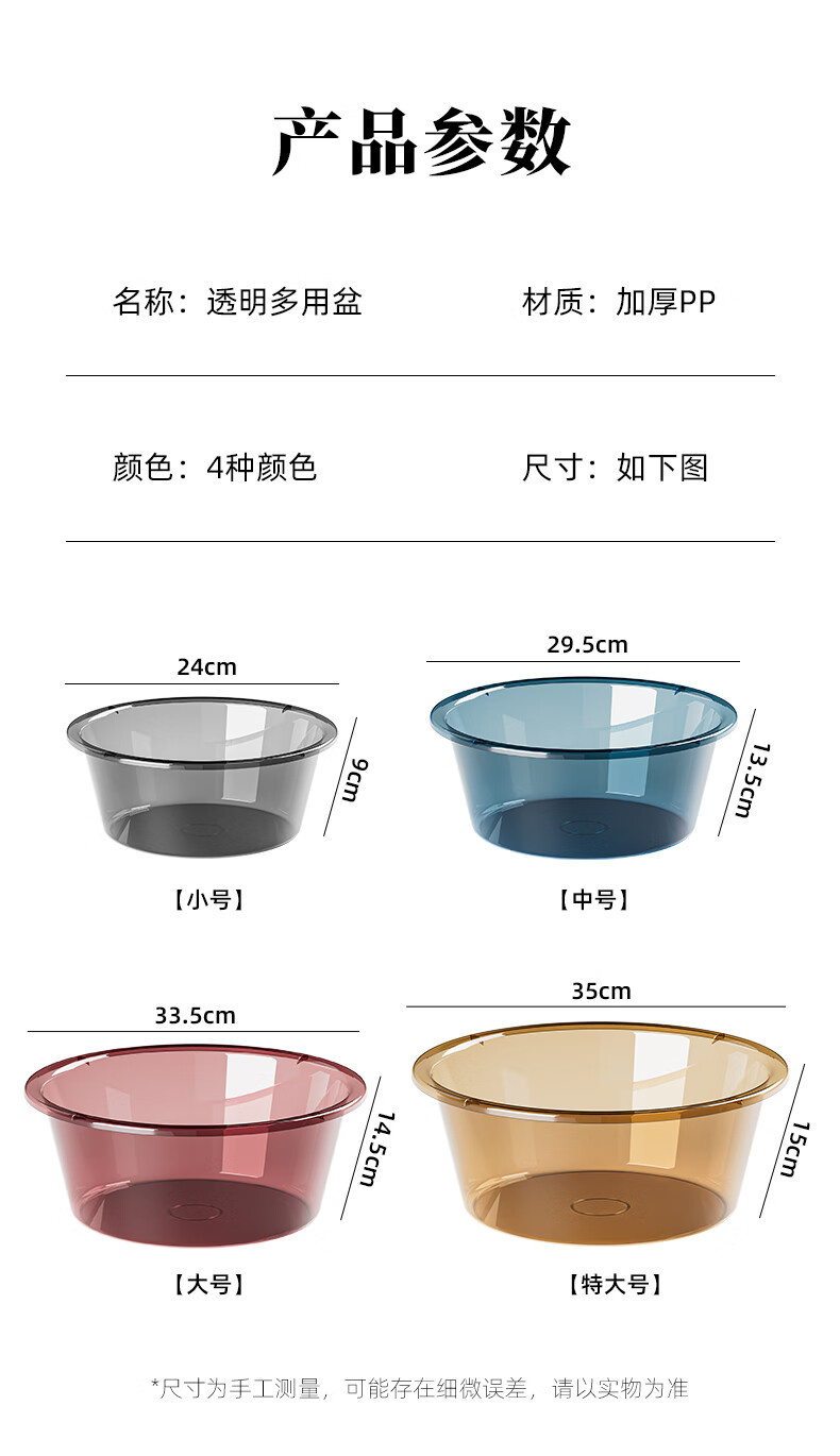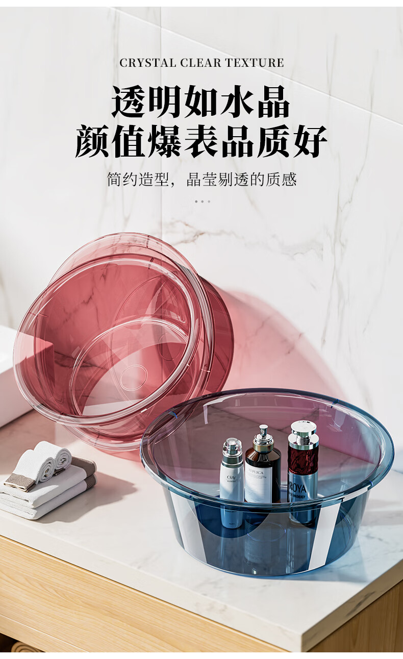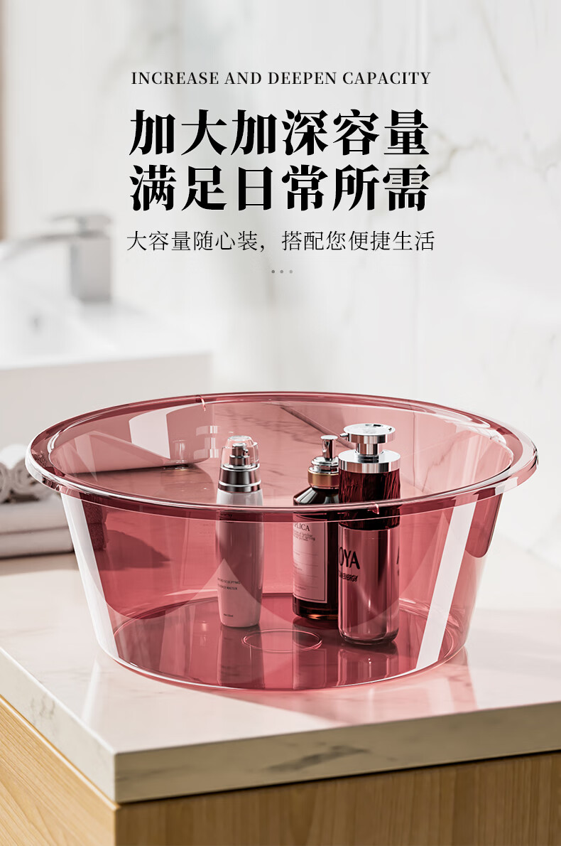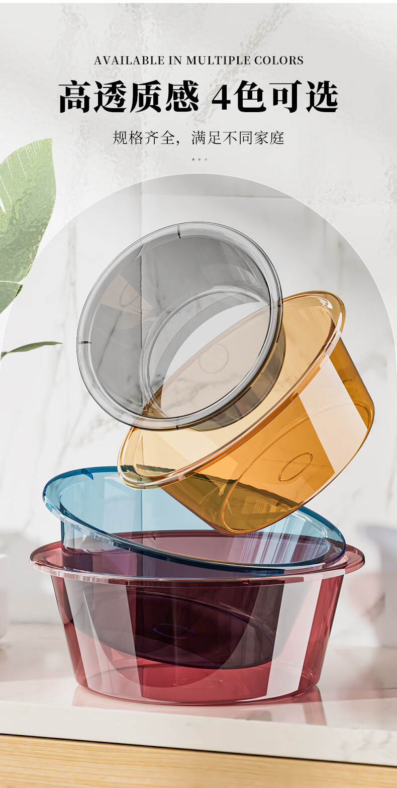 京东物流 加厚洗脸盆特大号家用洗衣服盆子学生宿舍洗脚盆婴儿盆 【特大号1个装】透明蓝