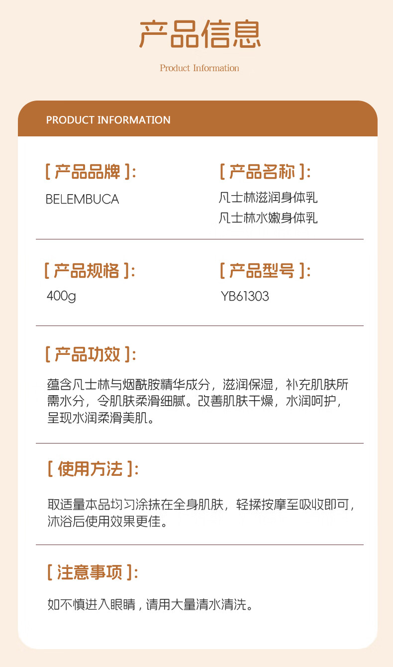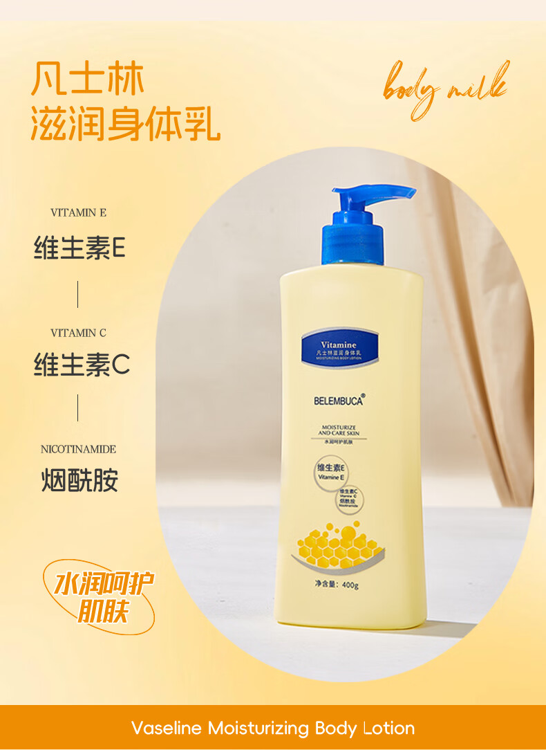 凡士林身体乳液烟酰胺保湿水润持久留香润肤霜大容量补水保湿男女 滋润身体乳【黄色】400g*1瓶