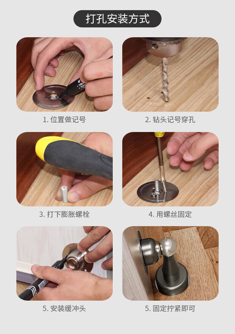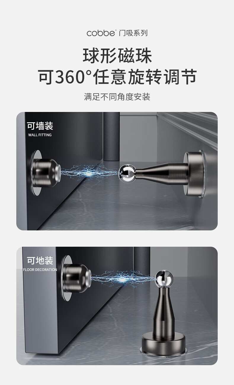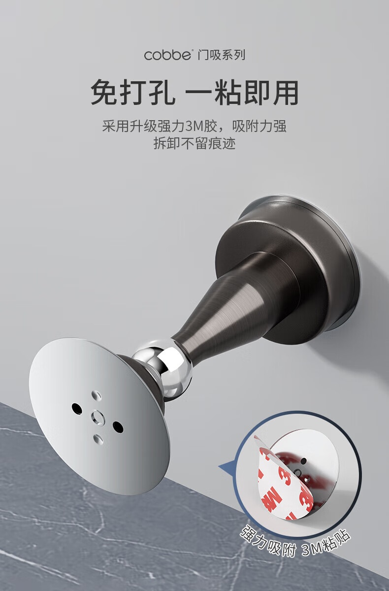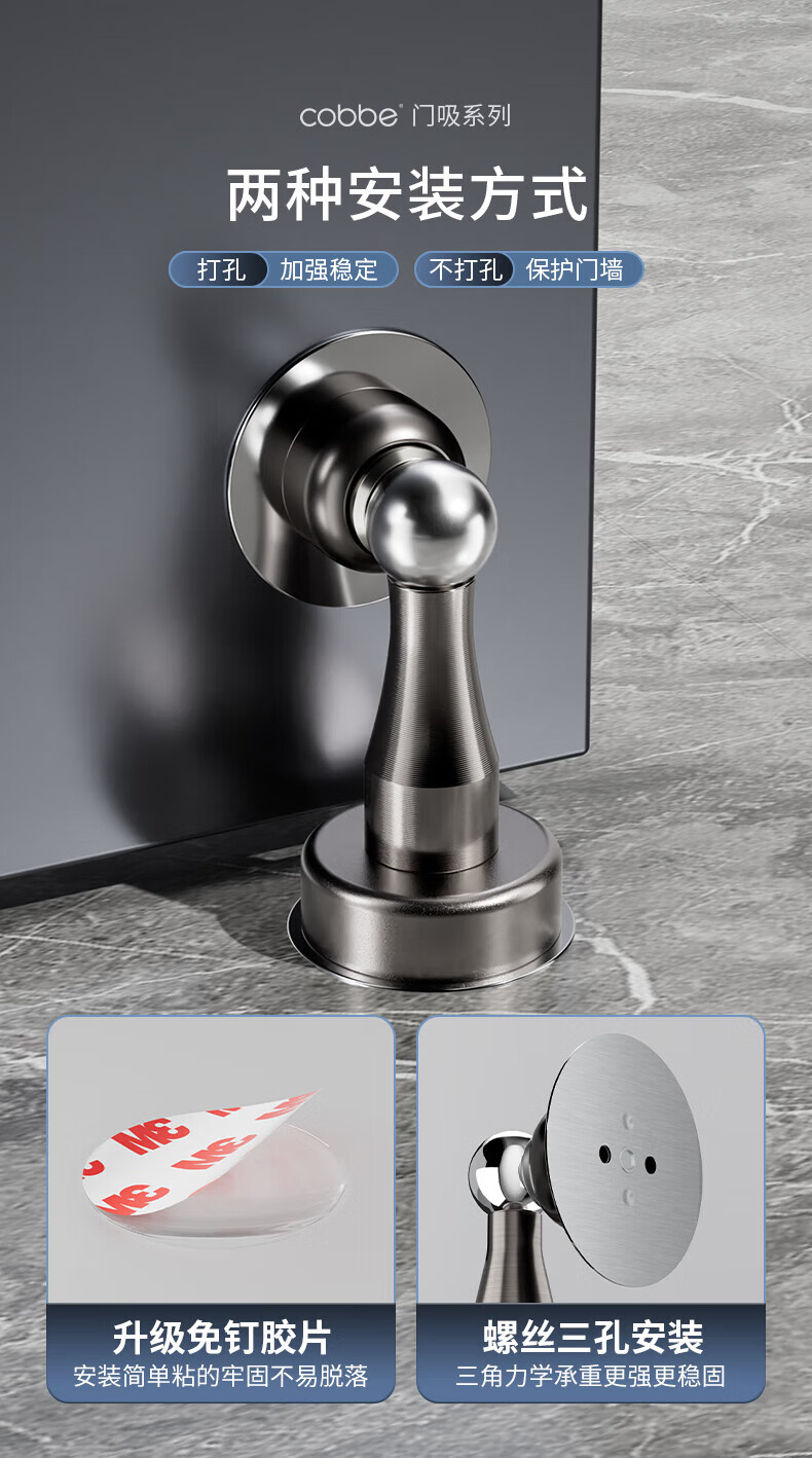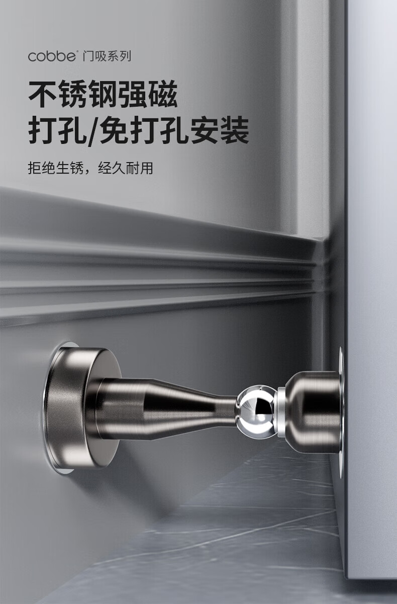 卡贝门吸免打孔防撞门挡器强力磁铁门碰不锈钢门限位器卫生间墙吸银色
