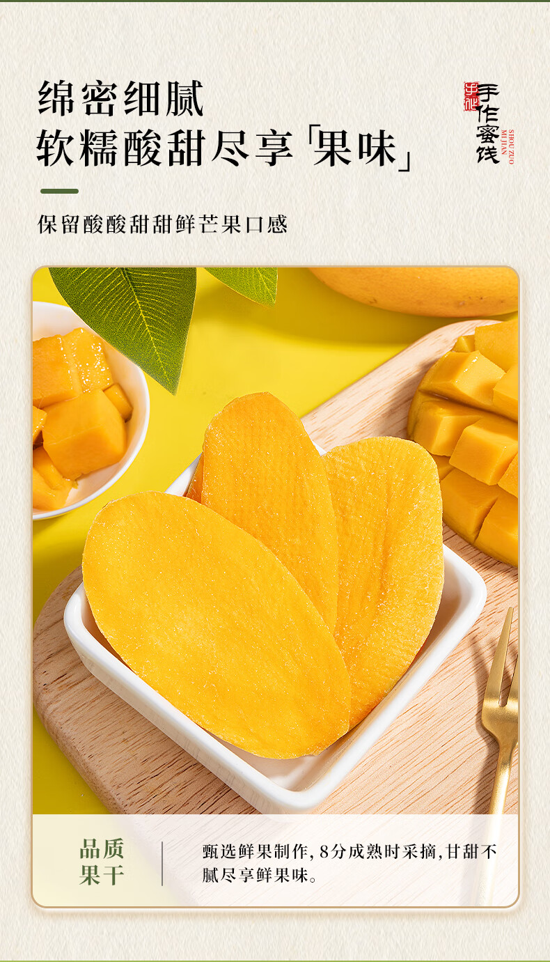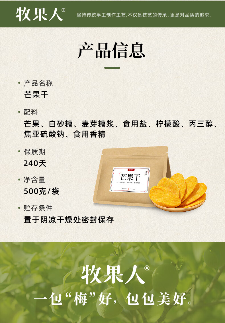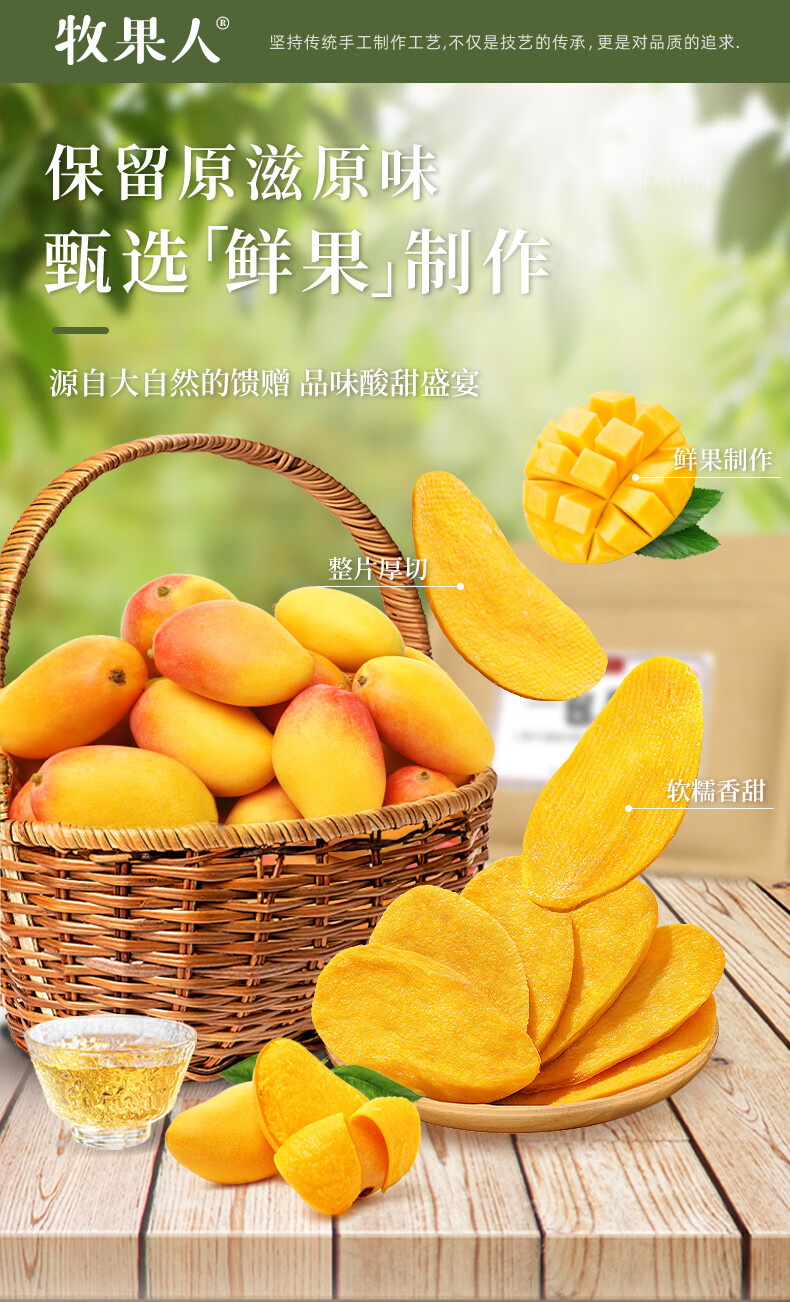牧果人芒果干500g/袋 休闲零食水果干蜜饯果脯办公室小吃量贩装 芒果干500g
