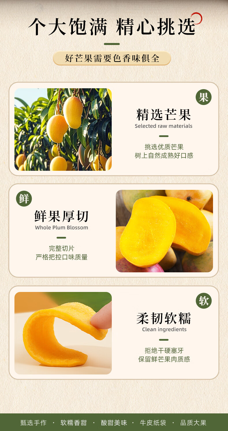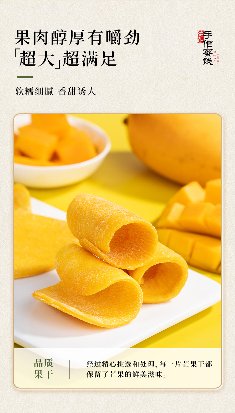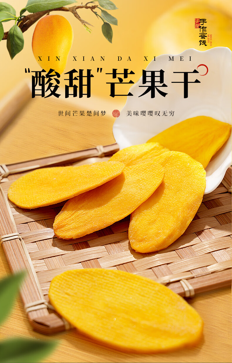 牧果人芒果干500g/袋 休闲零食水果干蜜饯果脯办公室小吃量贩装 芒果干500g