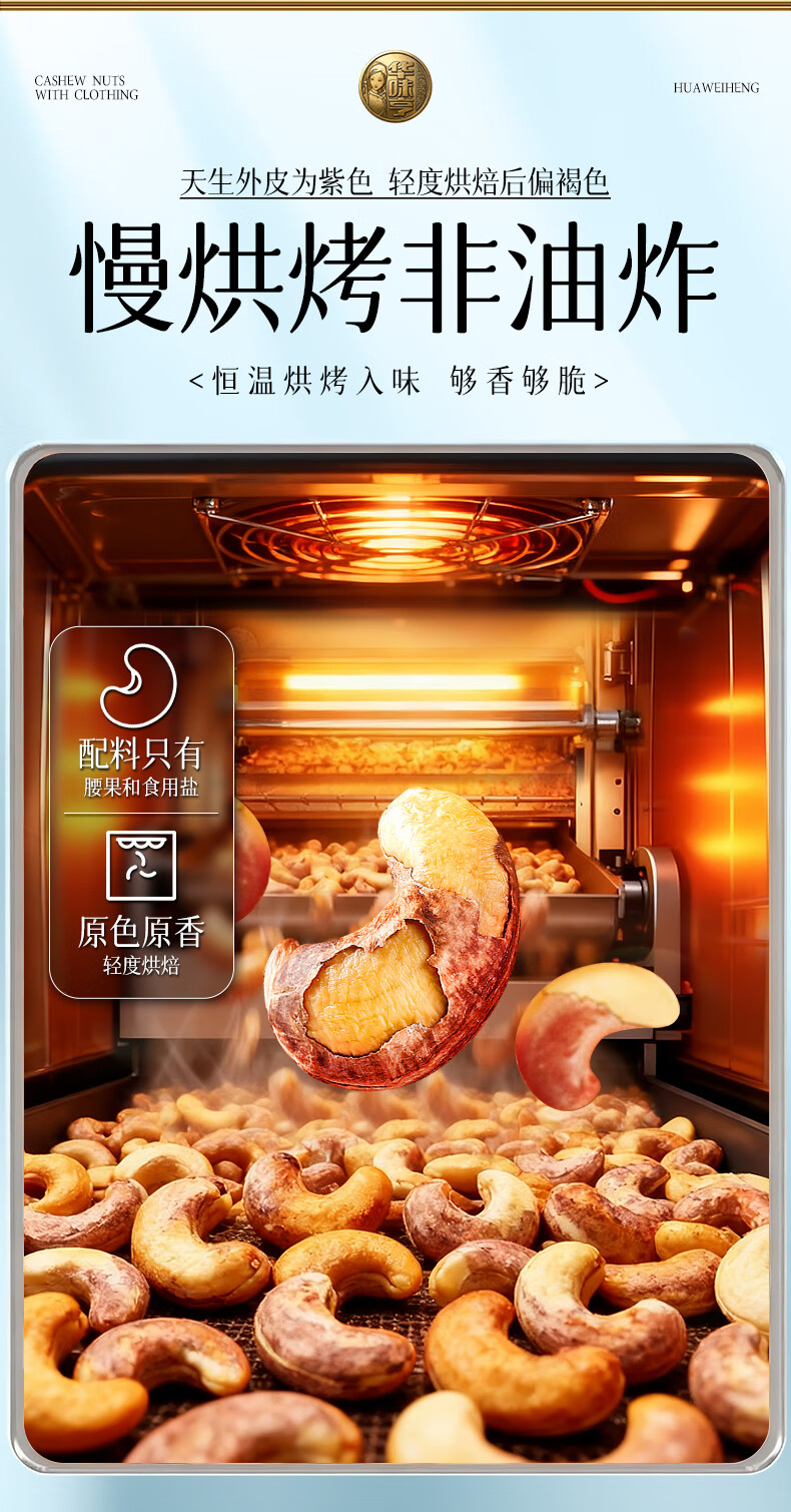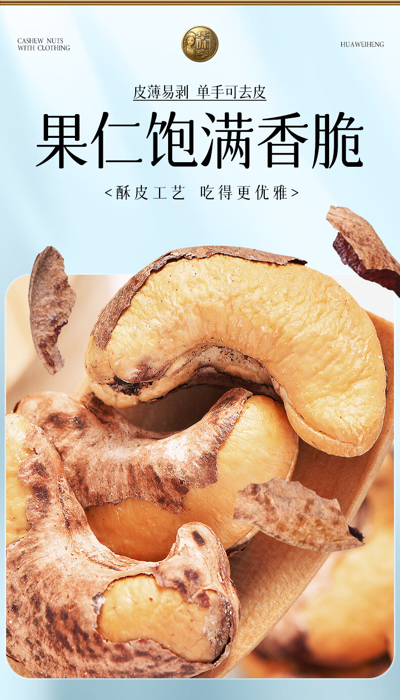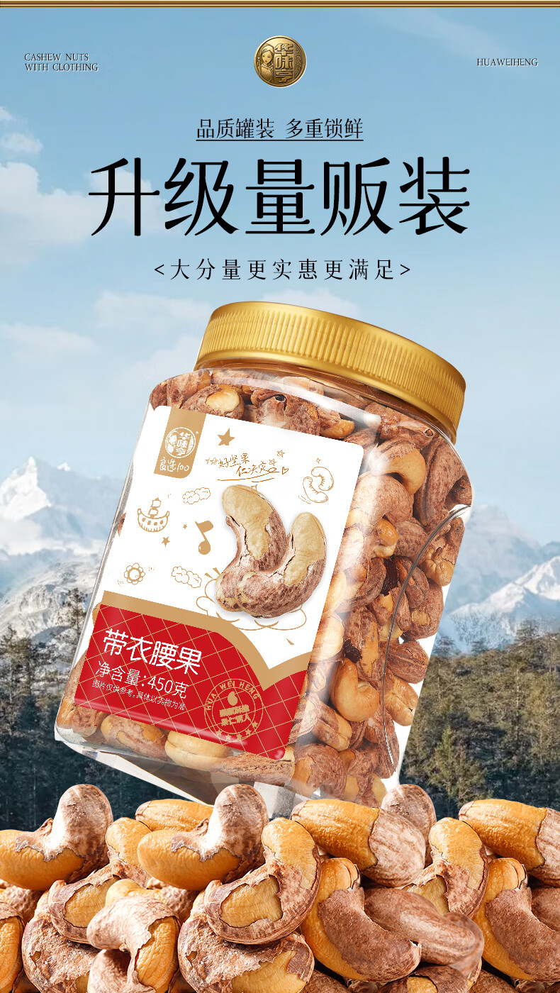 华味亨 450g带衣腰果 大罐量贩送礼大颗粒坚果办公室休闲零食小吃 450g带衣腰果*1罐