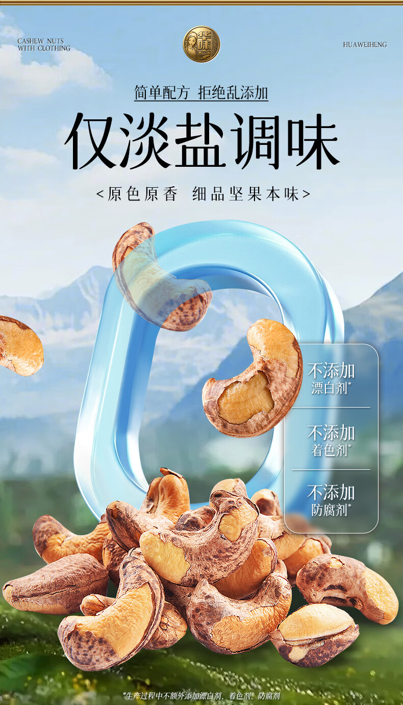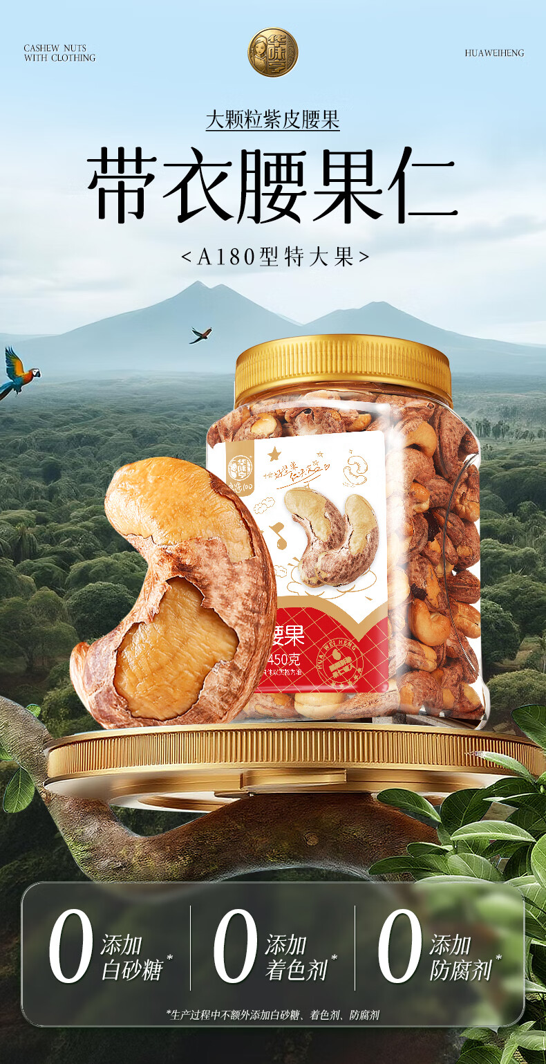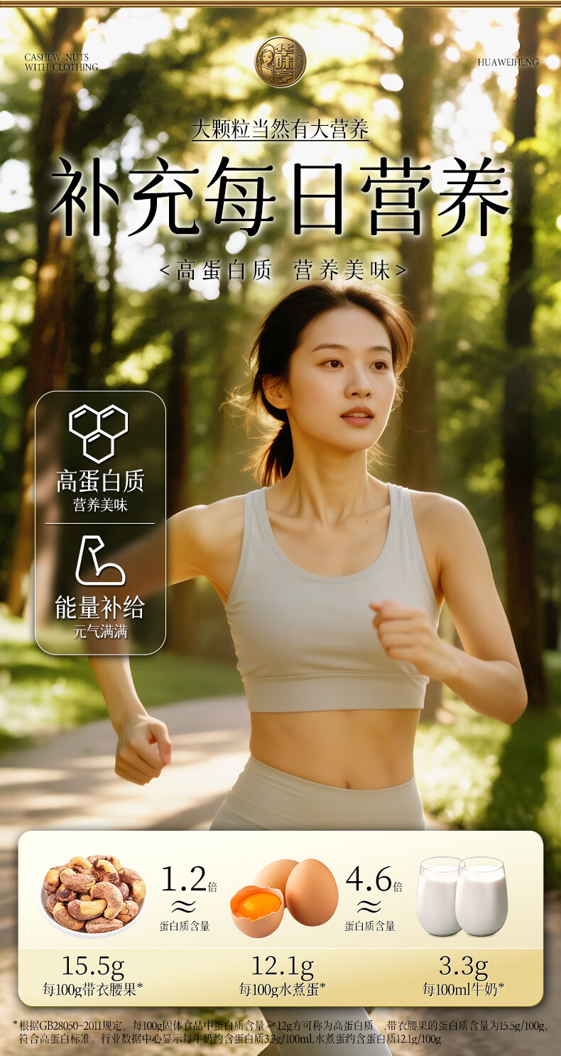 华味亨 450g带衣腰果 大罐量贩送礼大颗粒坚果办公室休闲零食小吃 450g带衣腰果*1罐