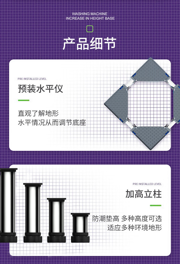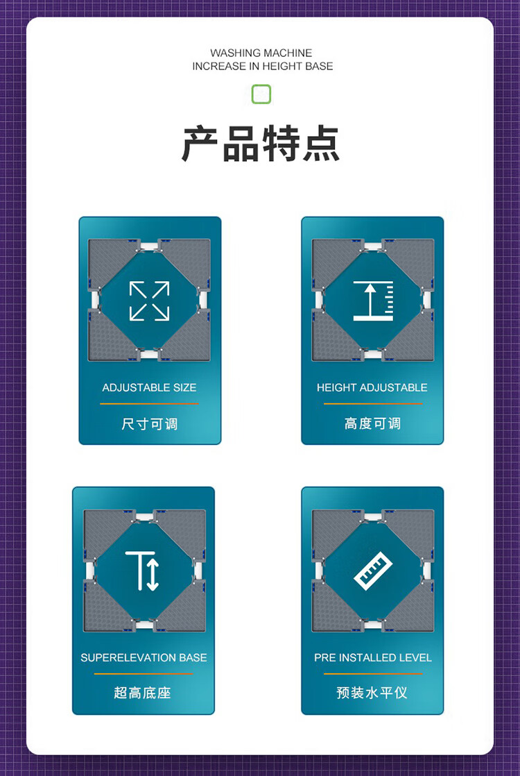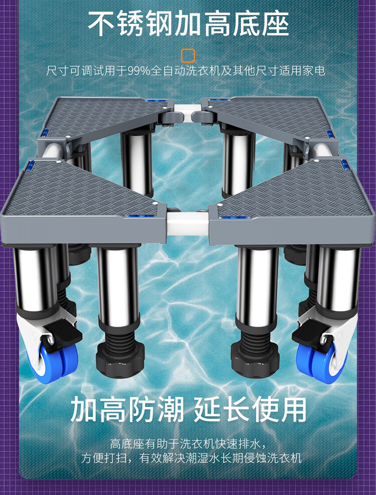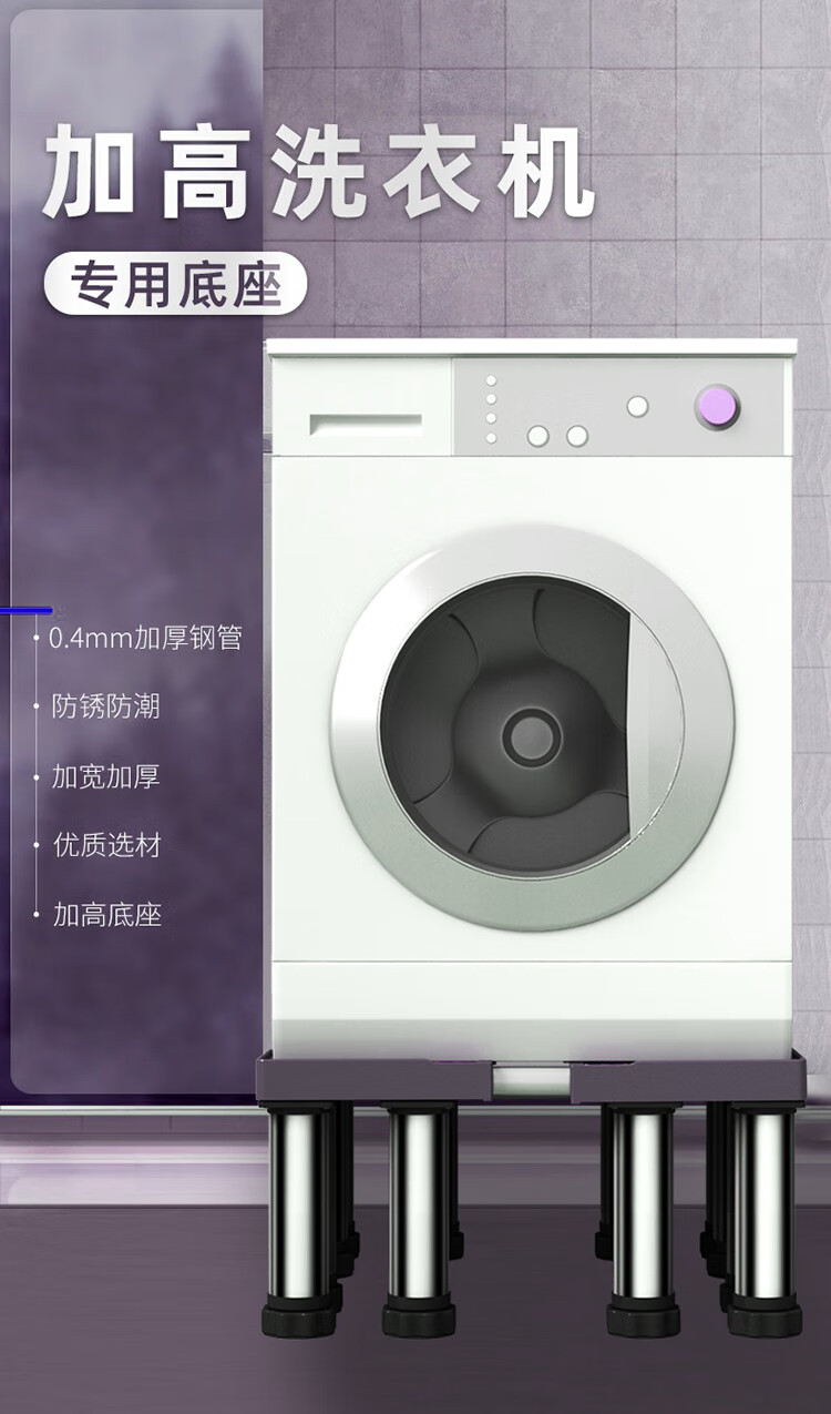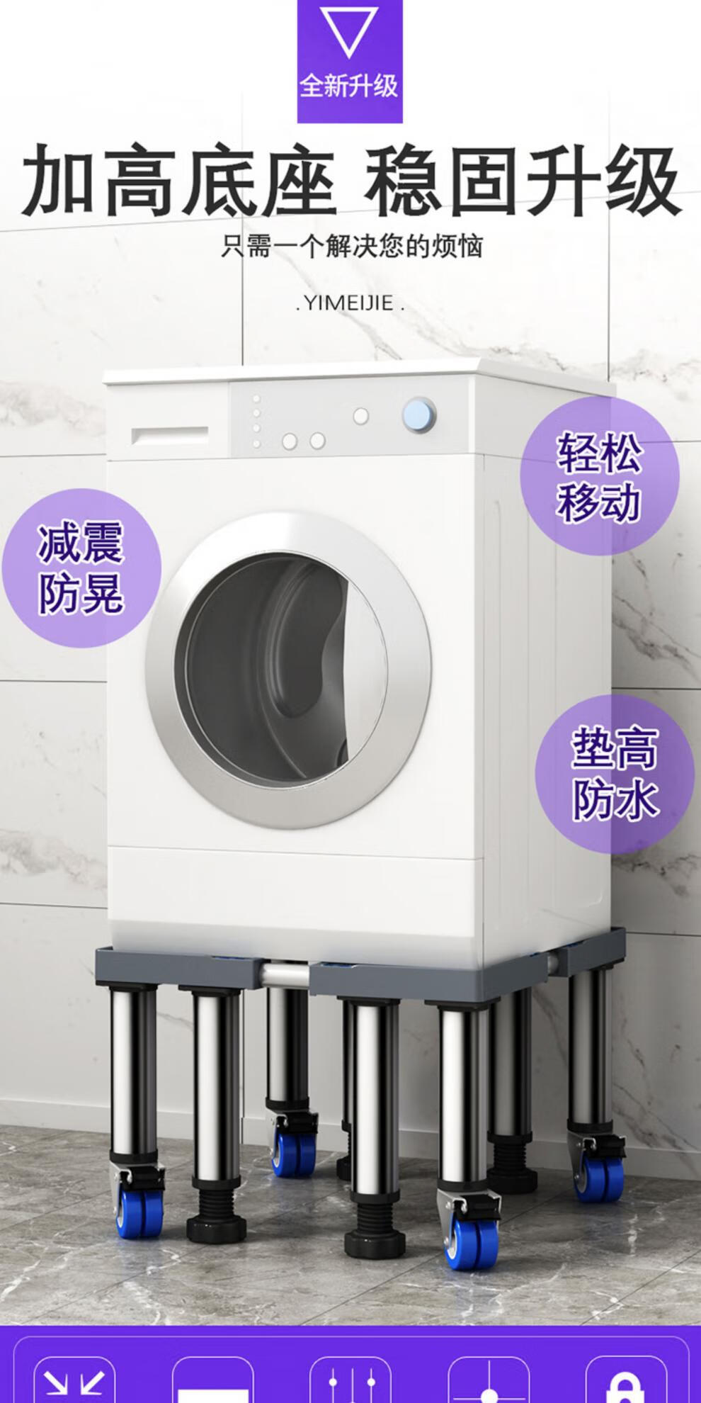 MPPMCK洗衣机脚垫增高防震加高洗衣机底座架通用增高支架垫高波轮滚 12不锈钢腿【总高24-27cm】 稳固加高 1层 3x1cm