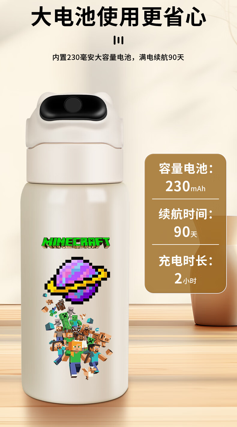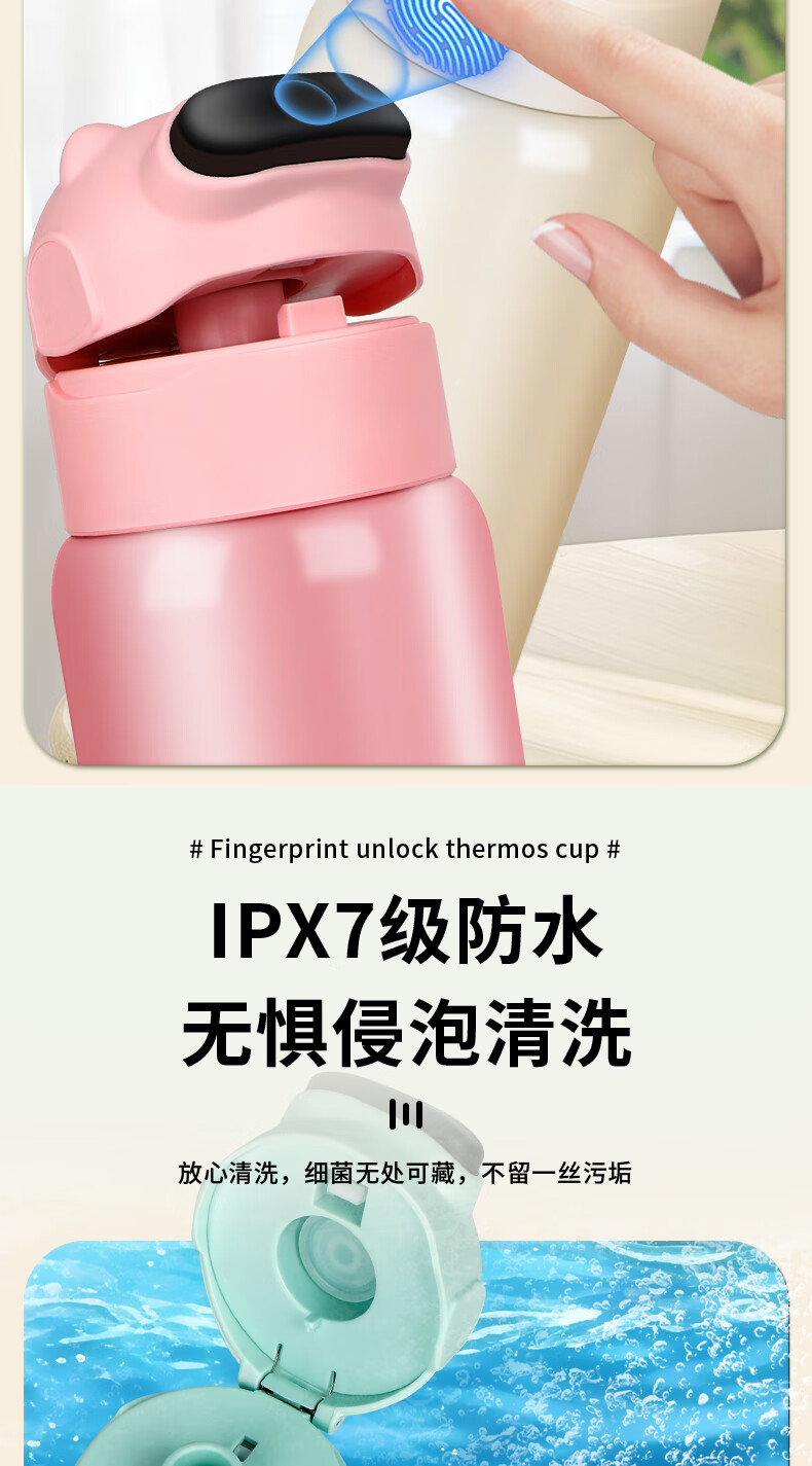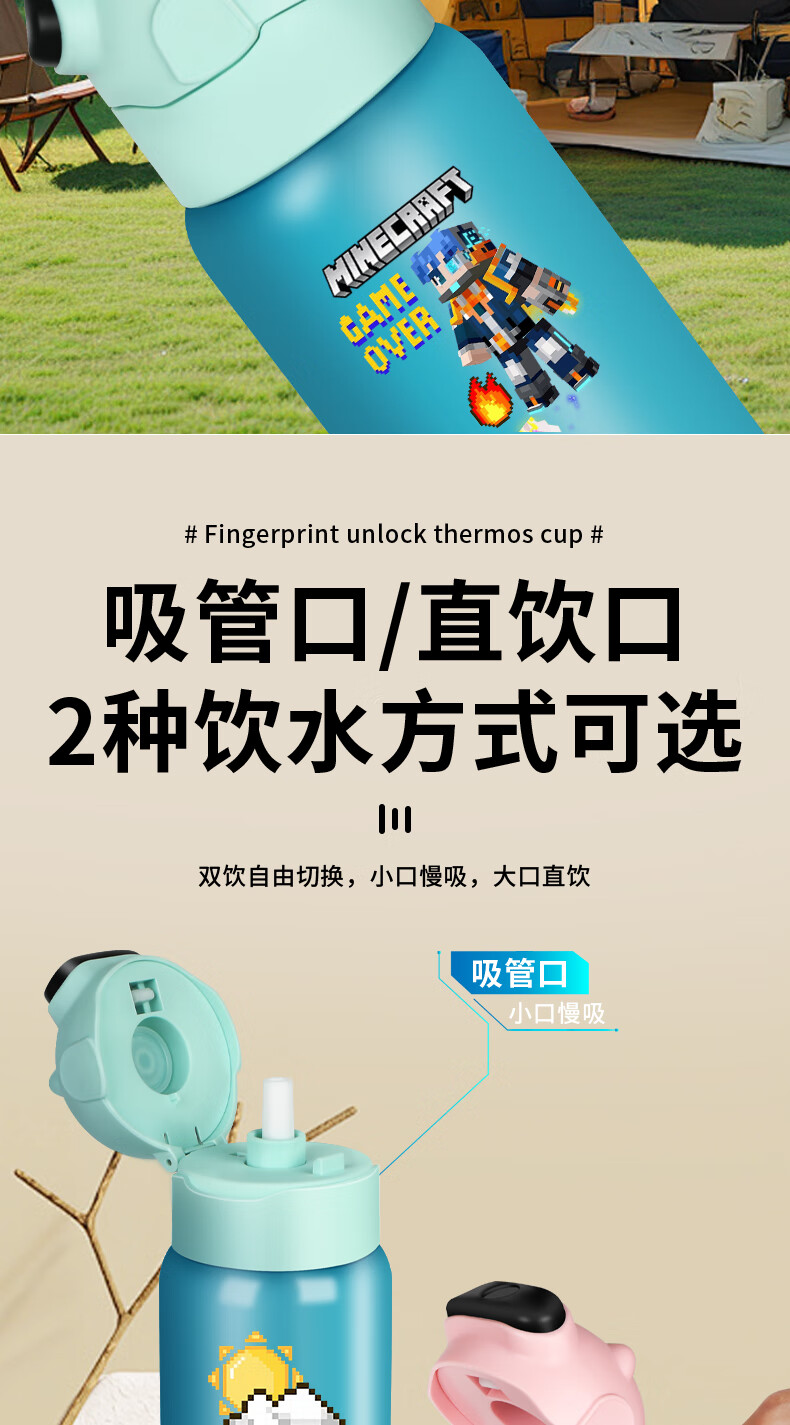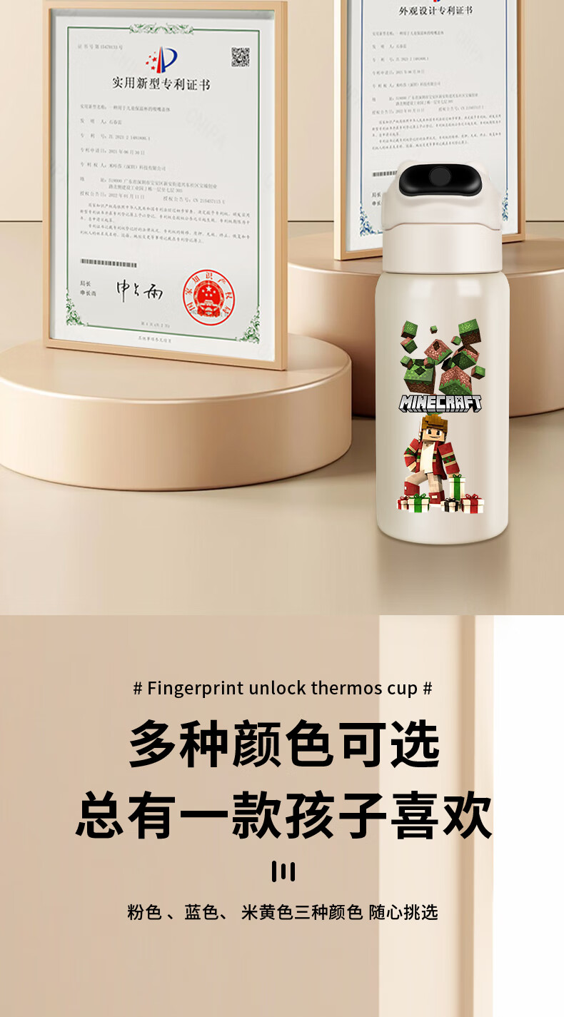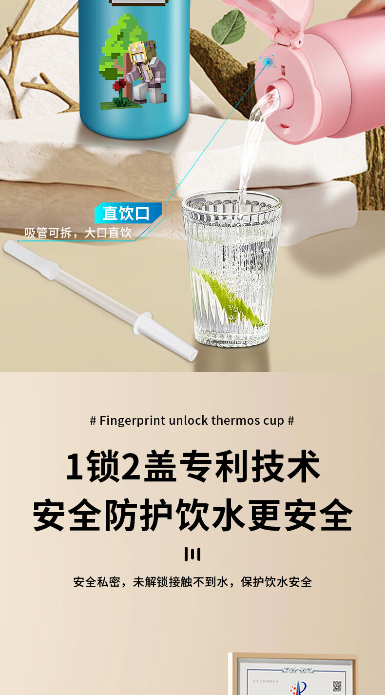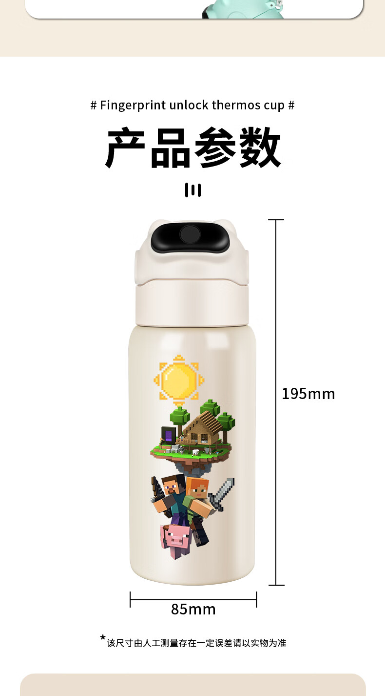 手游我的世界智能指纹解锁保温杯私密性高自带挂绳充电线防恶作剧 04粉色指纹解锁保温杯 蓝牙款Z911我的世界