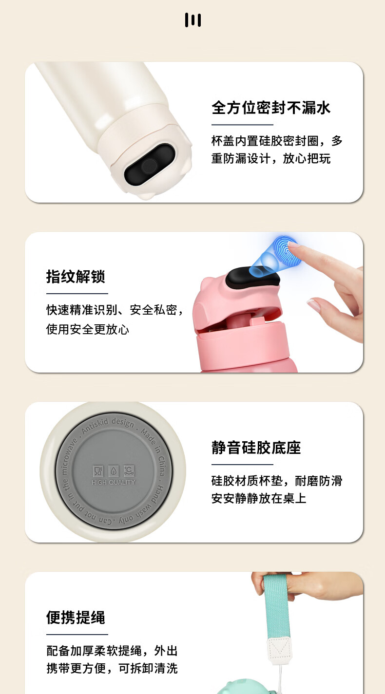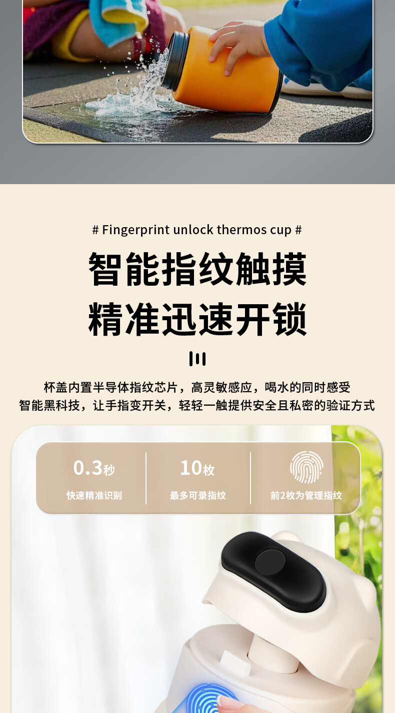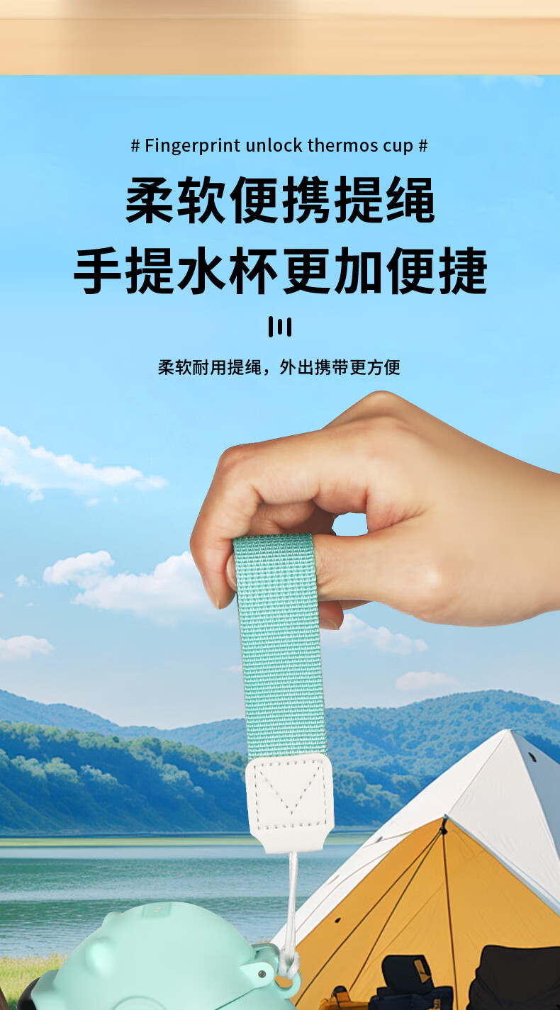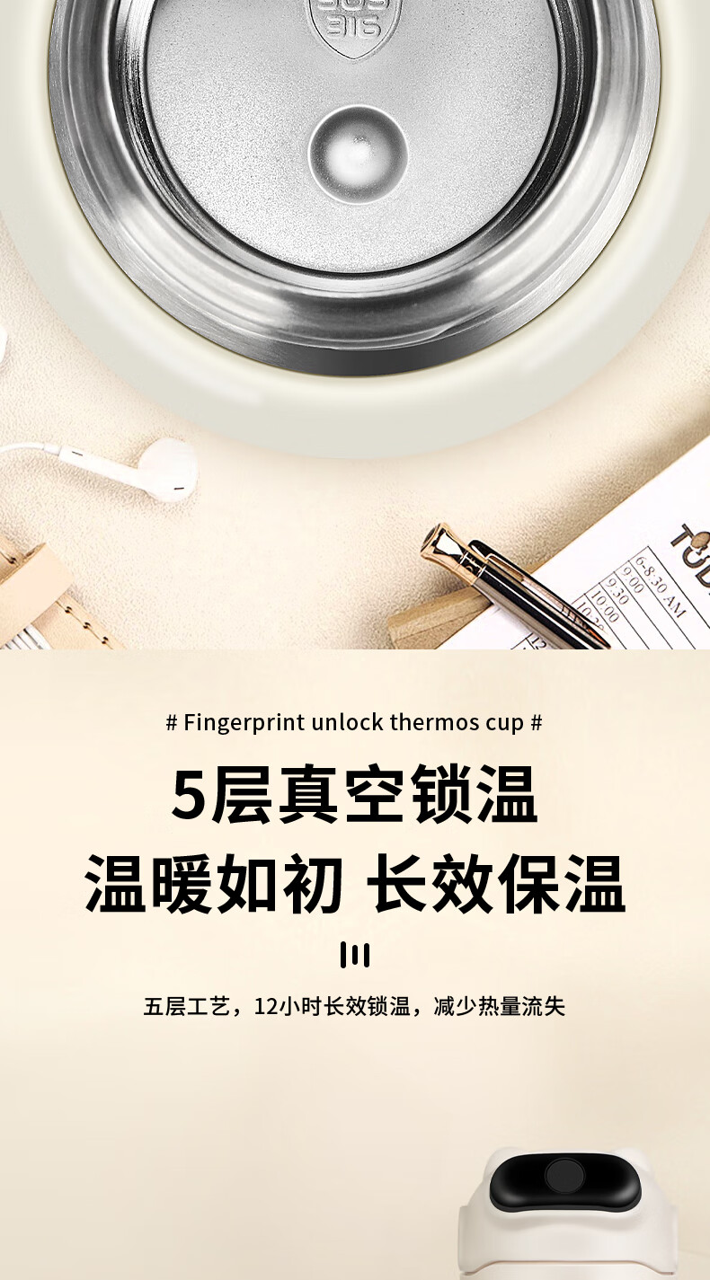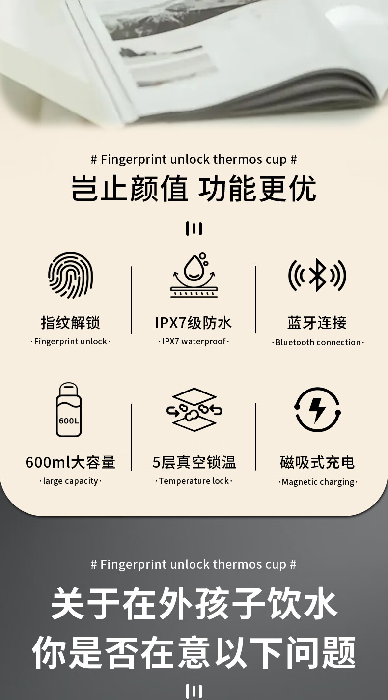 手游我的世界智能指纹解锁保温杯私密性高自带挂绳充电线防恶作剧 04粉色指纹解锁保温杯 蓝牙款Z911我的世界