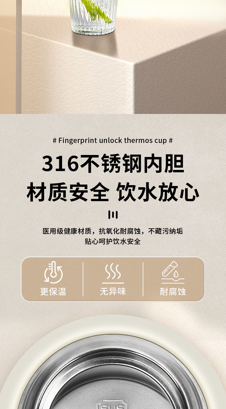 苏泊尔(SUPOR)72小时长效保温杯全钢316不锈钢智能大容量便携户外运动水壶 本色-普通款 600ml