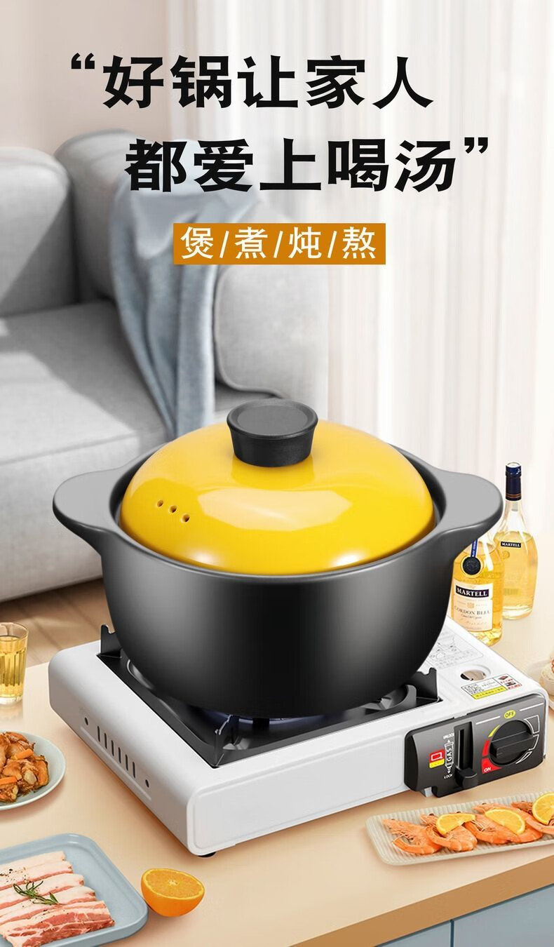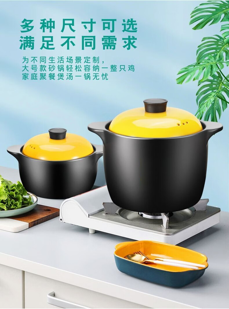 花沐禧家用砂锅炖锅大容量煲汤锅陶土沙锅韩式锅耐高温土锅明火汤煲石锅 【4.0L】3-5人 1ml