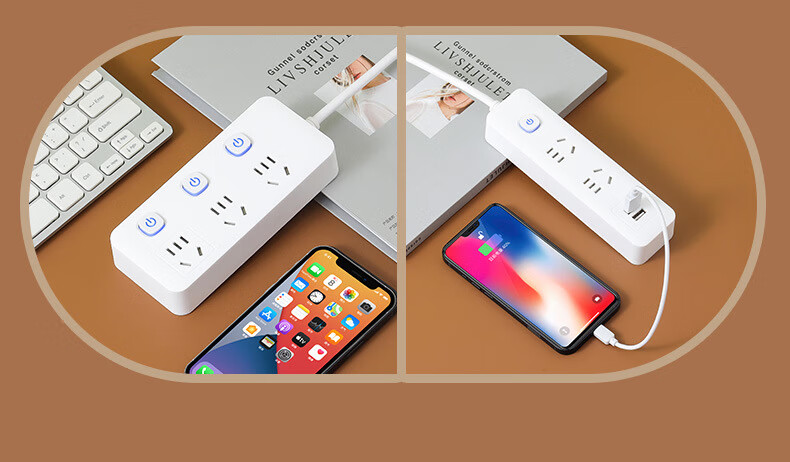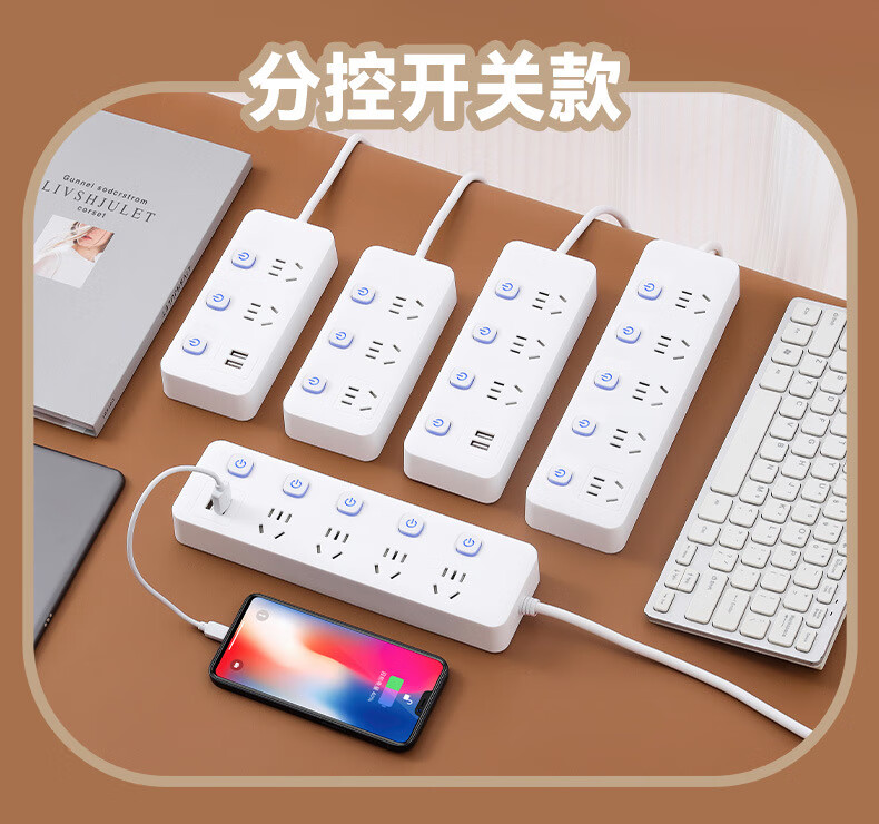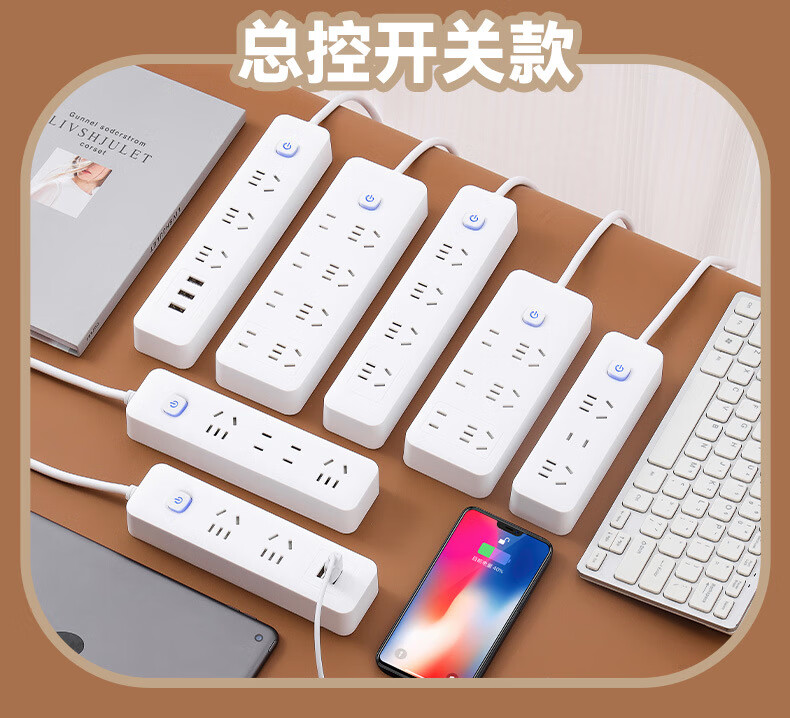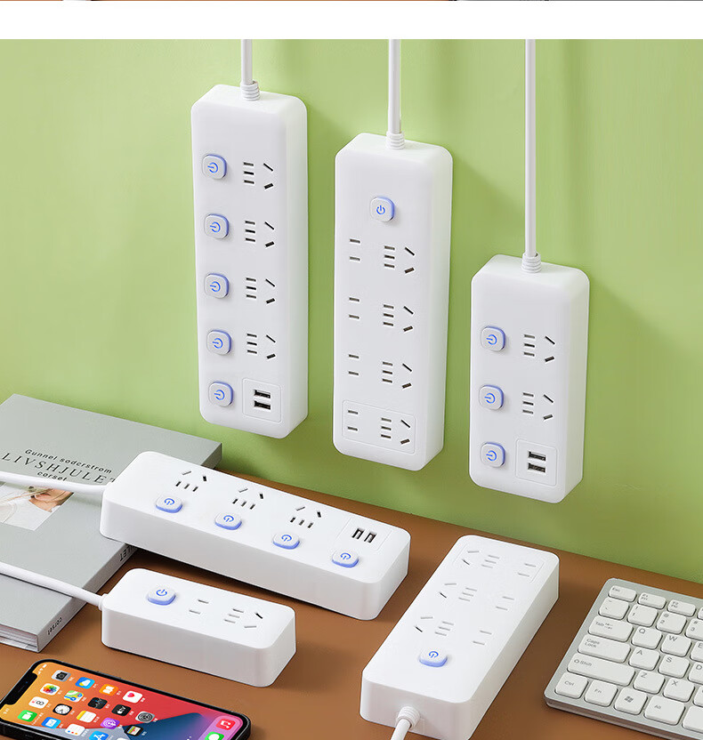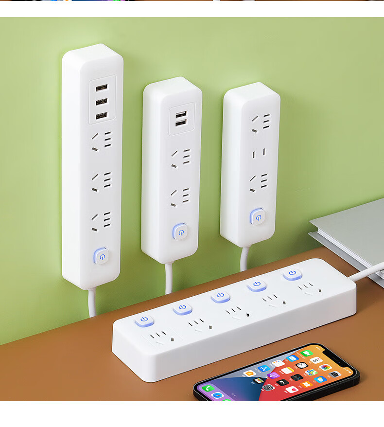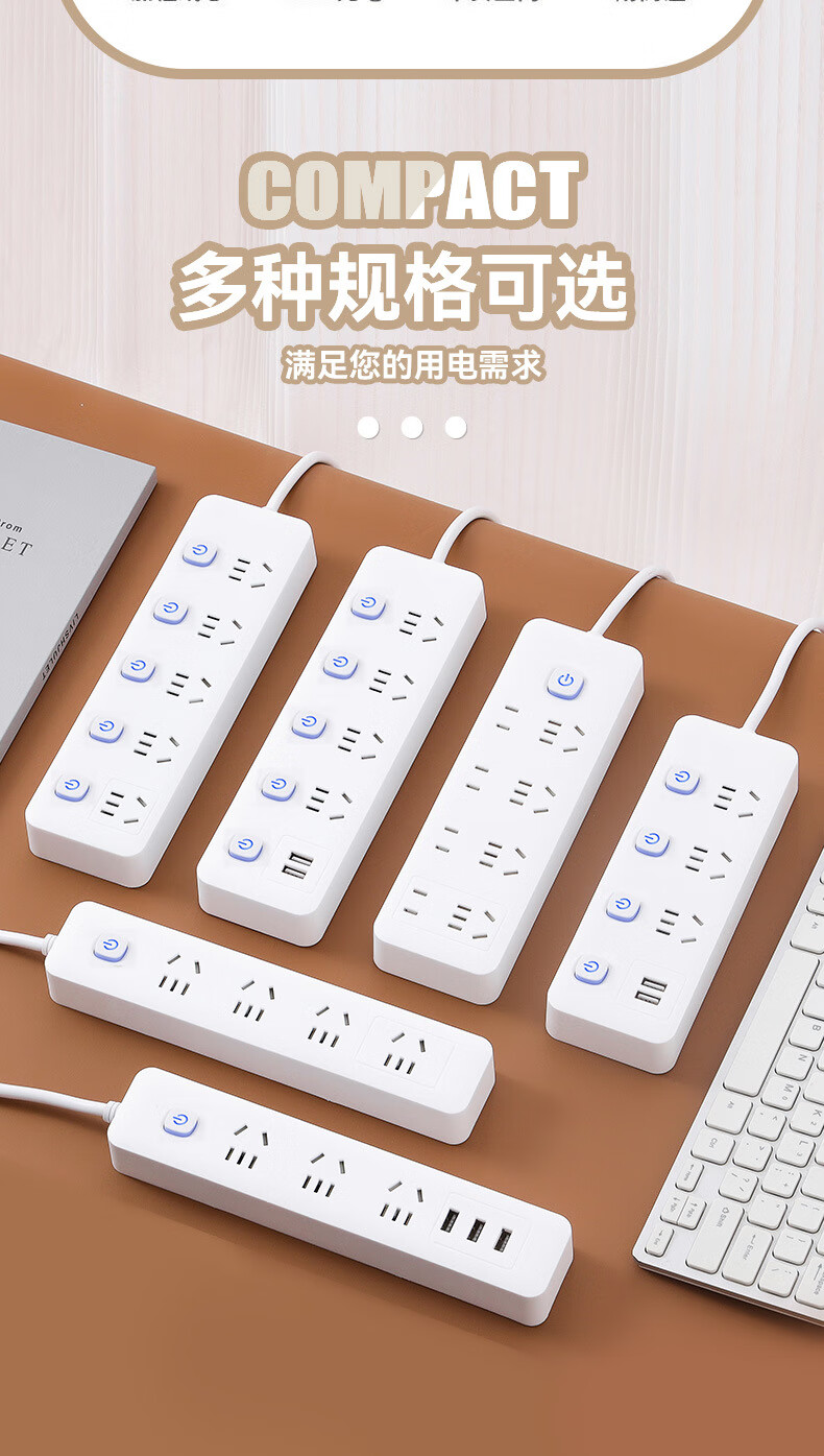 【精选】多功能usb插座面板多孔带线家用插排插板接线板插线板转 小白7孔【0.8米】