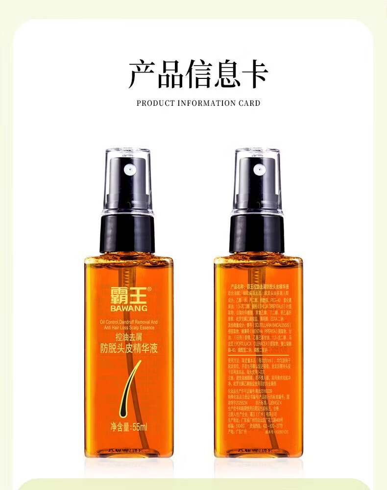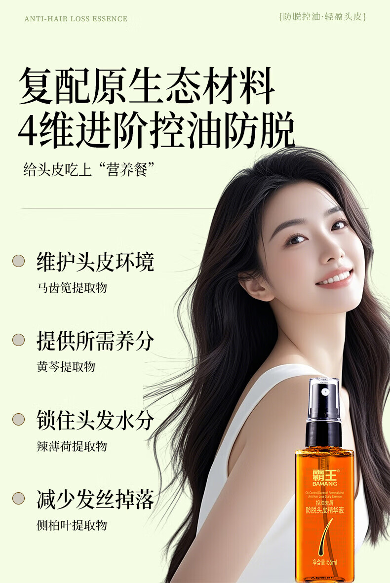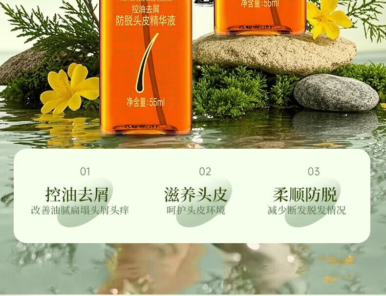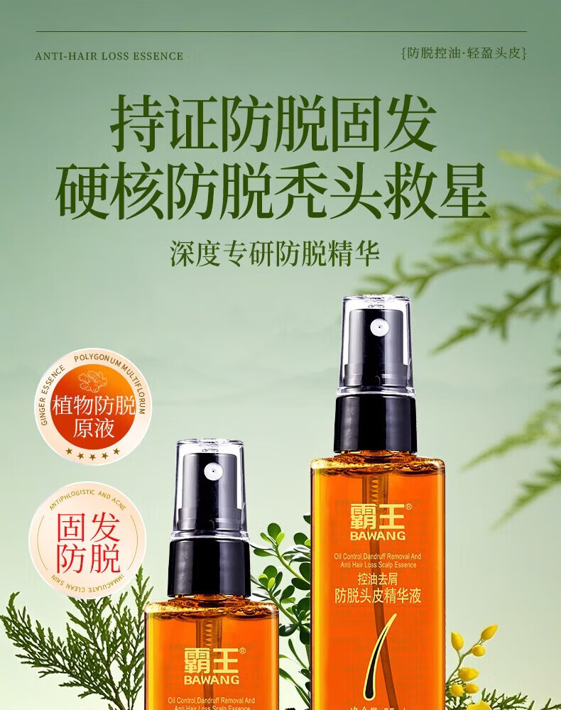 霸王防脱精华液控油去屑强根固发侧柏叶头皮营养液男女士适用 防脱洗护套装380ml+55ml