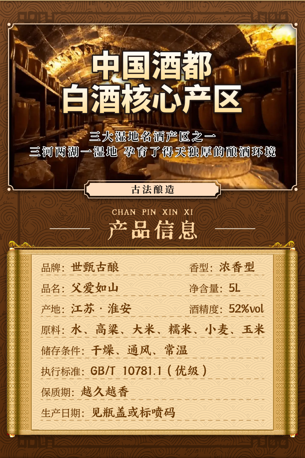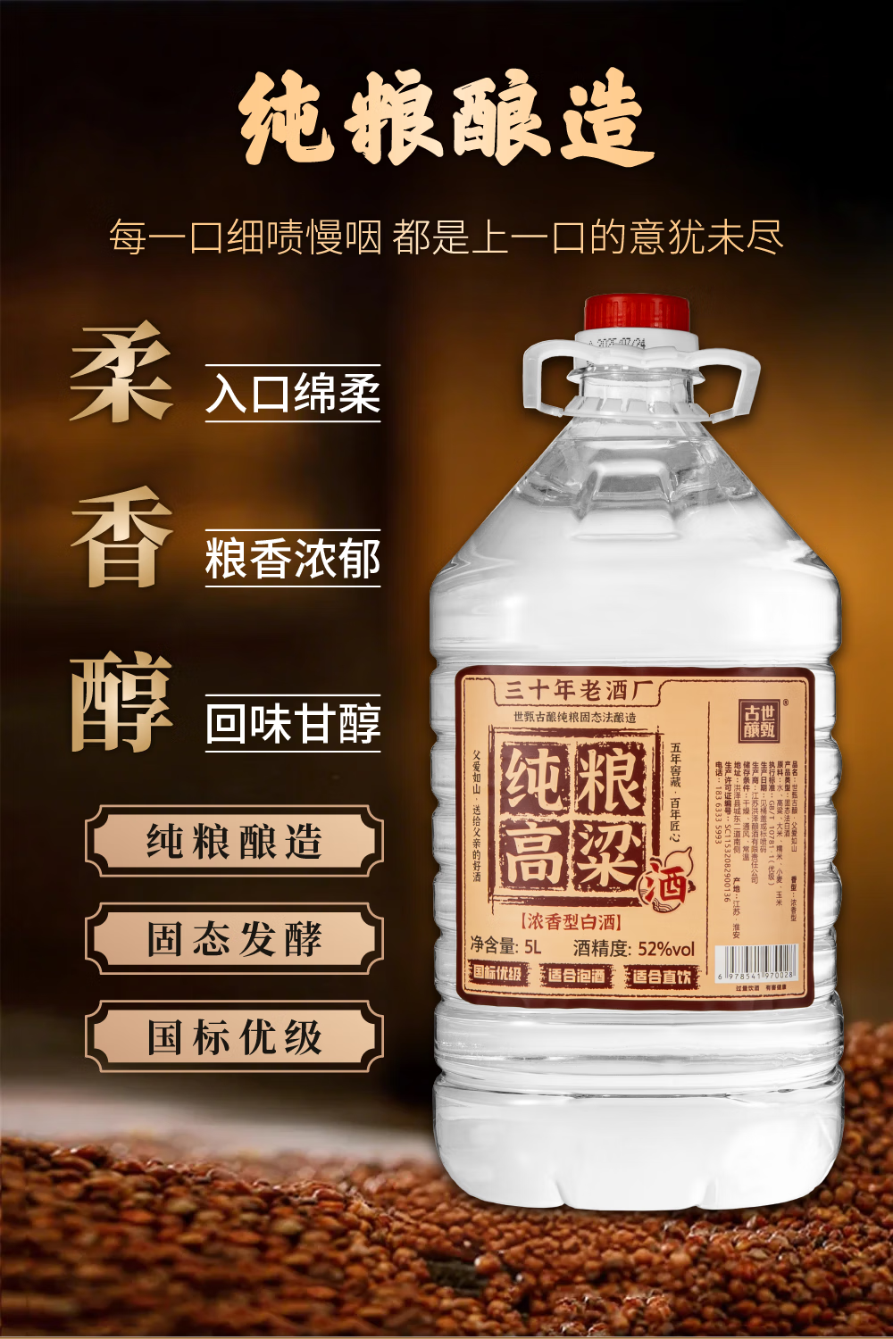世甄古酿【纯粮食酒 泡酒】52度桶装白酒十斤浓香 高粱酒散酒自饮泡酒皆可 52度 500mL 6瓶 汤沟老字号一箱