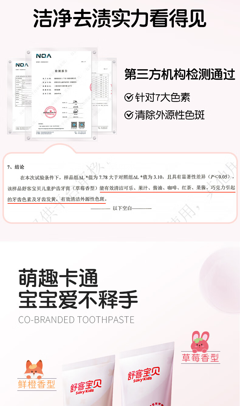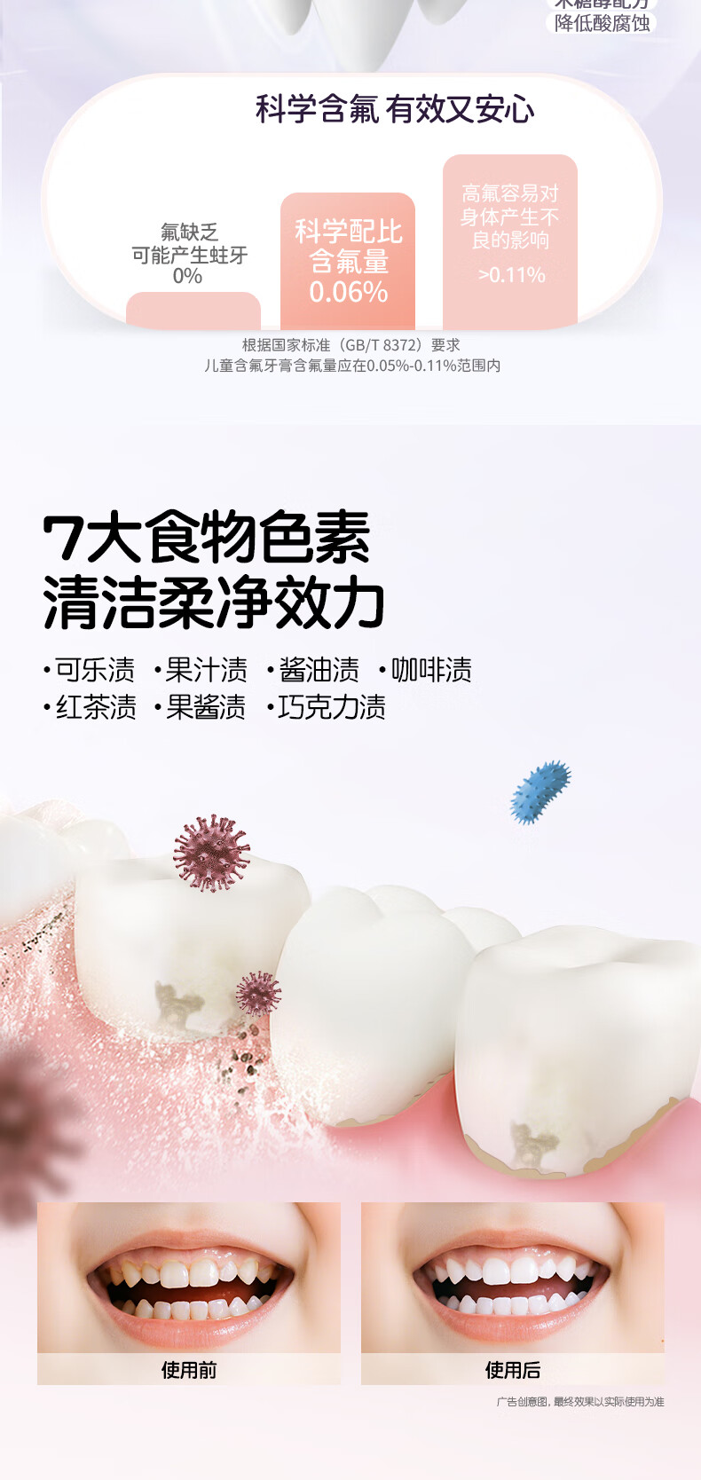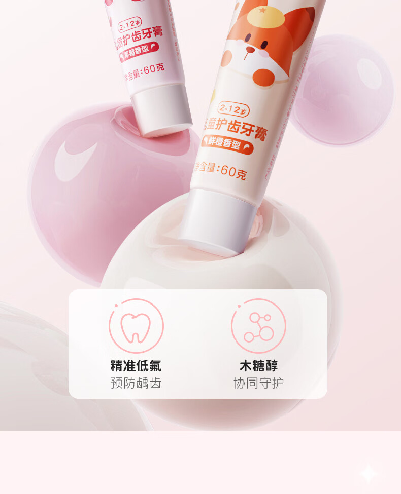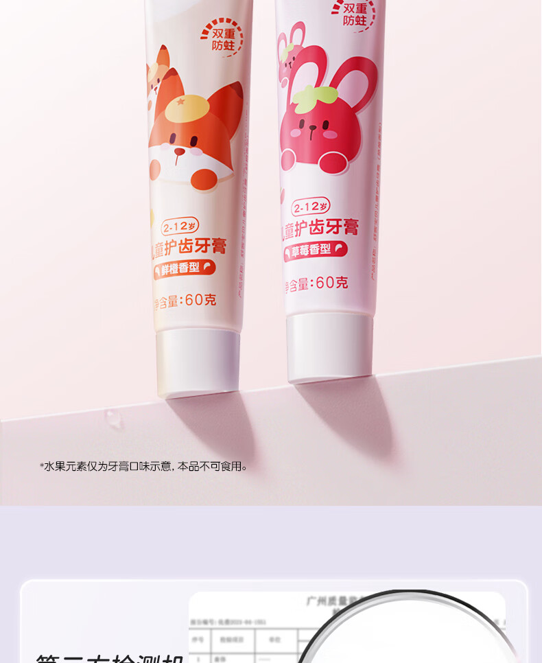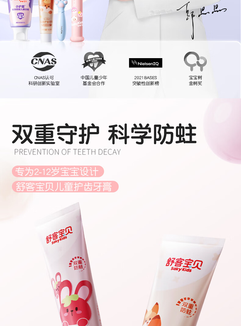 舒客儿童护齿牙膏2-3-6-12岁宝宝含氟防蛀 【鲜橙2+草莓2】共240g
