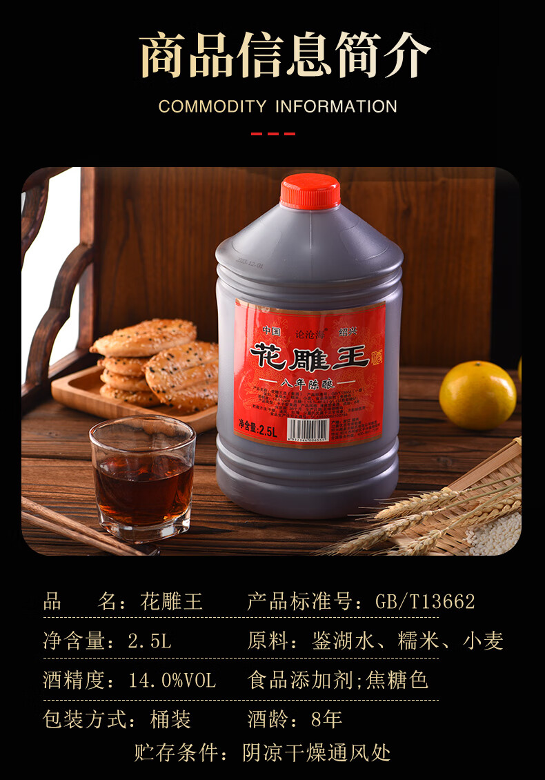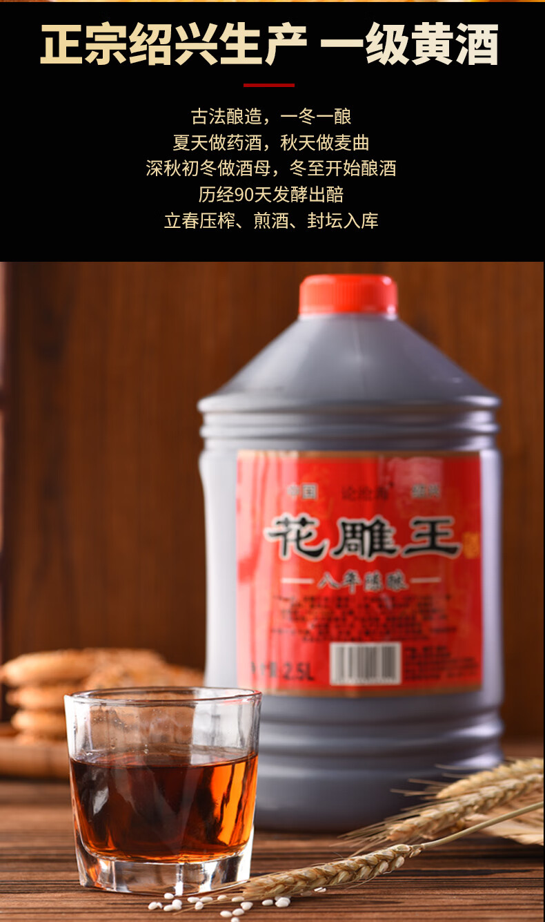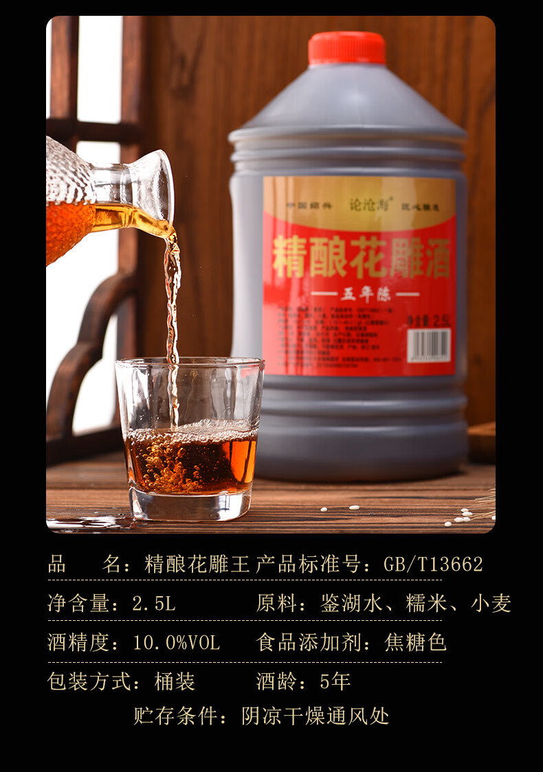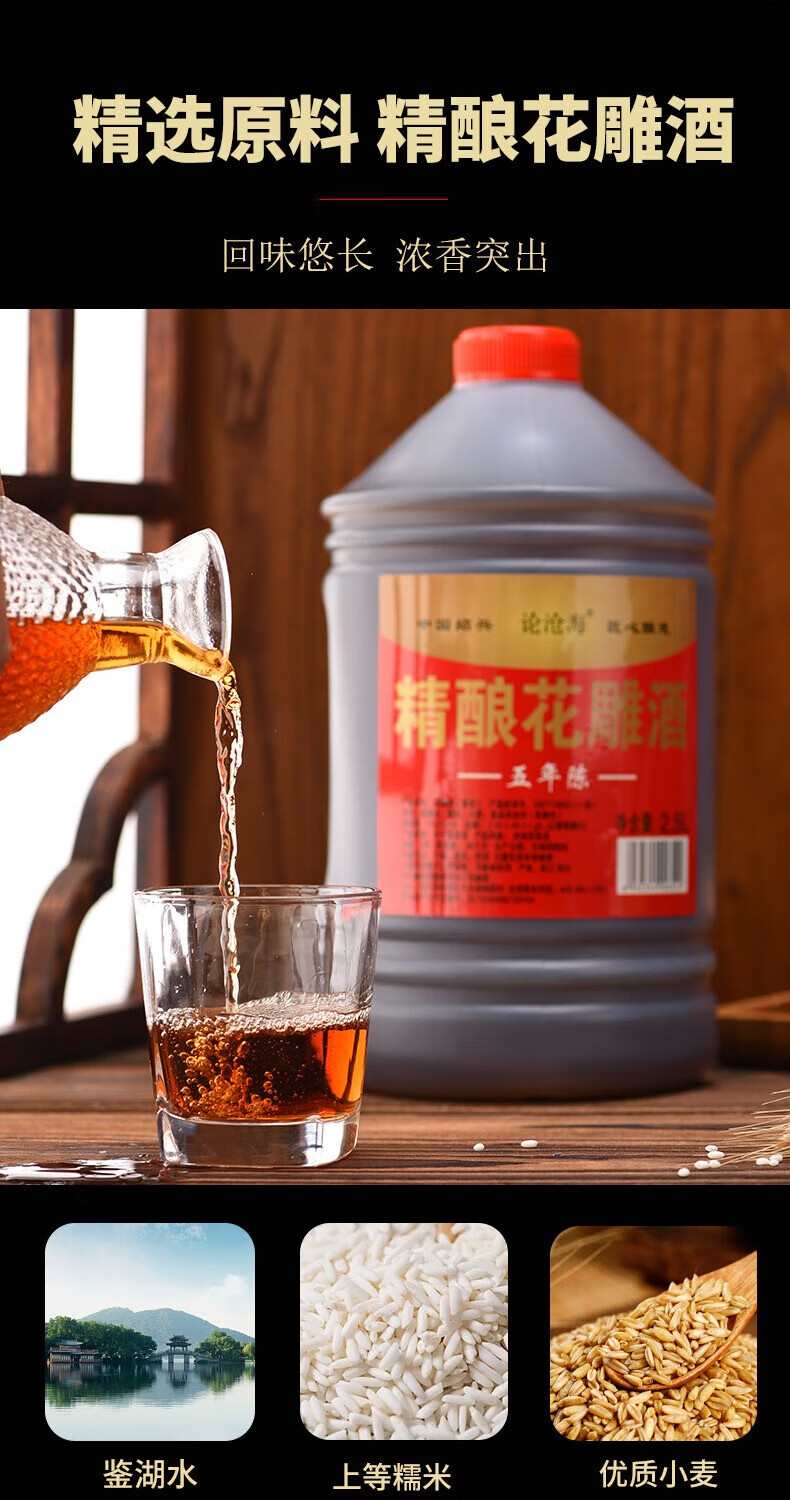 论沧海绍兴花雕黄酒八年陈2.5L桶装米酒家用厨用自饮老酒去腥解腻料酒 【5年陈】2.5L*1桶