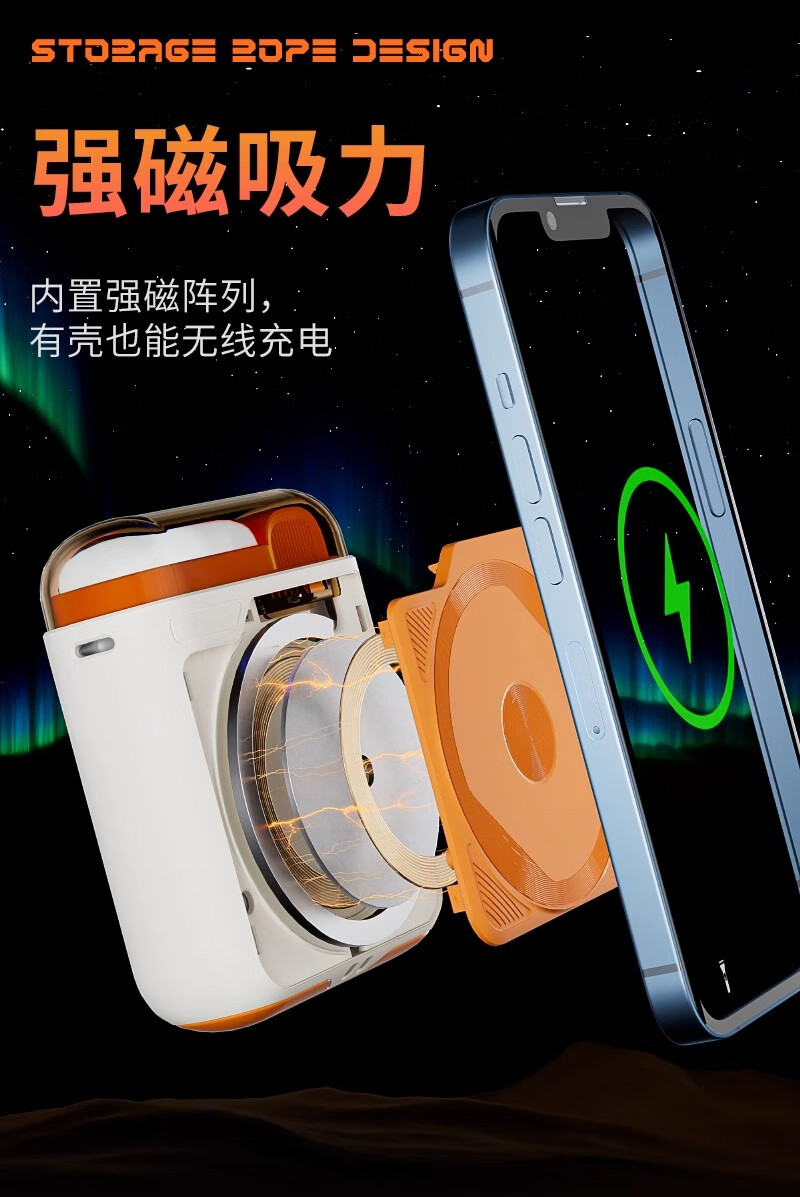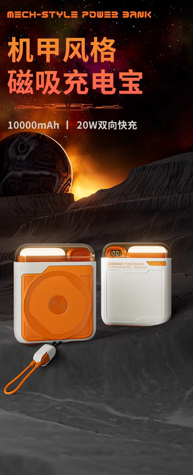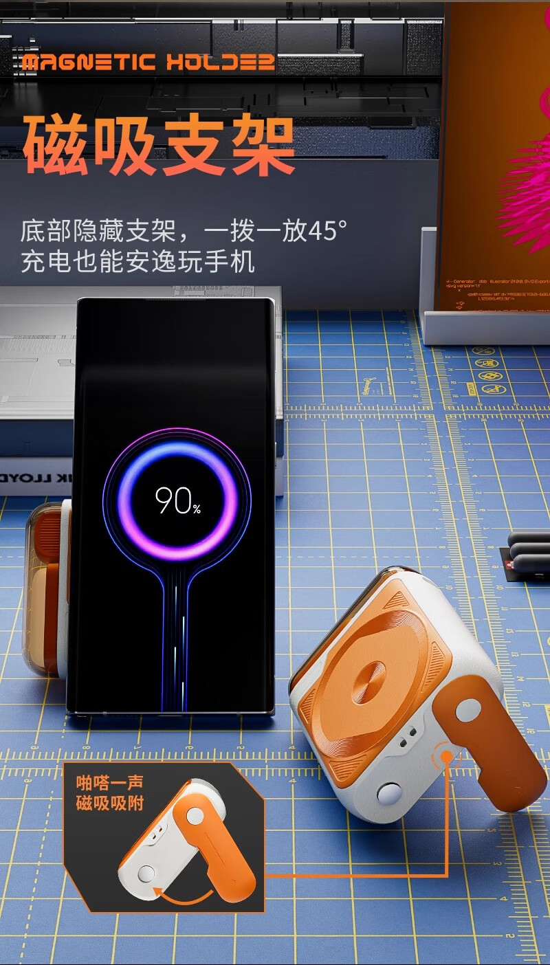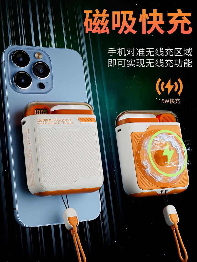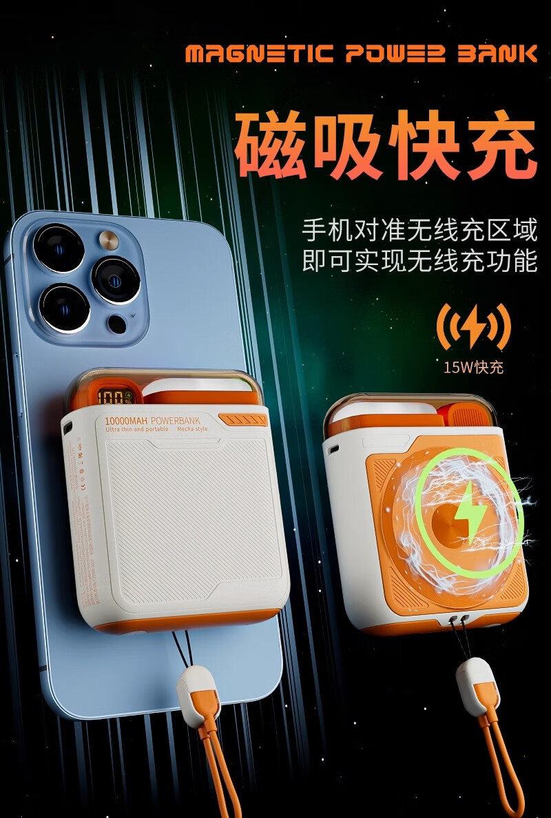 小麒智联磁吸充电宝3C认证可上飞机10000毫安自带双线支架LED照明20W移动电源适用于苹果小米华为荣耀手机 【米渐橙磁吸】3C认证可上飞机1W毫安PD快充
