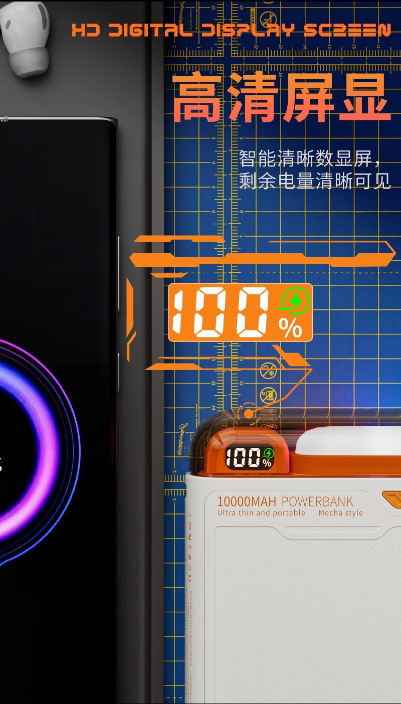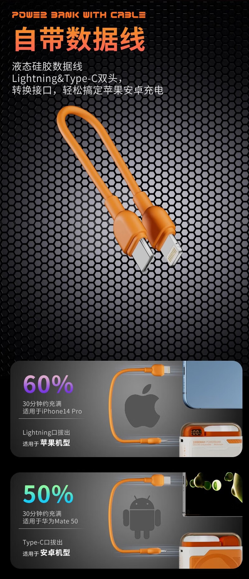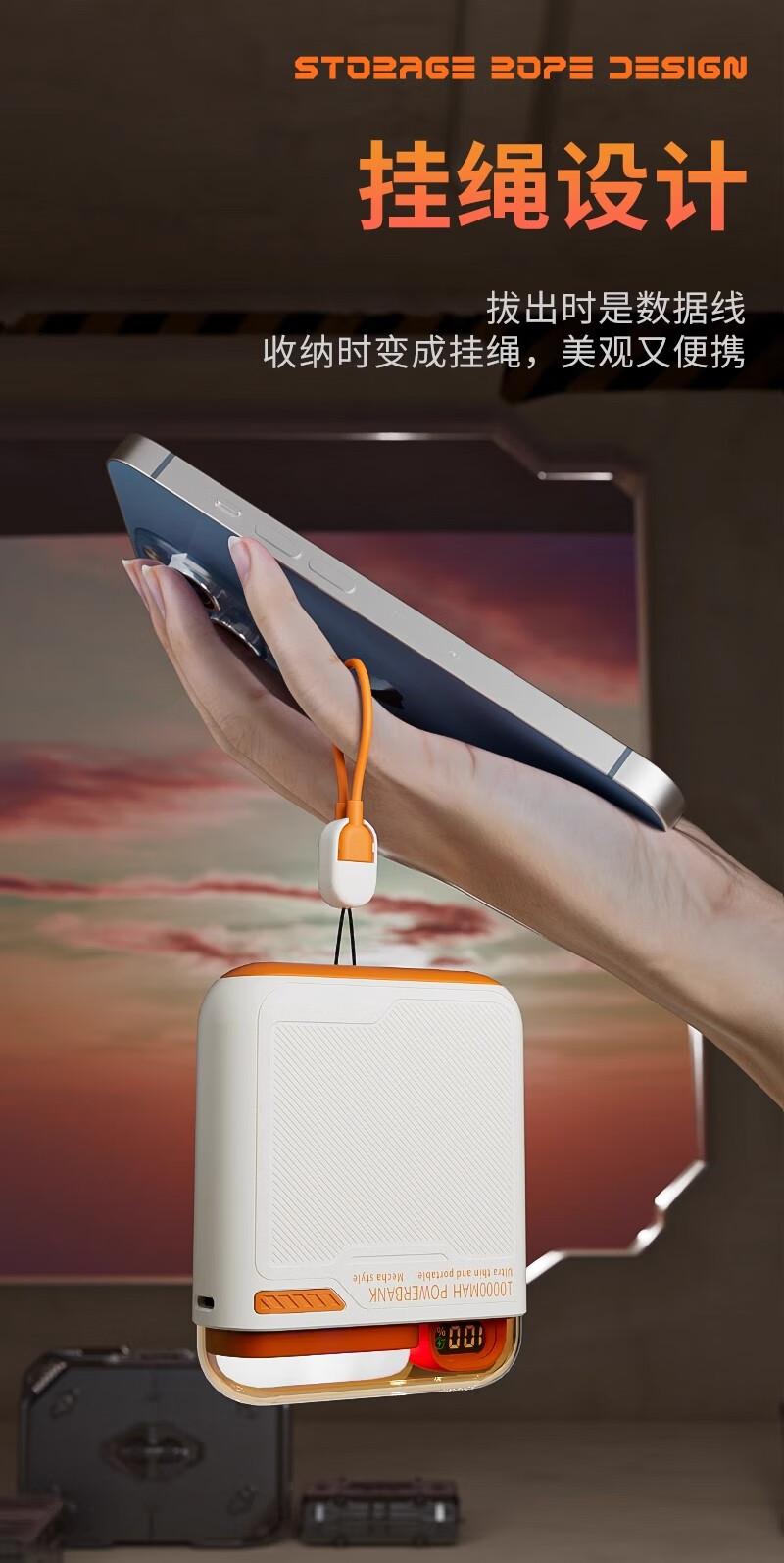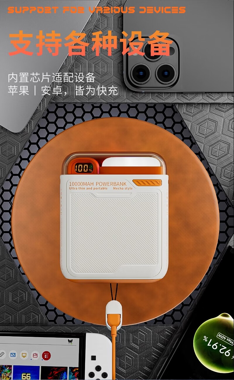 小麒智联磁吸充电宝3C认证可上飞机10000毫安自带双线支架LED照明20W移动电源适用于苹果小米华为荣耀手机 【米渐橙磁吸】3C认证可上飞机1W毫安PD快充