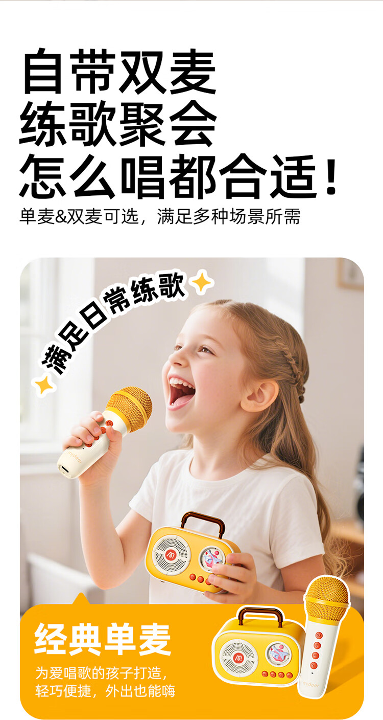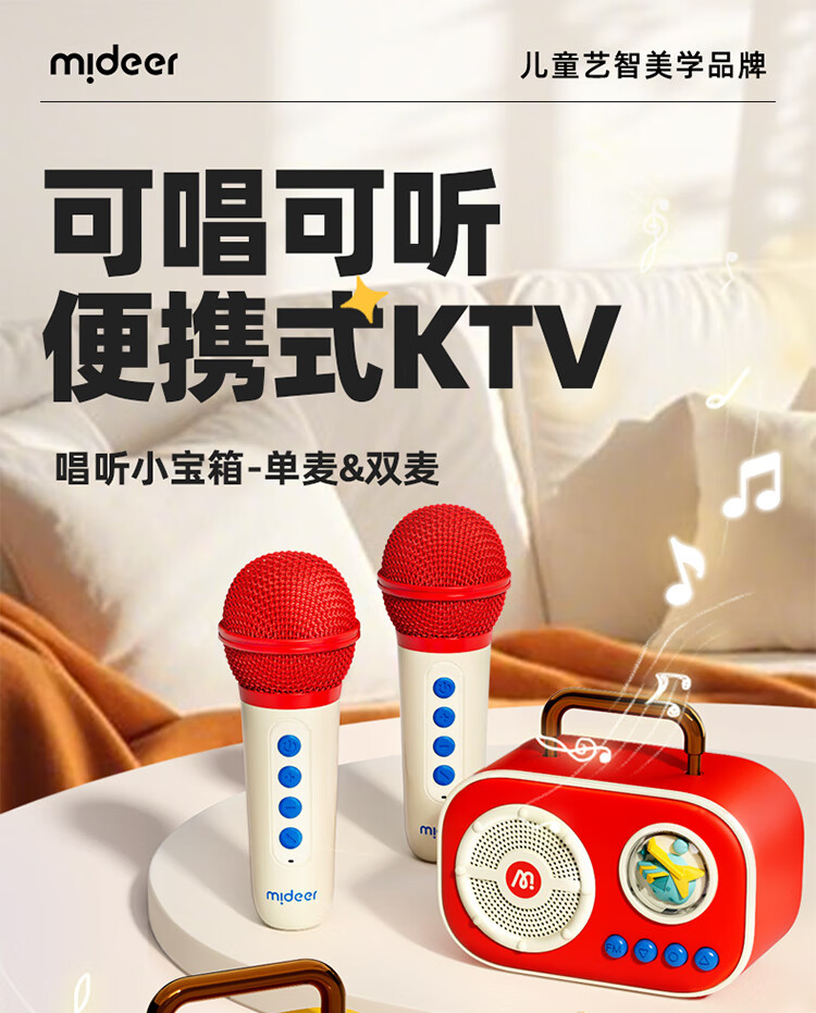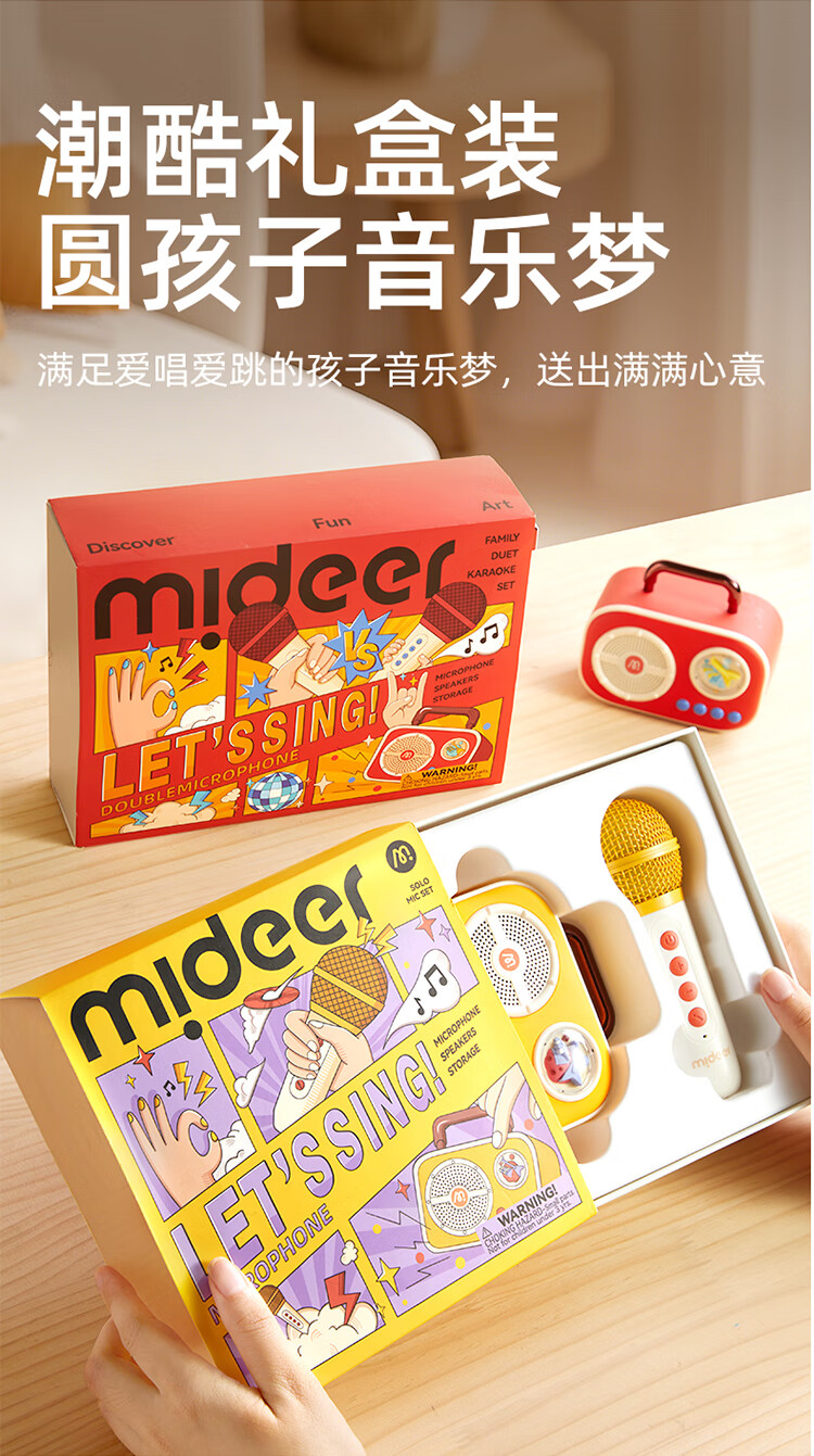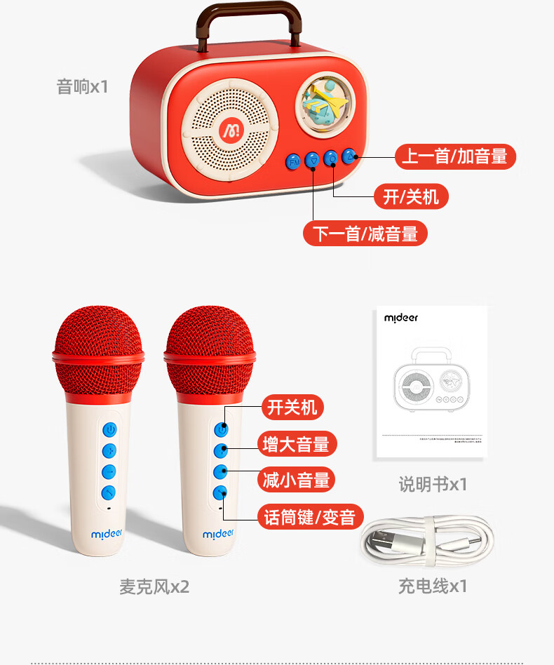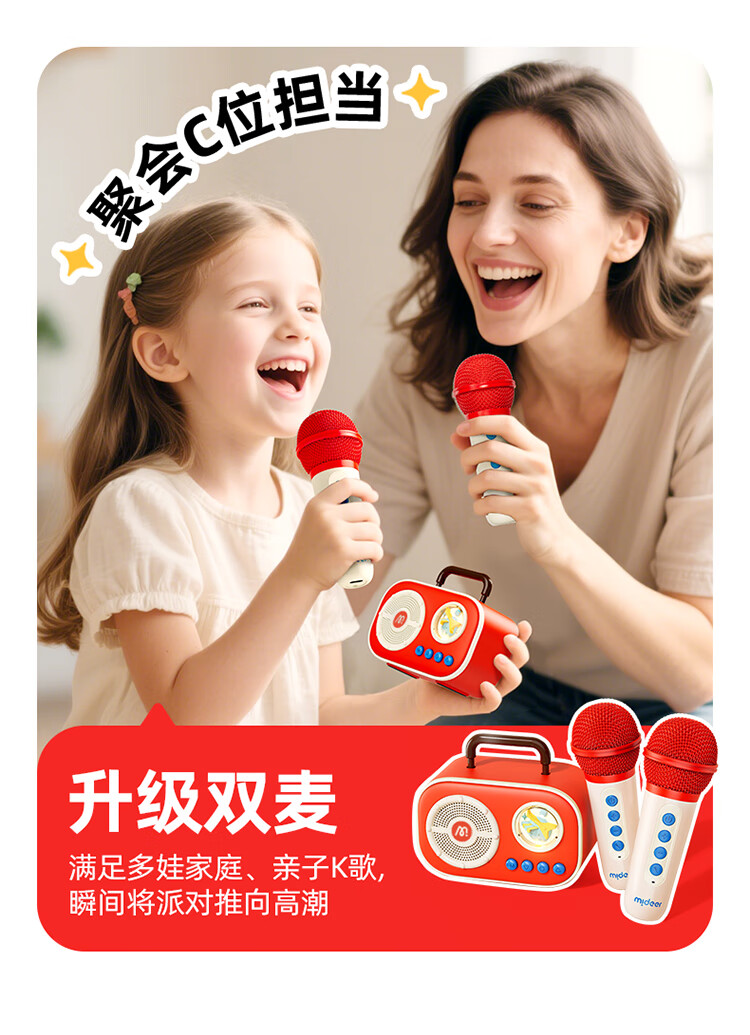 MiDeer儿童麦克风话筒音响一体无线k唱歌机玩具六一儿童节生日礼物礼盒 【中国红】升级双麦-麦克风礼盒