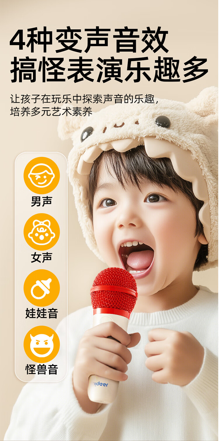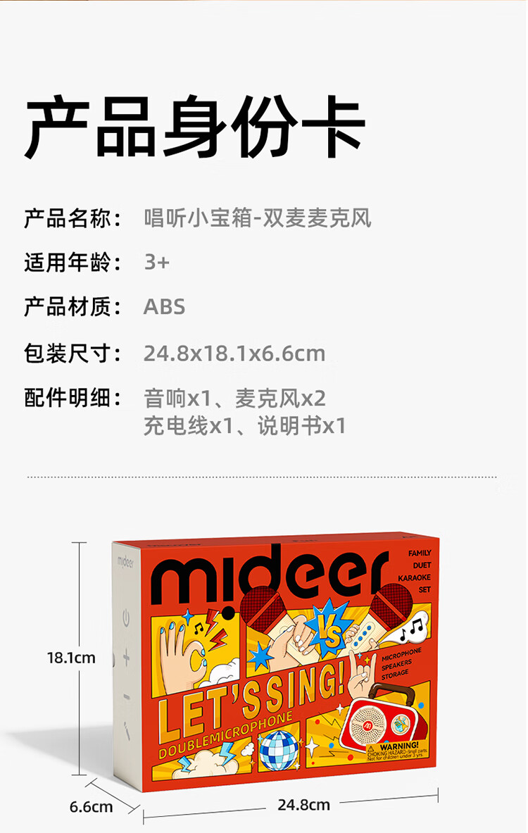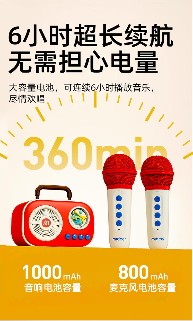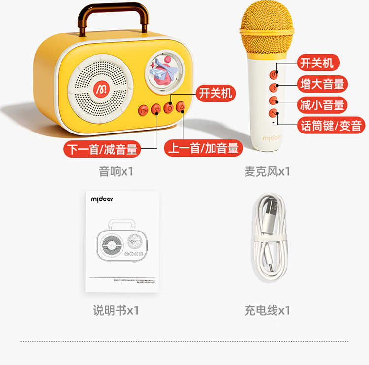 MiDeer儿童麦克风话筒音响一体无线k唱歌机玩具六一儿童节生日礼物礼盒 【中国红】升级双麦-麦克风礼盒