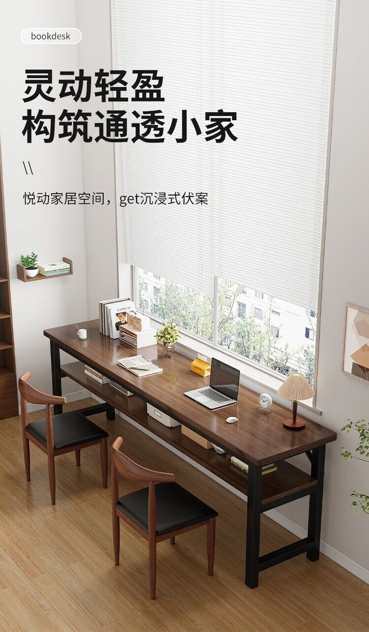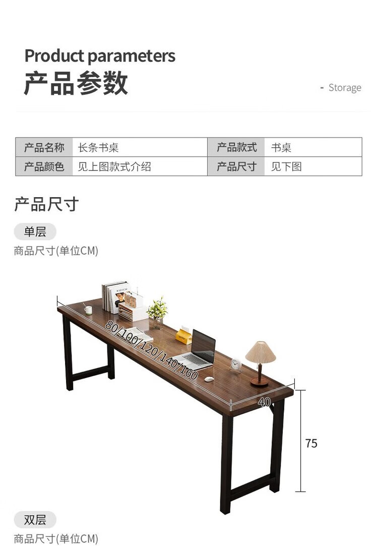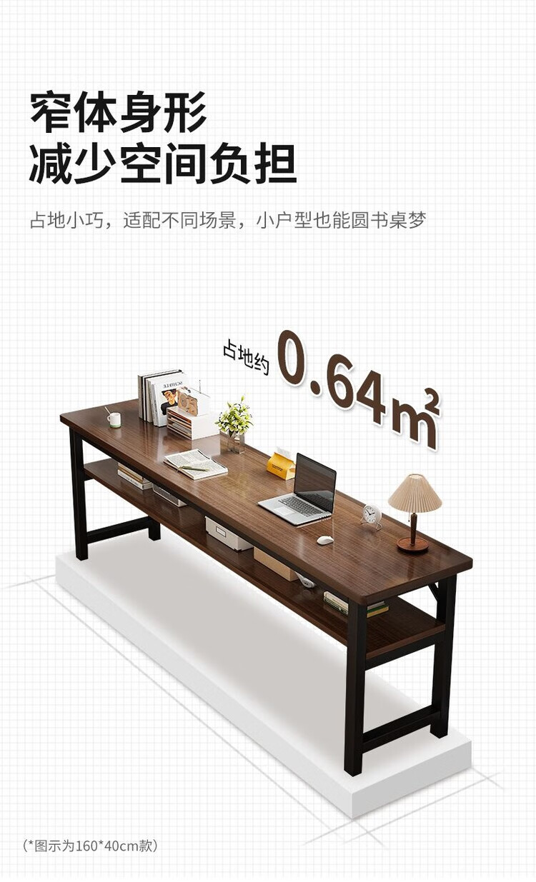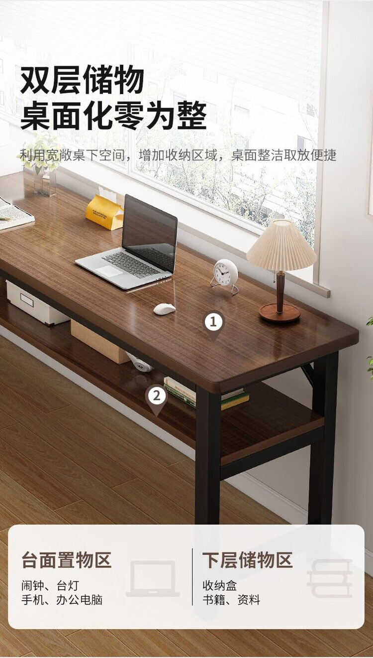 倘然之家双人长书桌卧室家用轻奢现代长条桌子简约电脑办公桌实木腿工作台 【进口松木加厚桌腿】140*50*75cm胡桃色