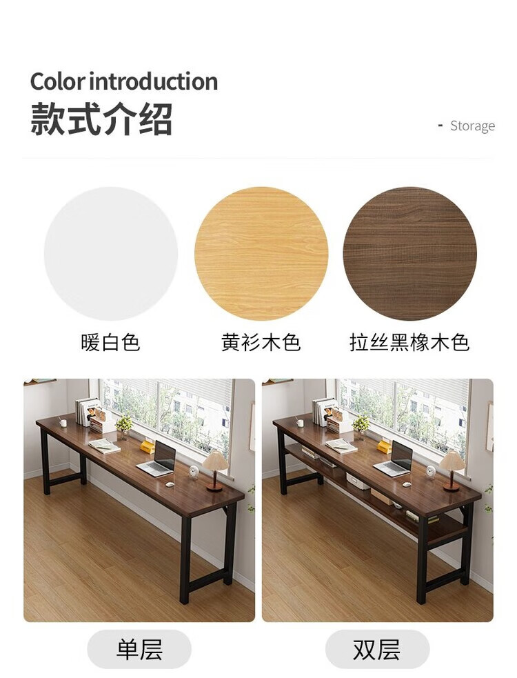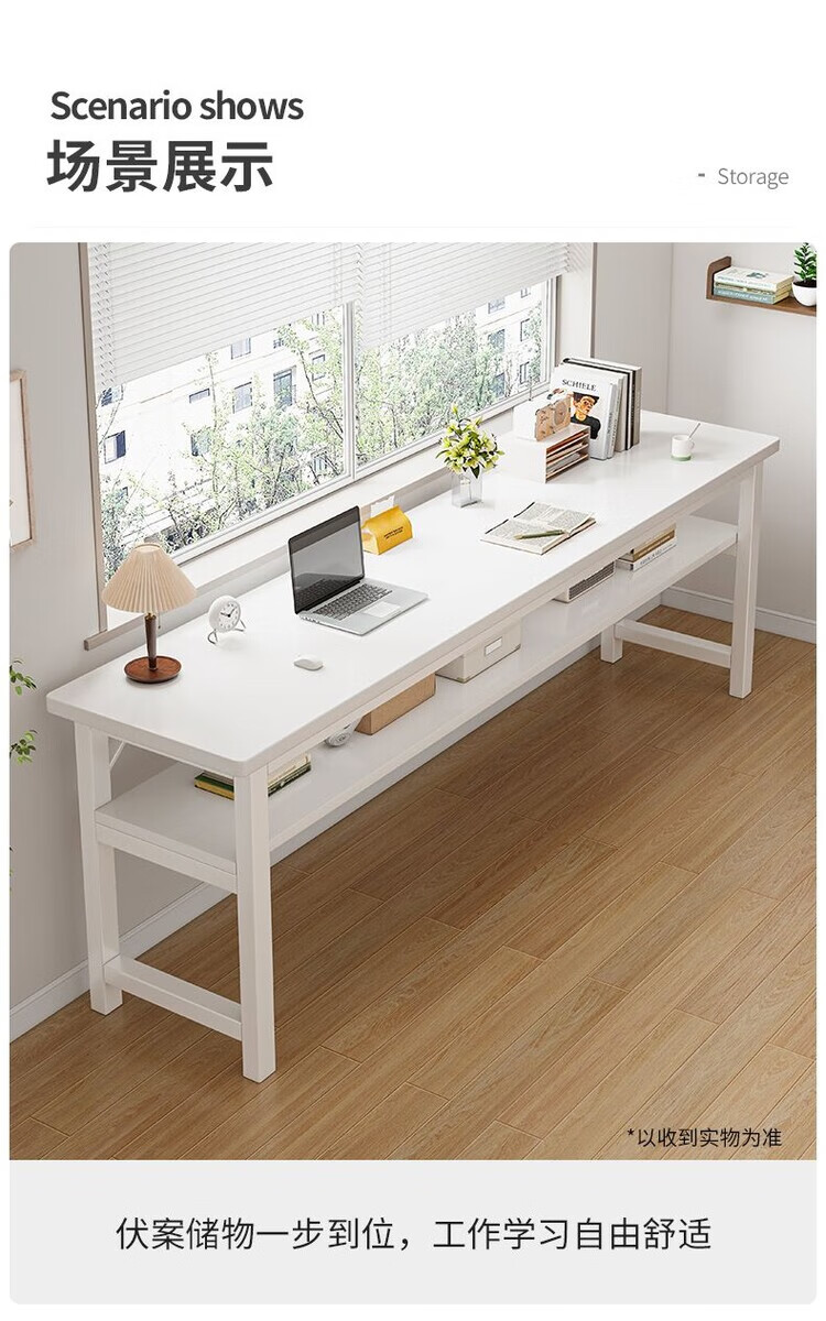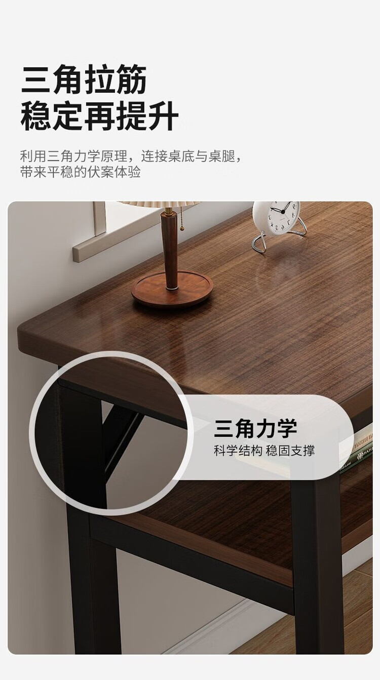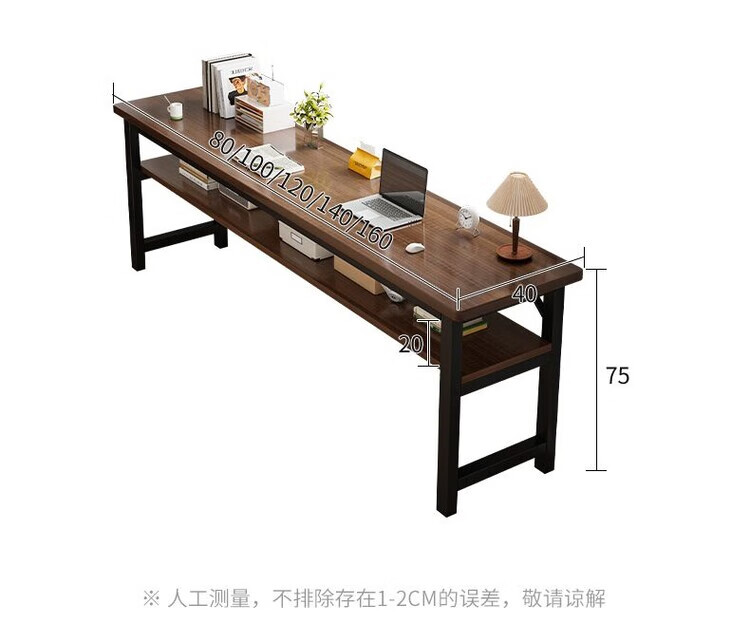 倘然之家双人长书桌卧室家用轻奢现代长条桌子简约电脑办公桌实木腿工作台 【进口松木加厚桌腿】140*50*75cm胡桃色