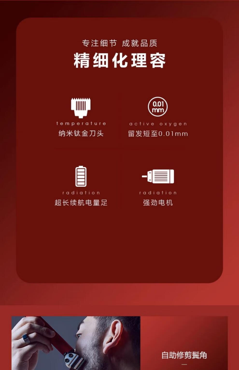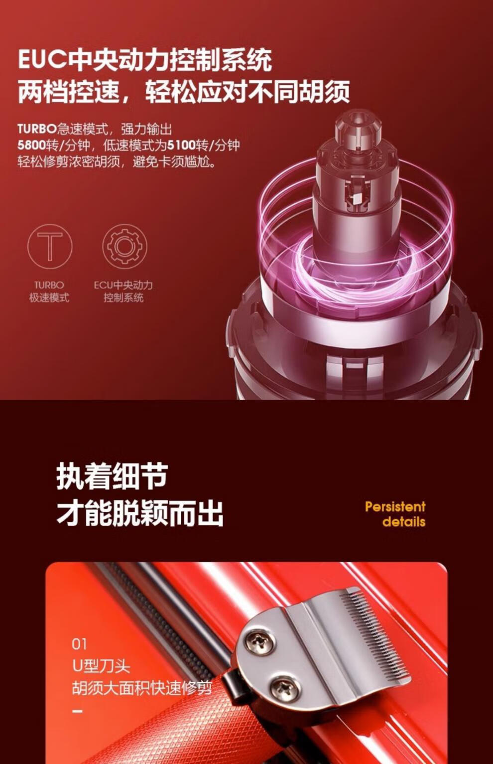 京悠雨络腮胡专用剃须刀电动男士修胡子造型器修理鬓角毛修剪器电动推子神器 德国精工中国红-直充款男士理容剃须刀
