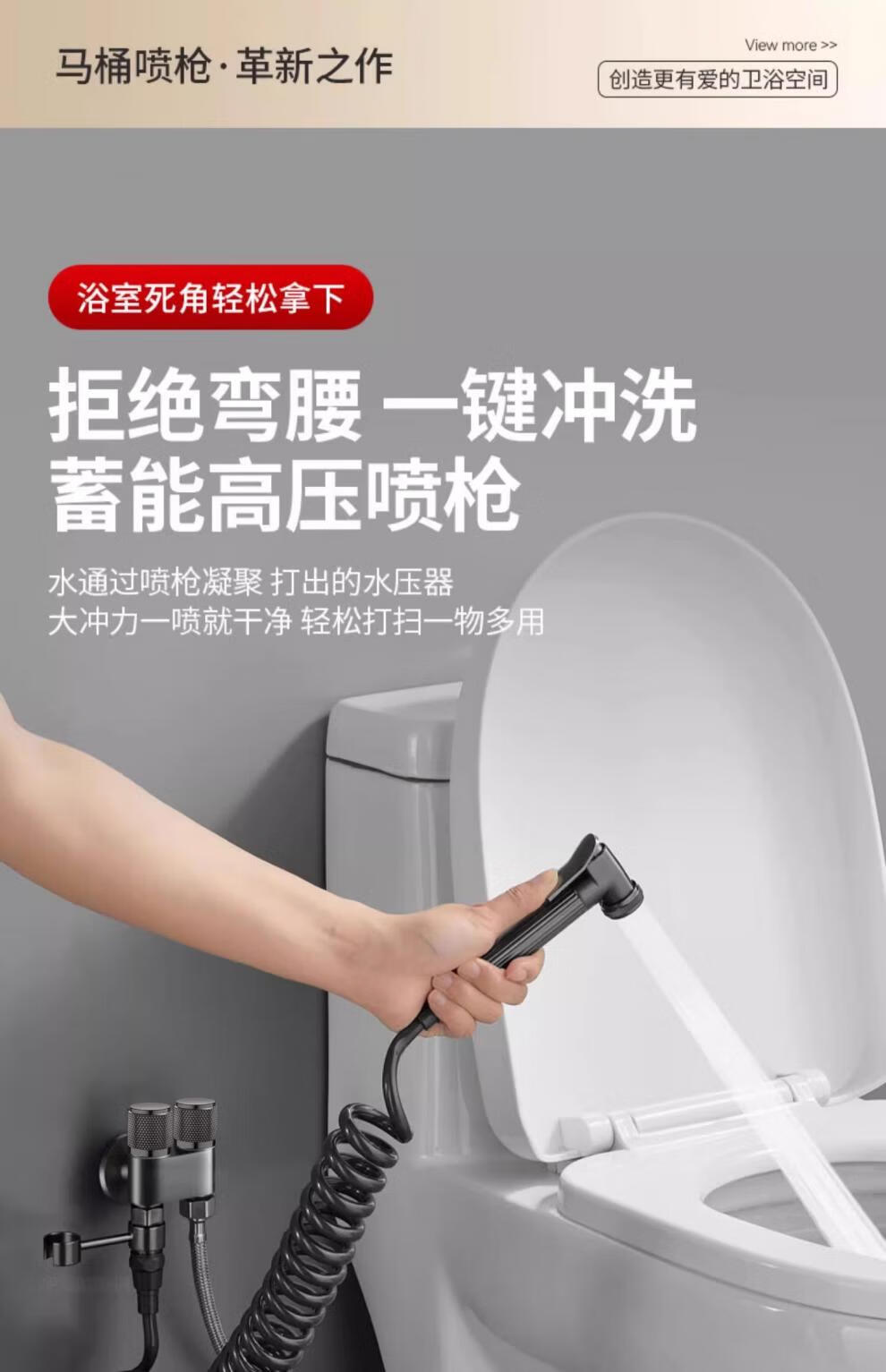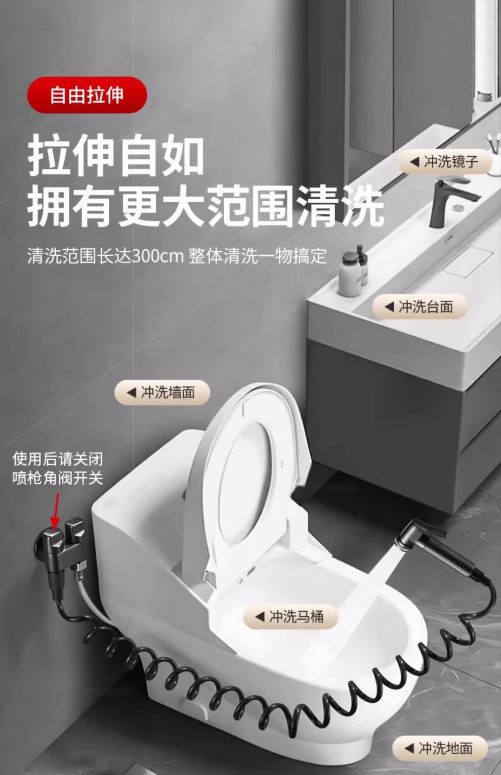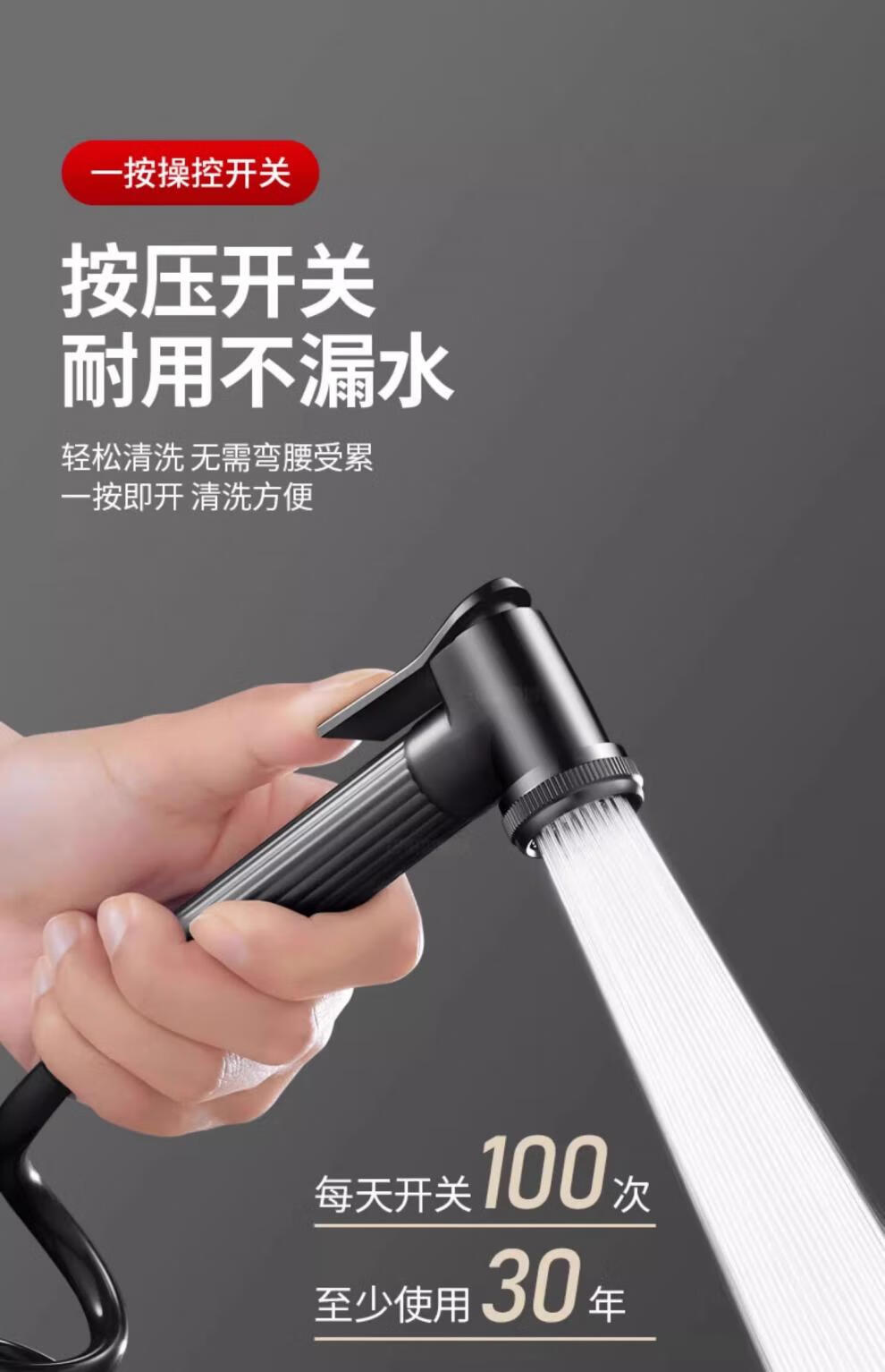 九牧(JOMOO)官方旗舰马桶伴侣喷枪水龙头防臭冲洗水枪喷头高压家用卫生间通用 拉丝-304喷枪+大旋转支架+3M伸缩管【三件套】
