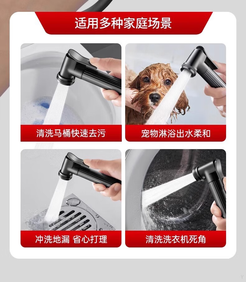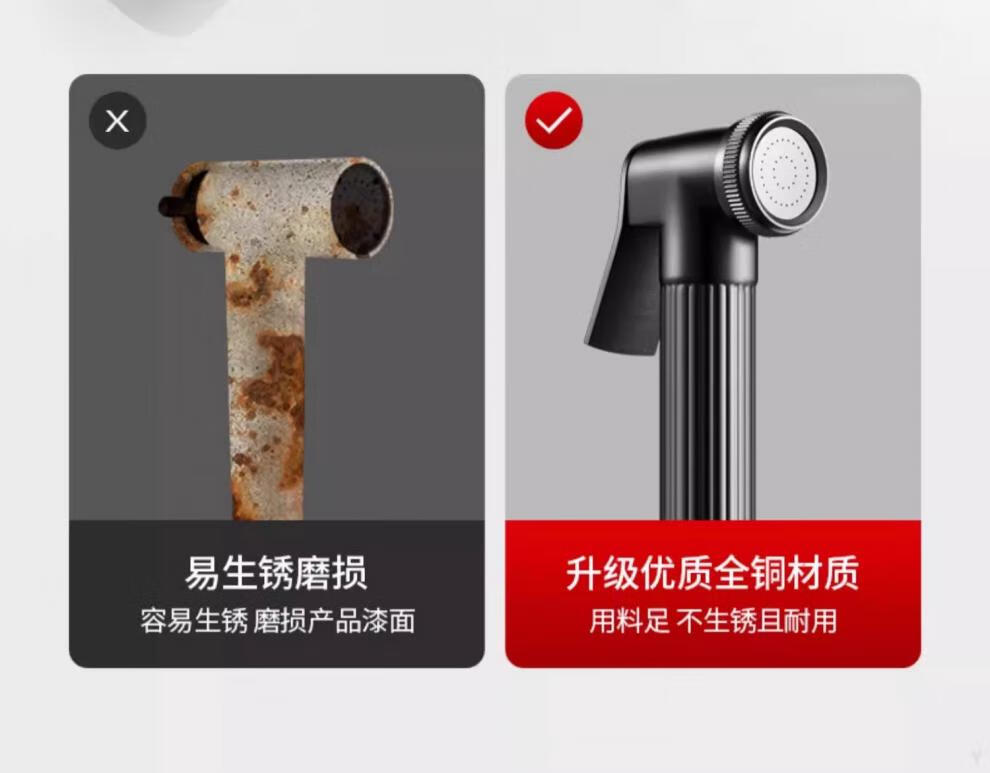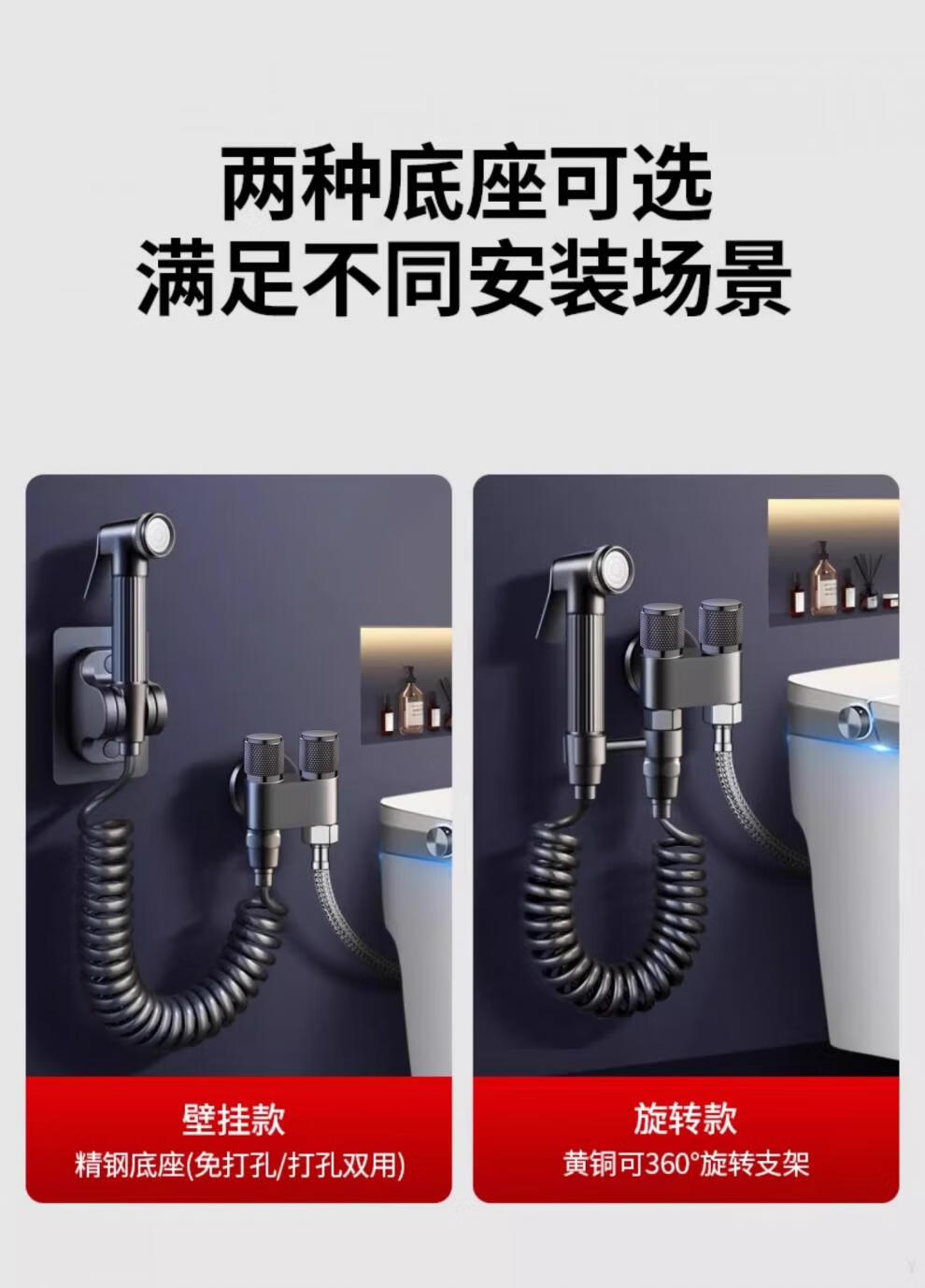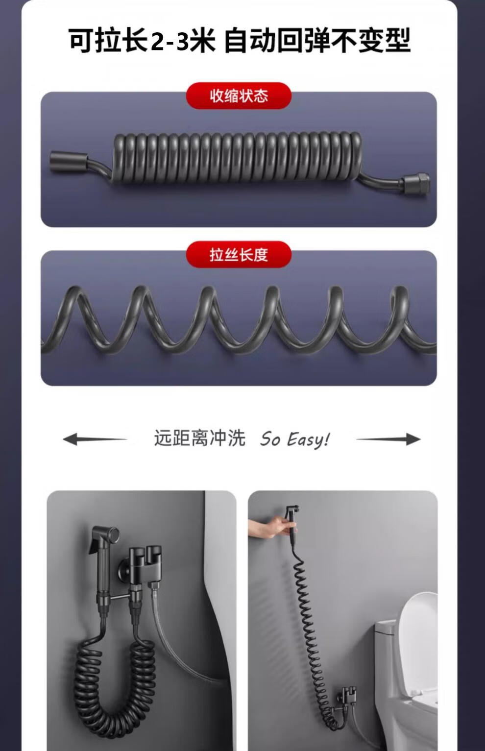 九牧(JOMOO)官方旗舰马桶伴侣喷枪水龙头防臭冲洗水枪喷头高压家用卫生间通用 拉丝-304喷枪+大旋转支架+3M伸缩管【三件套】