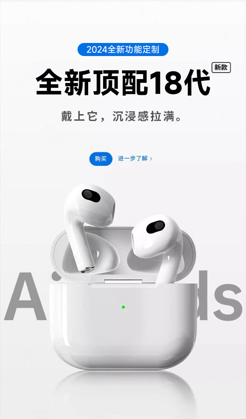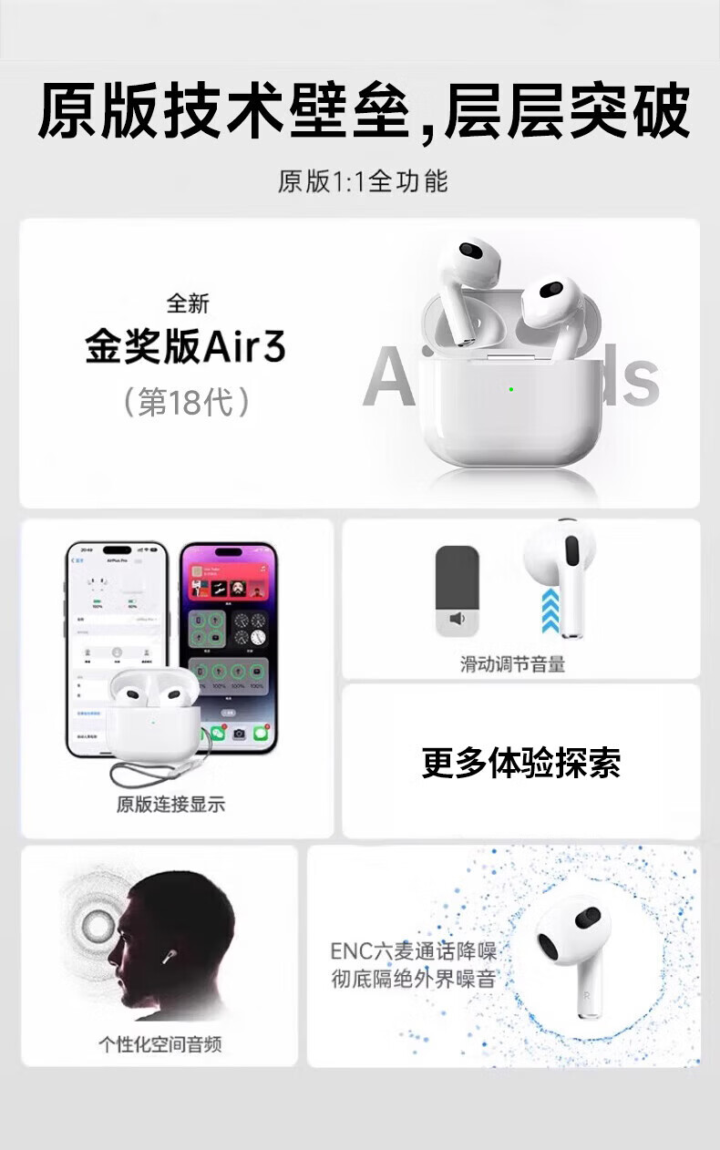华强北爆款【10代纯原顶配】Air蓝牙耳机无线Pods3半入耳式降噪耳机排行前十适用苹果安卓iphone17/16 【顶配降噪版】原版1:1全功能 空间音頻+智能触控+三真电量