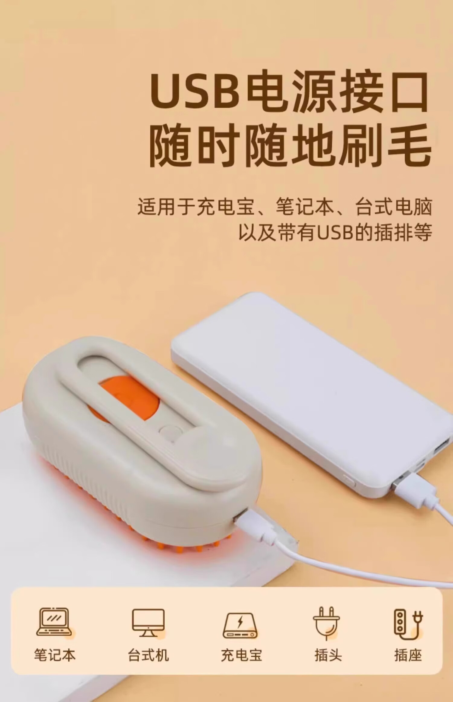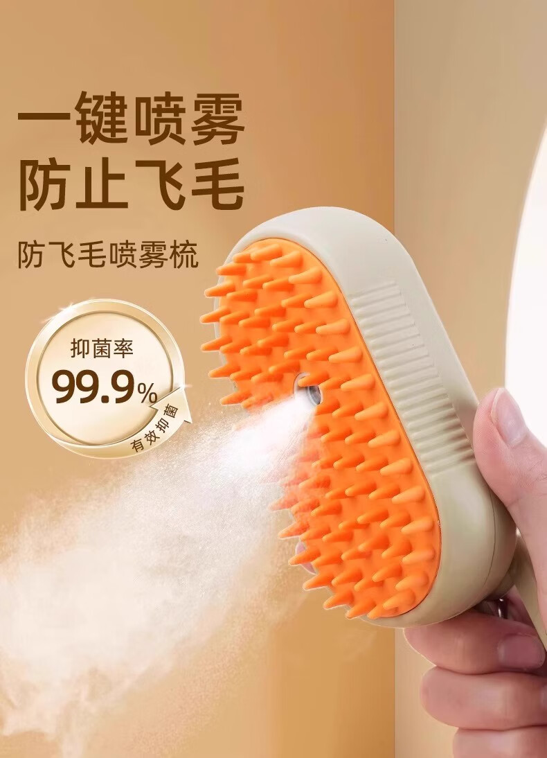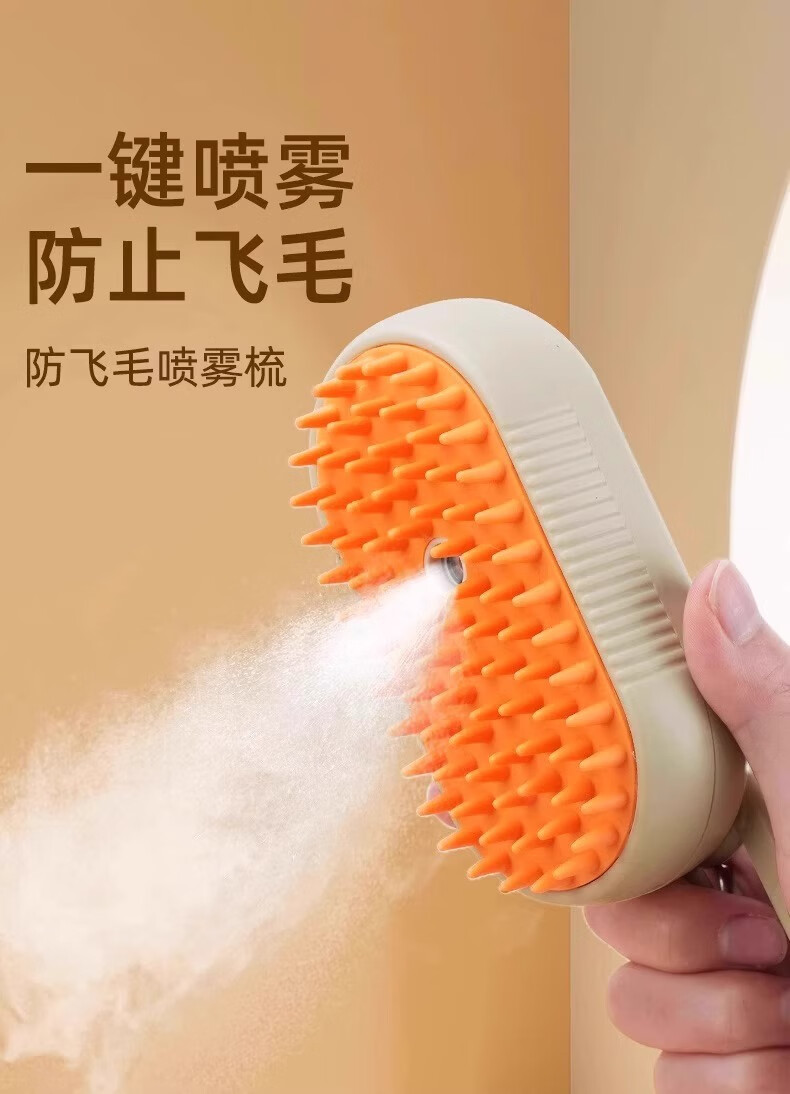 小猫日记宠物喷雾按摩梳猫梳子狗狗蒸汽梳毛器猫毛梳去浮毛免洗澡猫咪用品 长柄喷雾梳奶油白-USB充电款