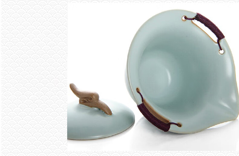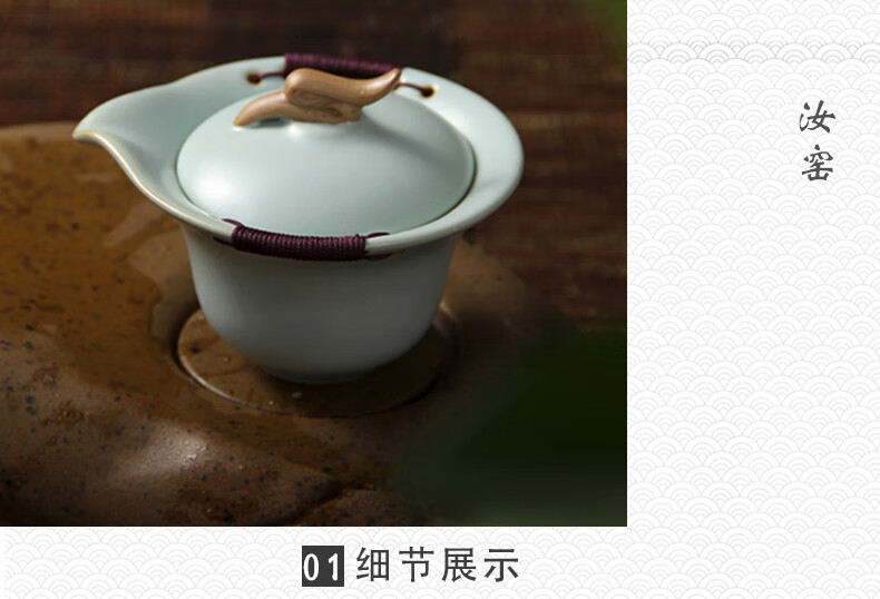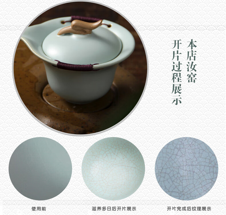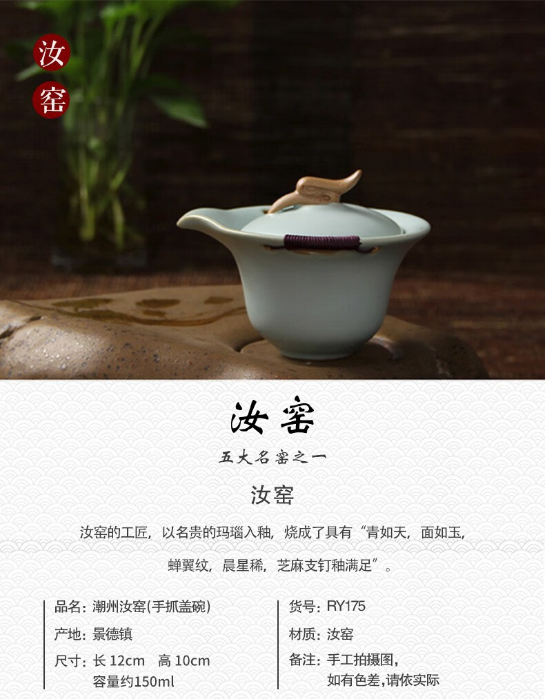 易信汝窑盖碗手抓泡茶碗汝瓷开片茶壶手抓壶功夫茶具 汝窑如凤手抓碗-天蓝色