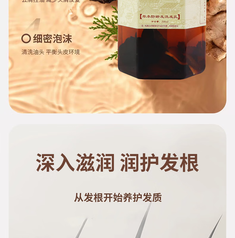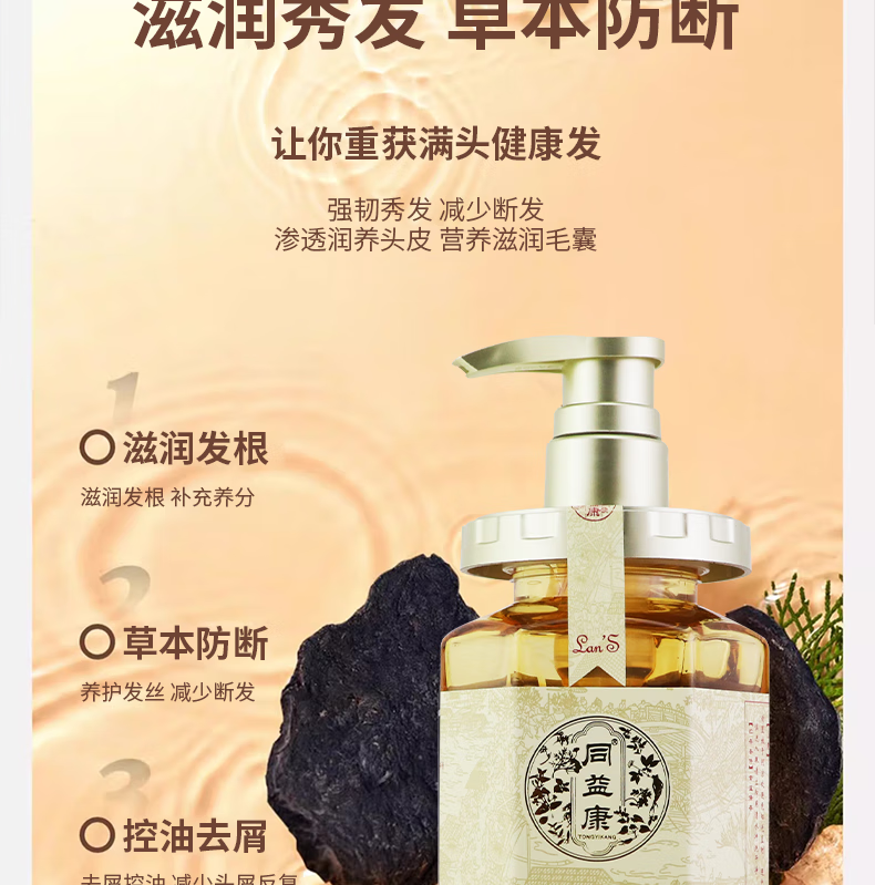 同益康草本去屑防断发洗发水控油强根健发洗发露无硅油植物浸泡养发护发 草本强根健发洗发露 500ml 1瓶