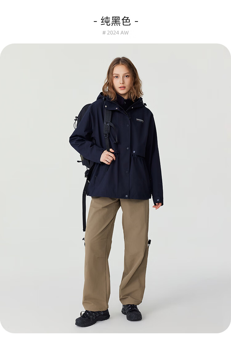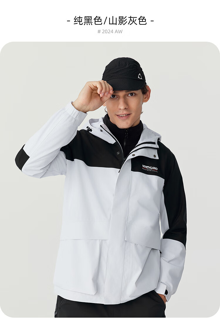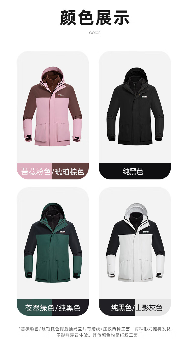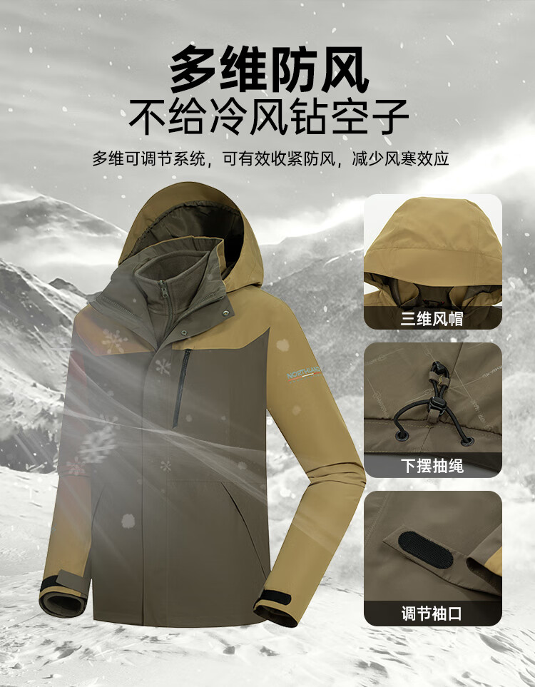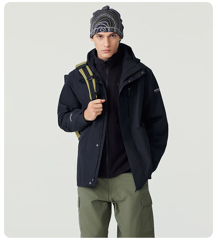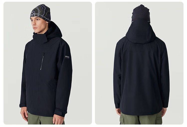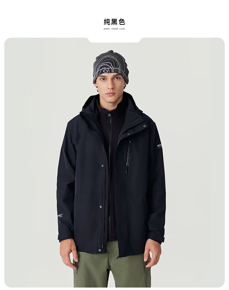 诺诗兰秋冬户外男女三合一冲锋衣防水耐磨徒步冲锋外套硬壳登山服 纯黑色-07E男 175