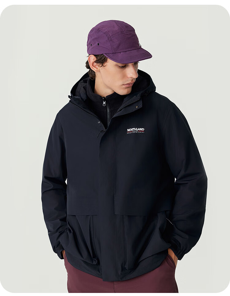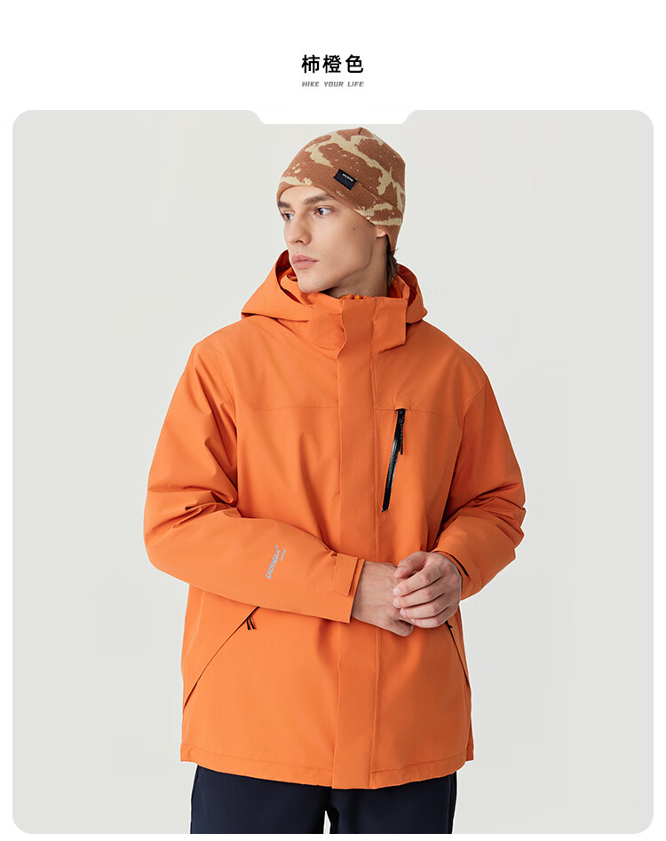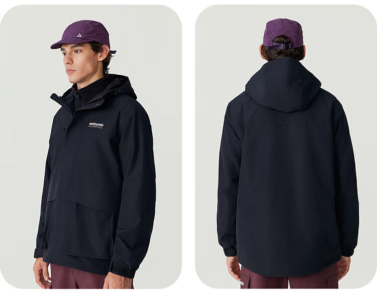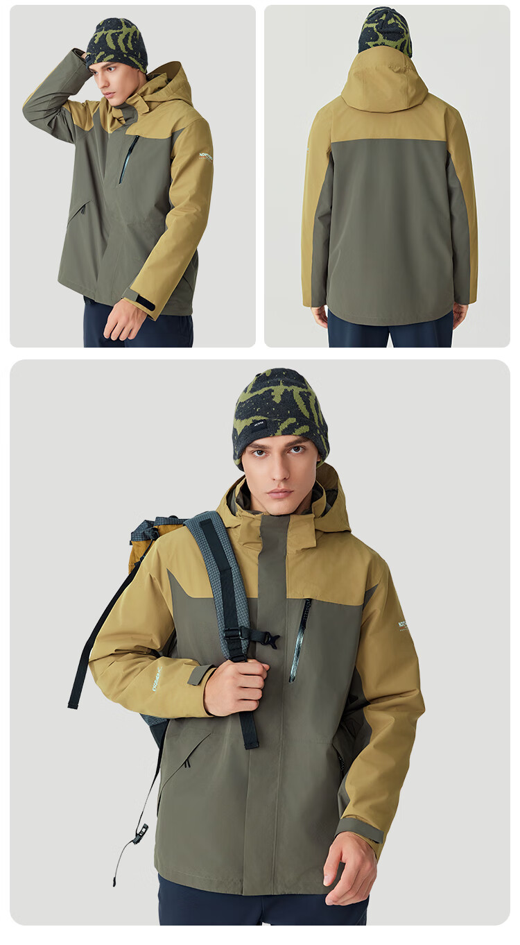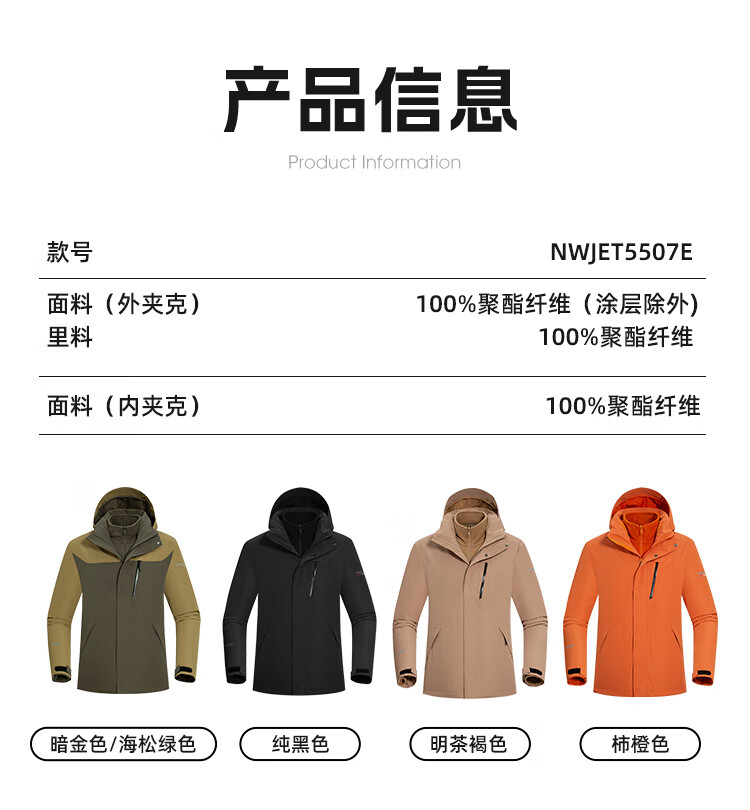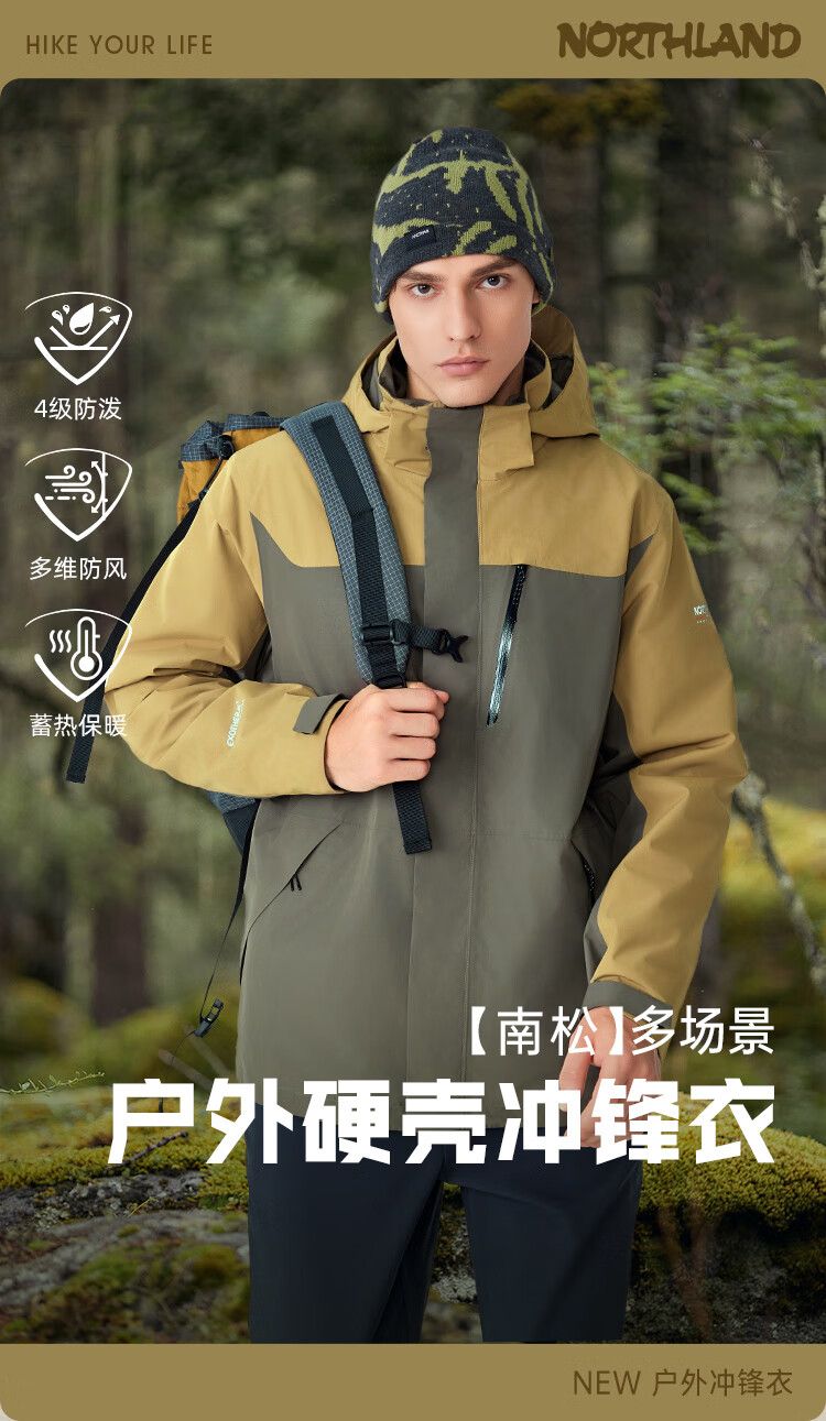 诺诗兰秋冬户外男女三合一冲锋衣防水耐磨徒步冲锋外套硬壳登山服 纯黑色-07E男 175