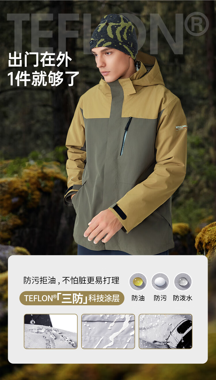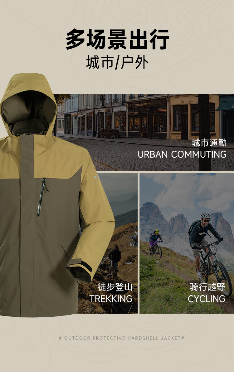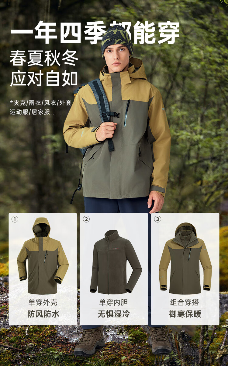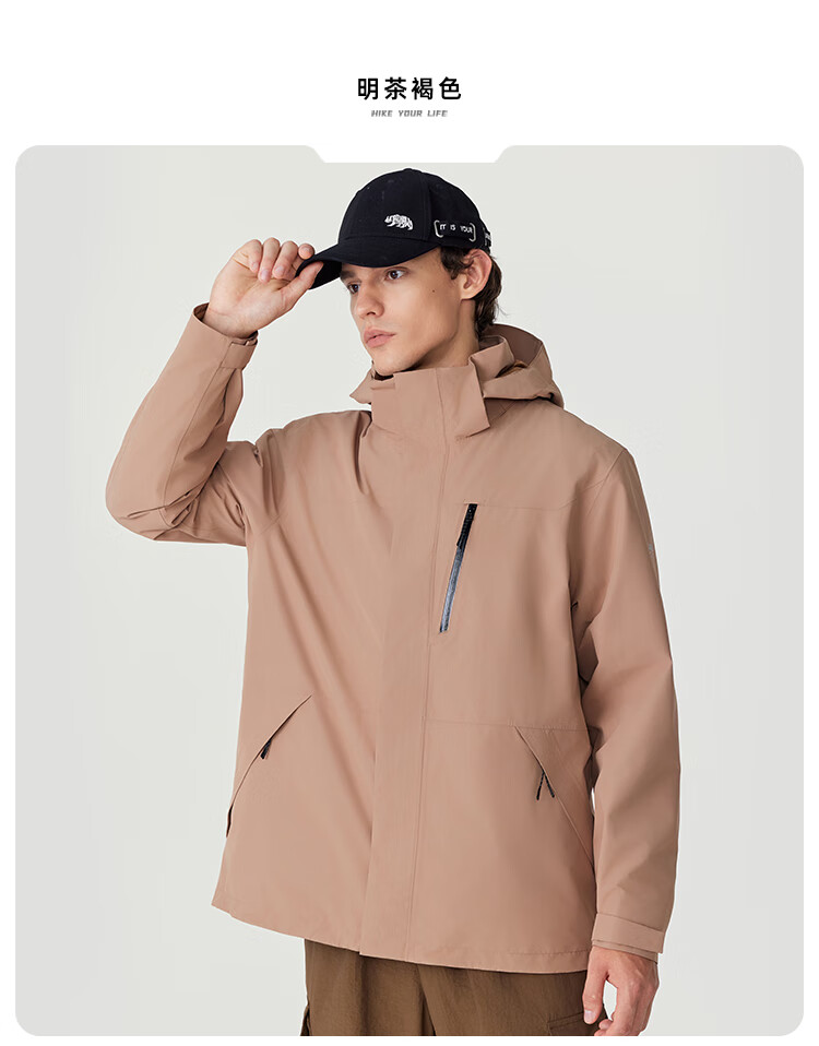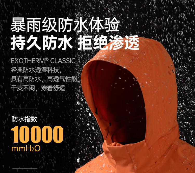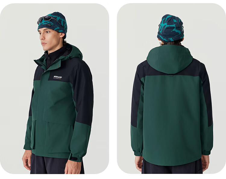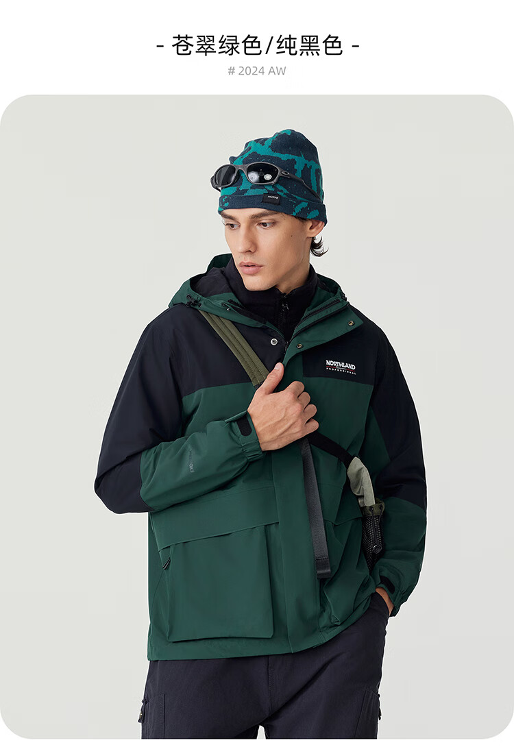 诺诗兰秋冬户外男女三合一冲锋衣防水耐磨徒步冲锋外套硬壳登山服 纯黑色-07E男 175
