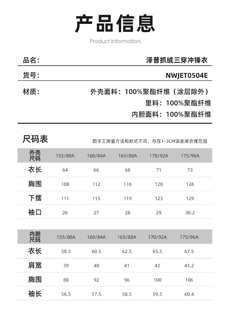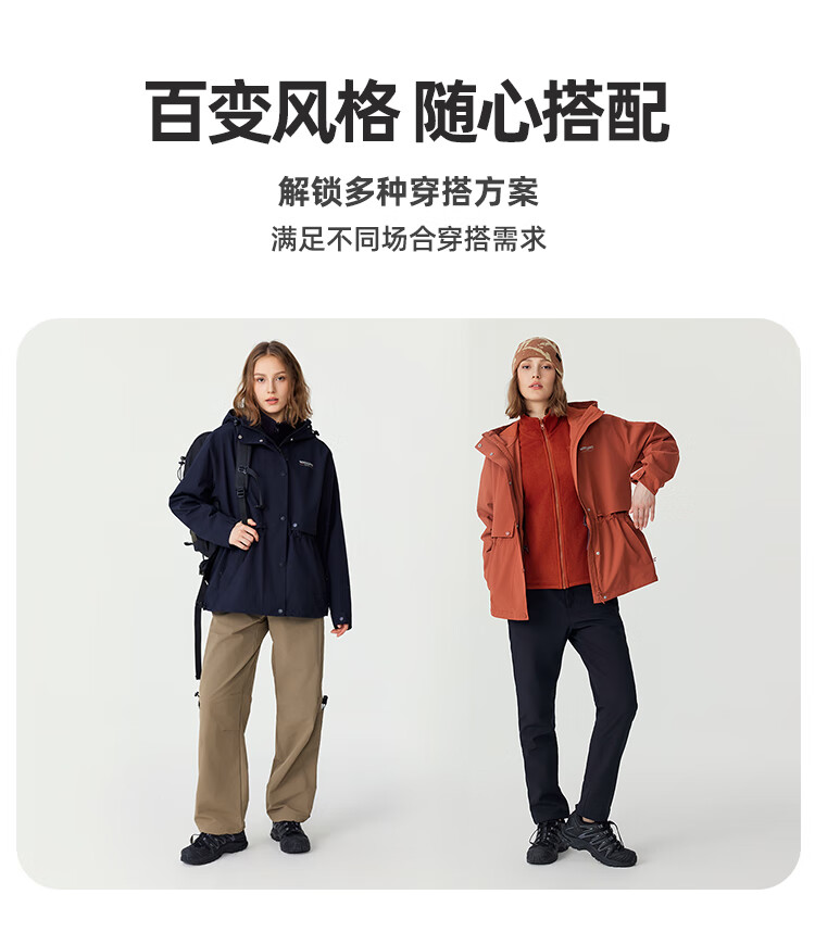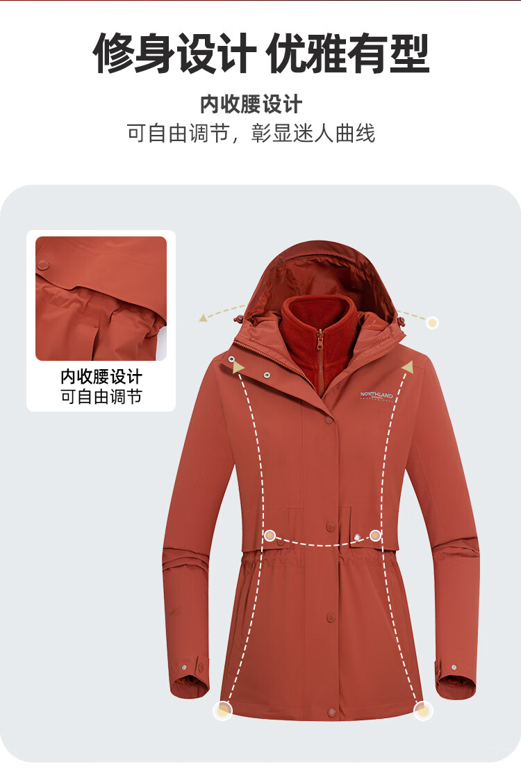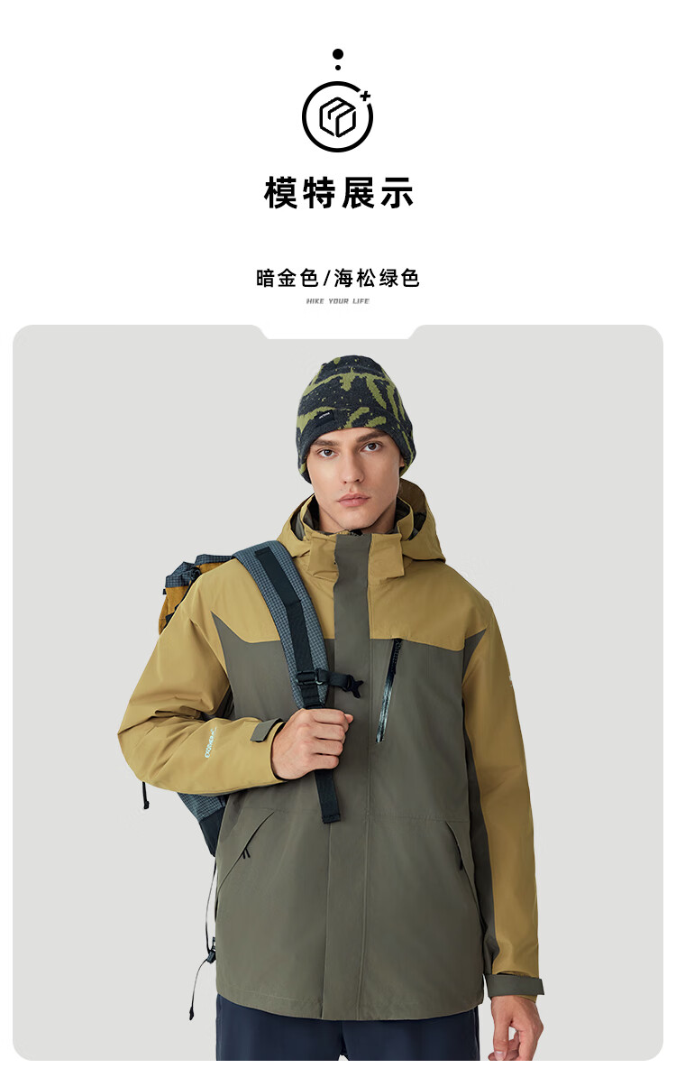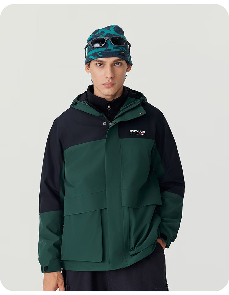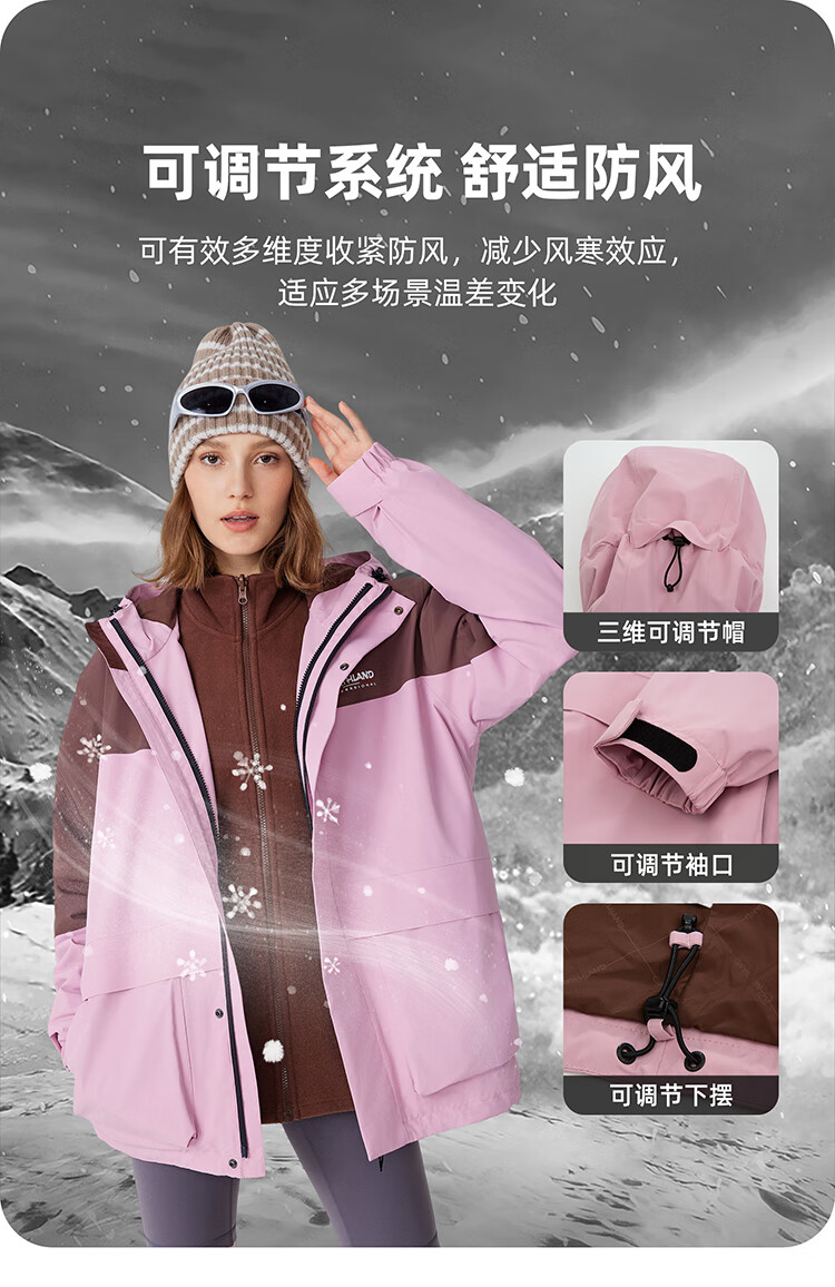 诺诗兰秋冬户外男女三合一冲锋衣防水耐磨徒步冲锋外套硬壳登山服 纯黑色-07E男 175