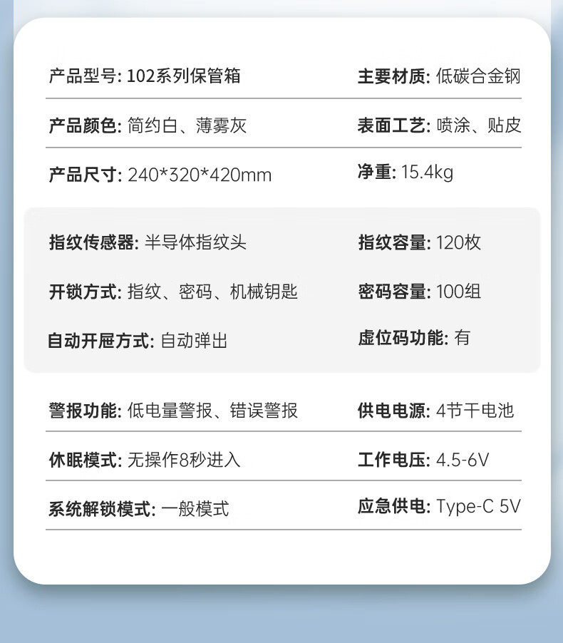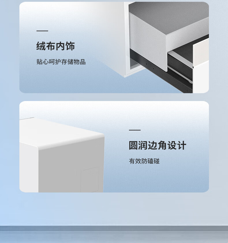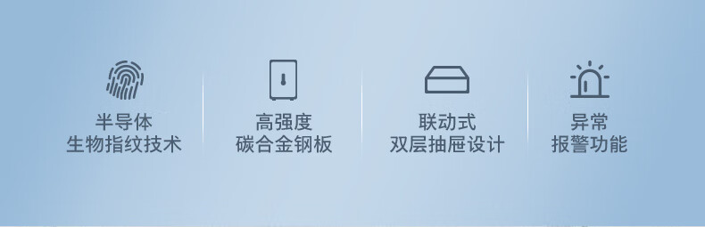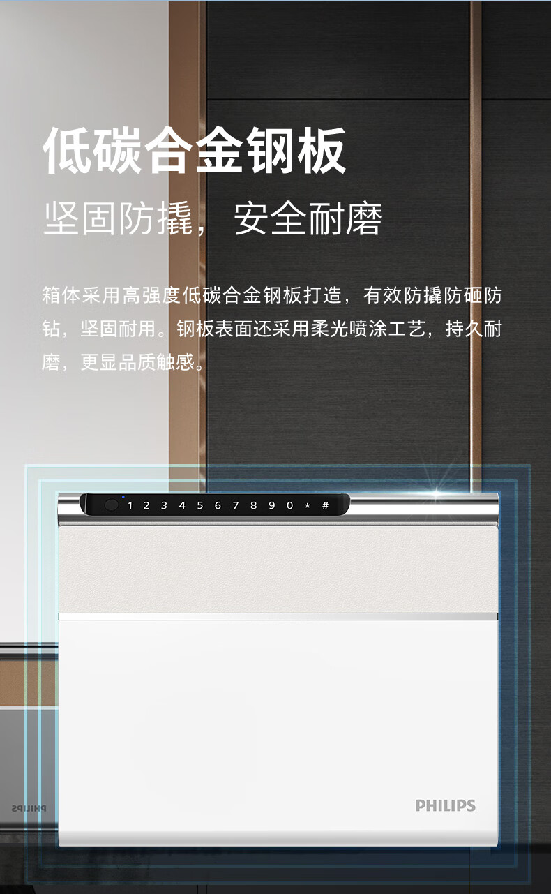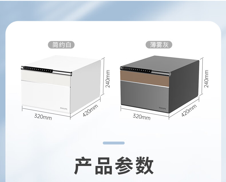 飞利浦保险柜家用办公 床头保险柜保管箱 联动式双层抽屉设计 半导体指纹密码便携保险箱 薄雾灰