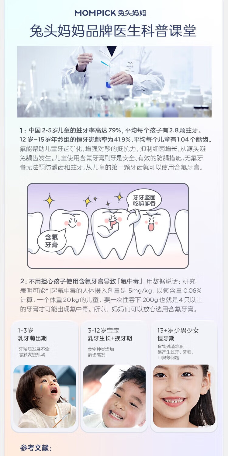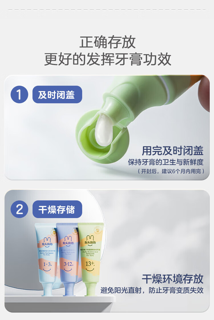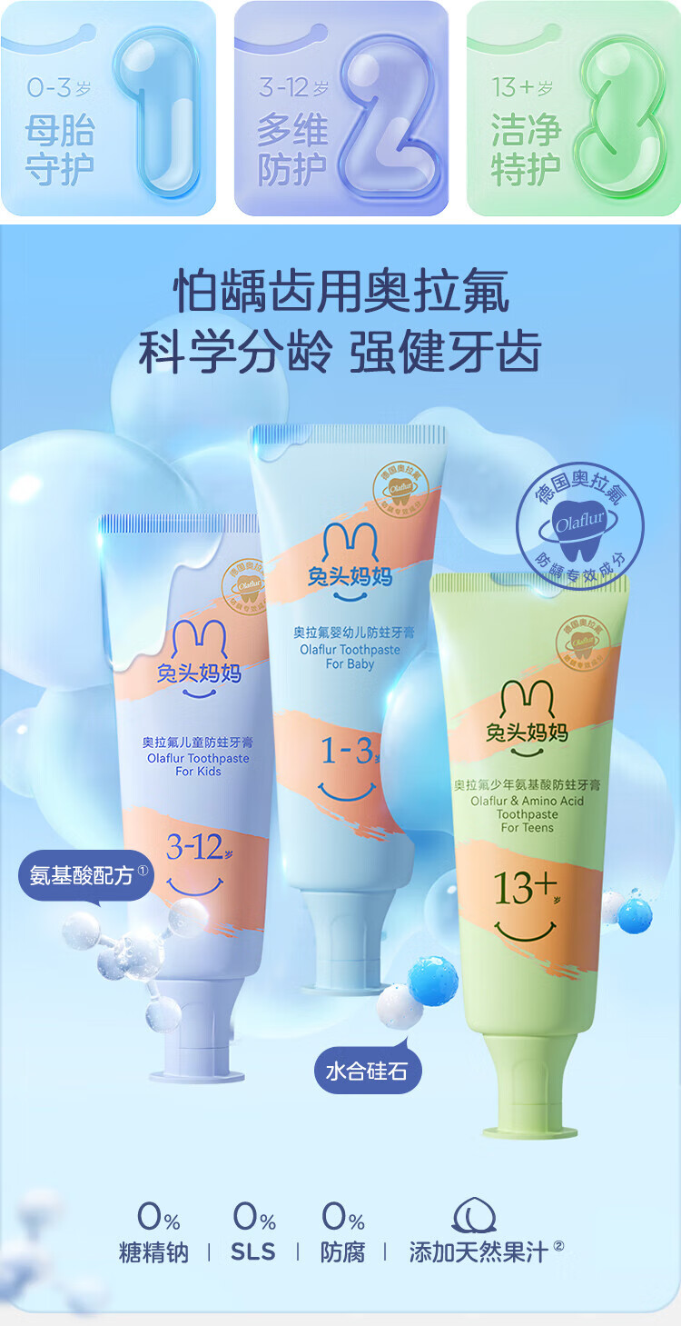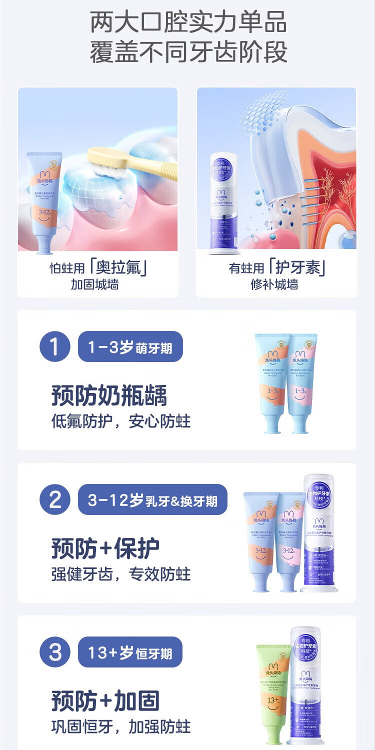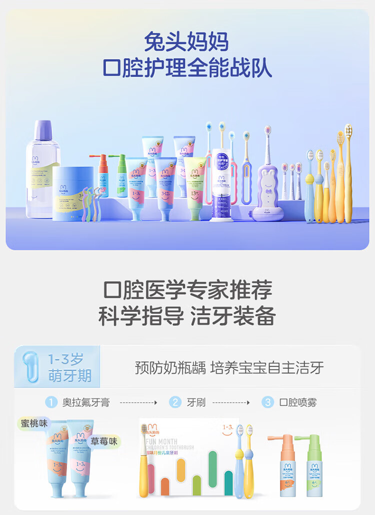 兔头妈妈儿童牙刷牙膏 经典奥拉氟防蛀防龋 宝宝含氟牙膏 【1-3岁】经典奥拉氟50g*2+牙刷3支赠10g*2