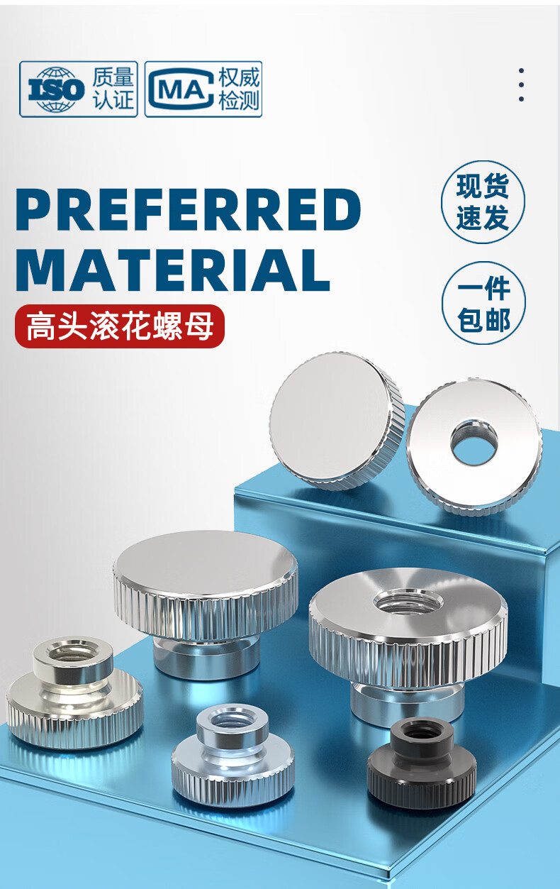 天卓五金GB807 304不锈钢/铁镀锌镀镍手拧螺母滚花大头薄平头螺丝帽M3-M10 M2【304不锈钢】-50个