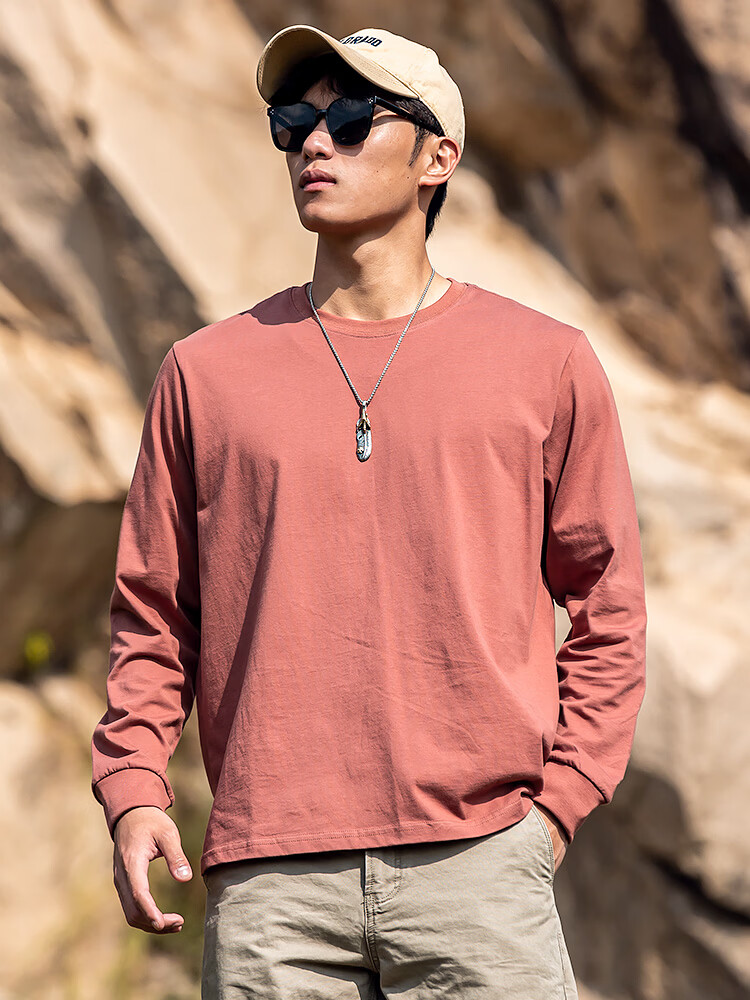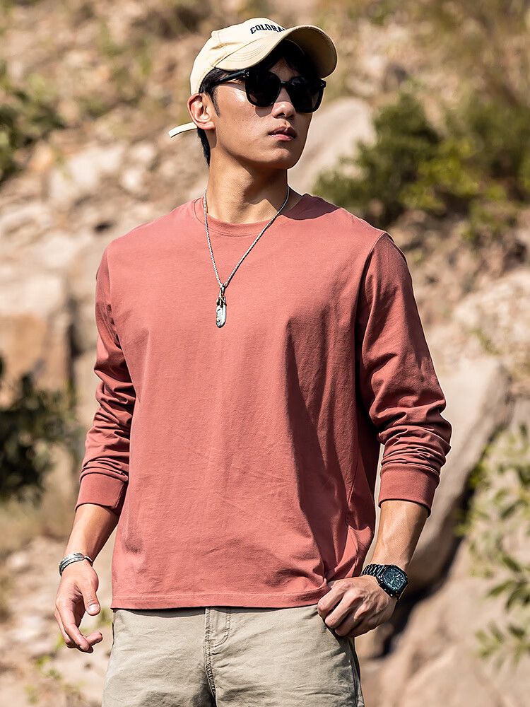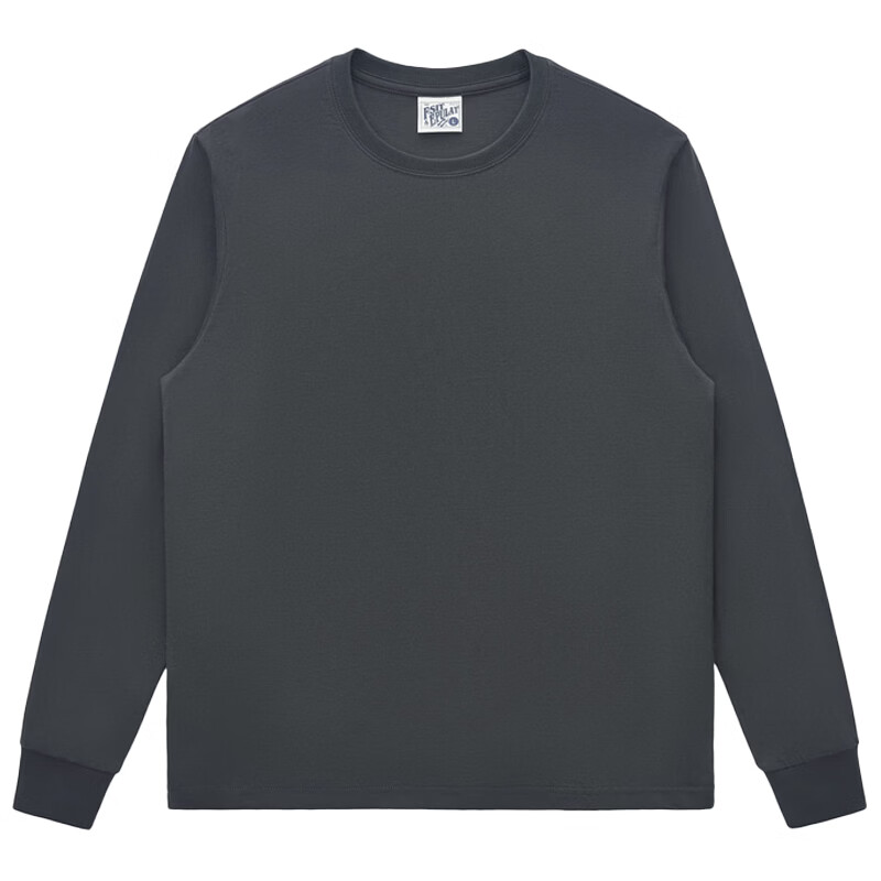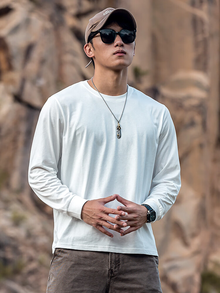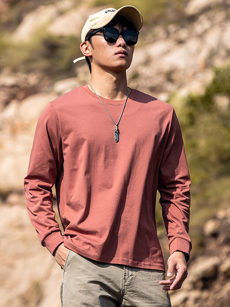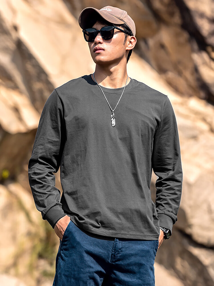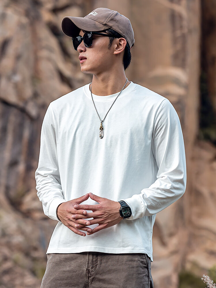 海行精梳纯棉长袖t恤男2025新款宽松透气圆领打底衫潮流百搭休闲上衣 黑色 3XL