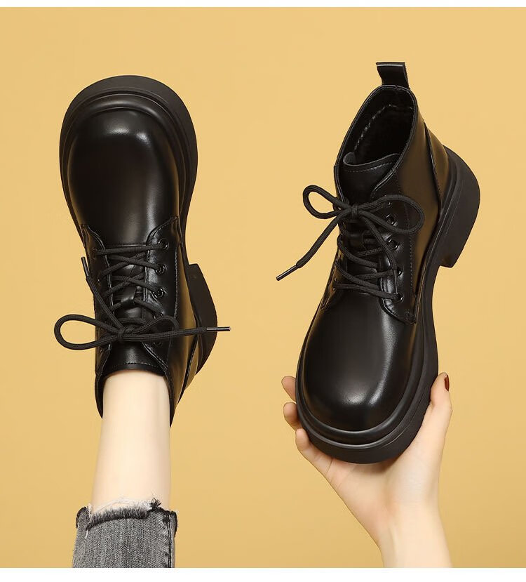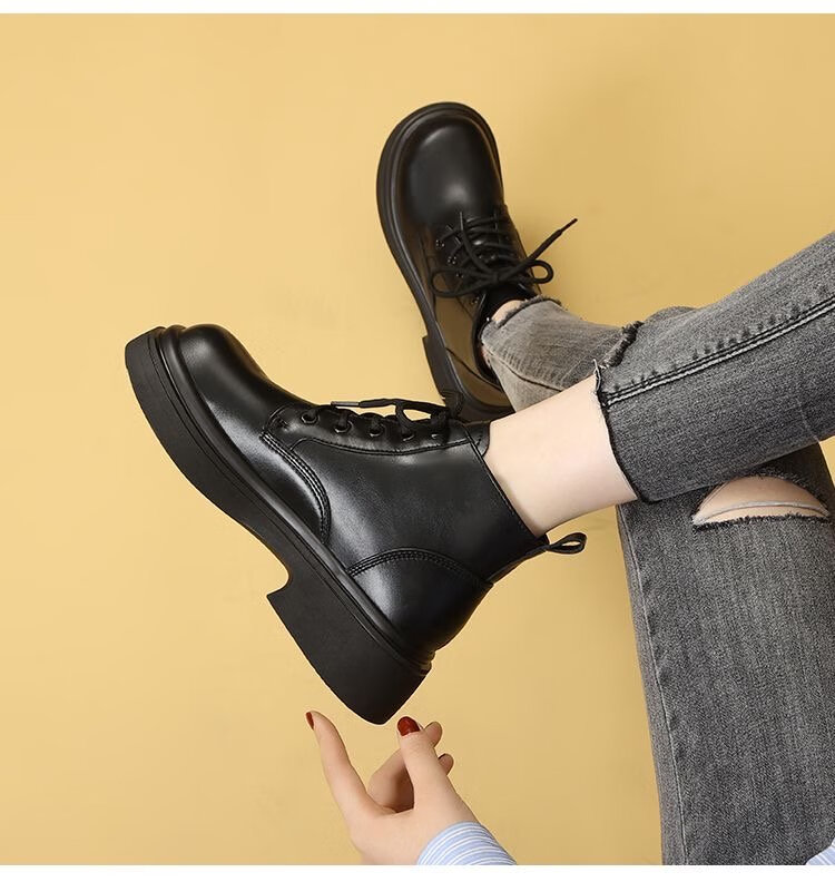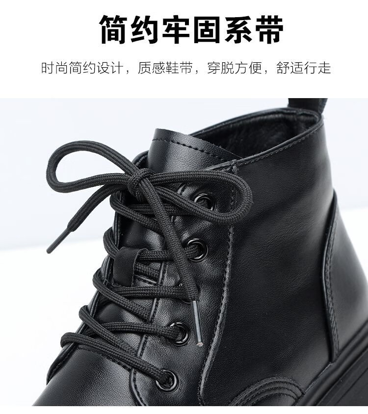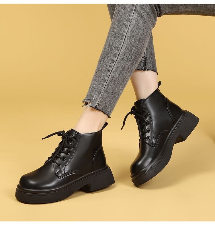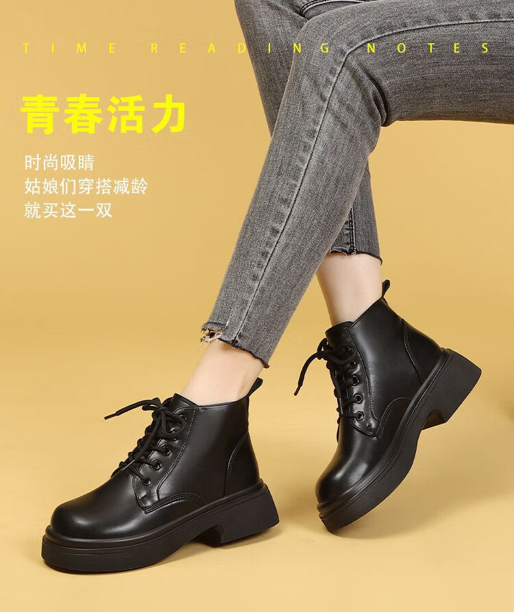 回力洞厚底马丁靴女2025新款秋冬单靴软底英伦风低帮爆款炸街小短靴 黑色【加绒】 40