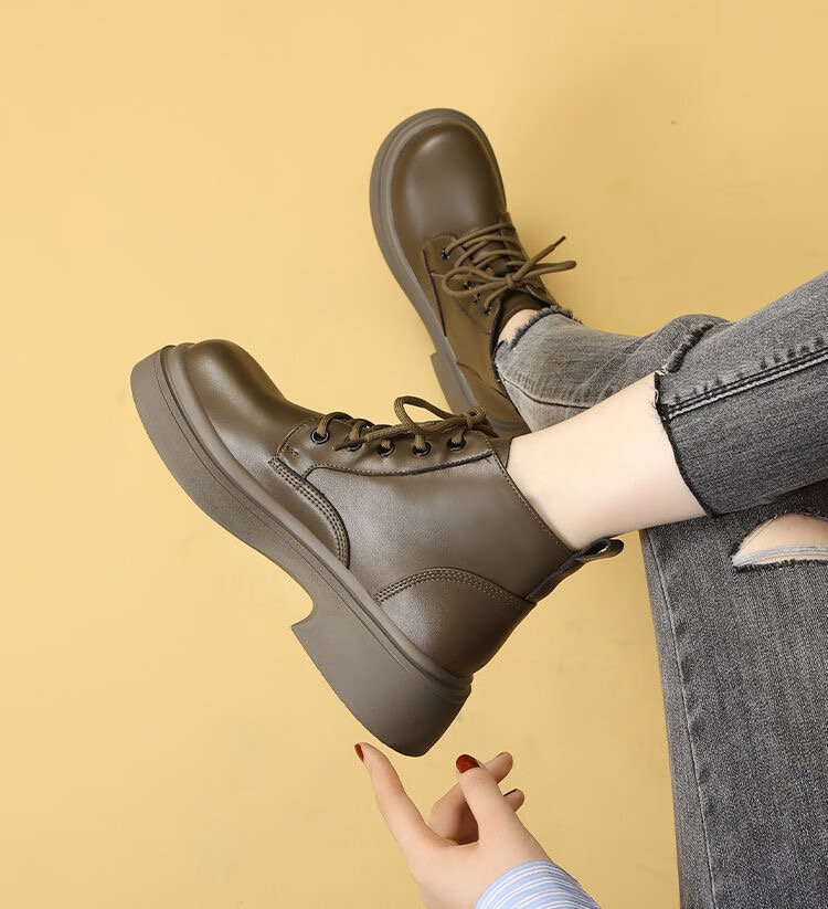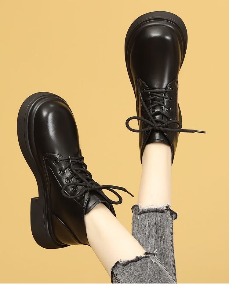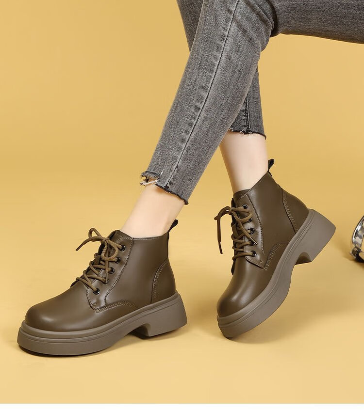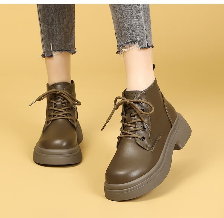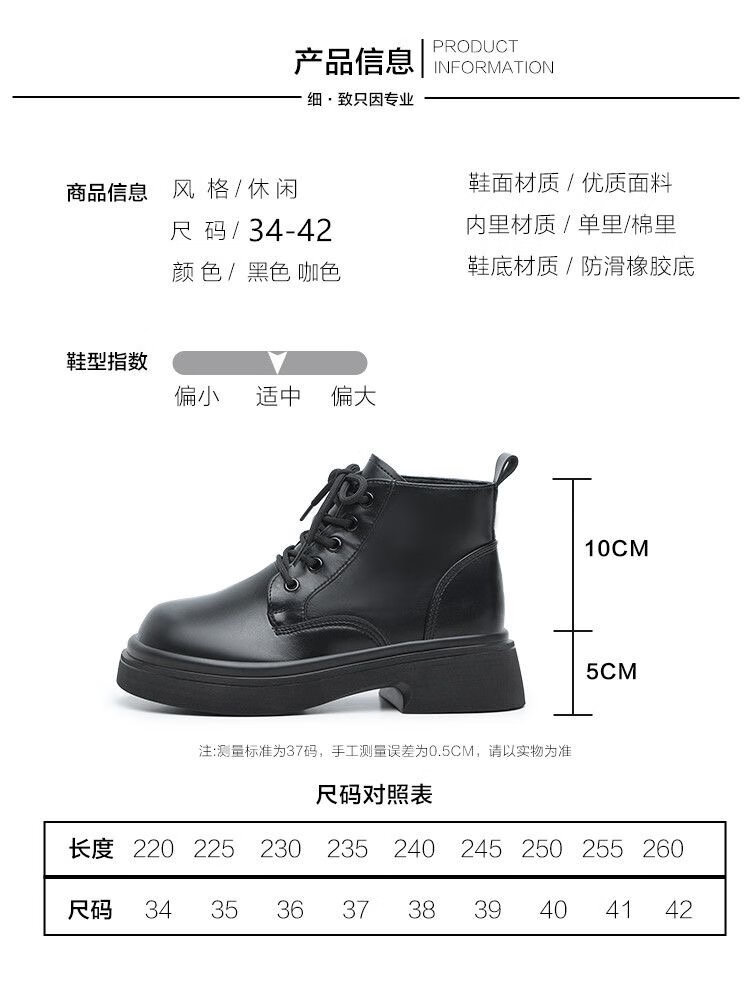 回力洞厚底马丁靴女2025新款秋冬单靴软底英伦风低帮爆款炸街小短靴 黑色【加绒】 40