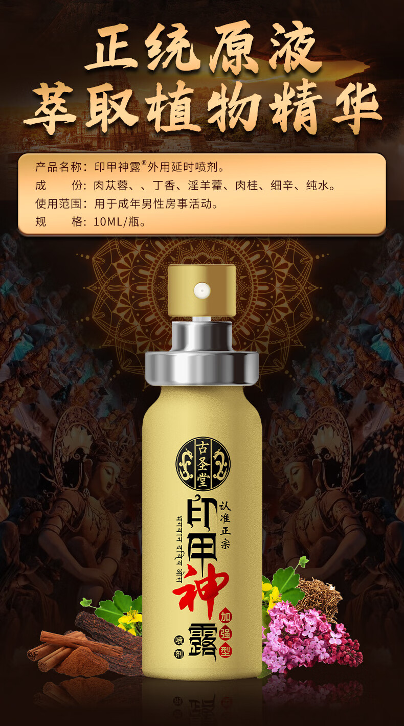 古圣堂印度神油男用延时喷剂延迟喷雾可口爱不麻木金枪不倒龟头敏感早泄 耐时王喷剂10ml
