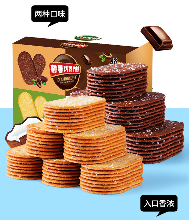 不多言约320包椰奶薄脆饼干咖啡巧克力香葱薄饼网红休闲小零食整箱早餐 【2箱/约40包】薄脆饼干混合味