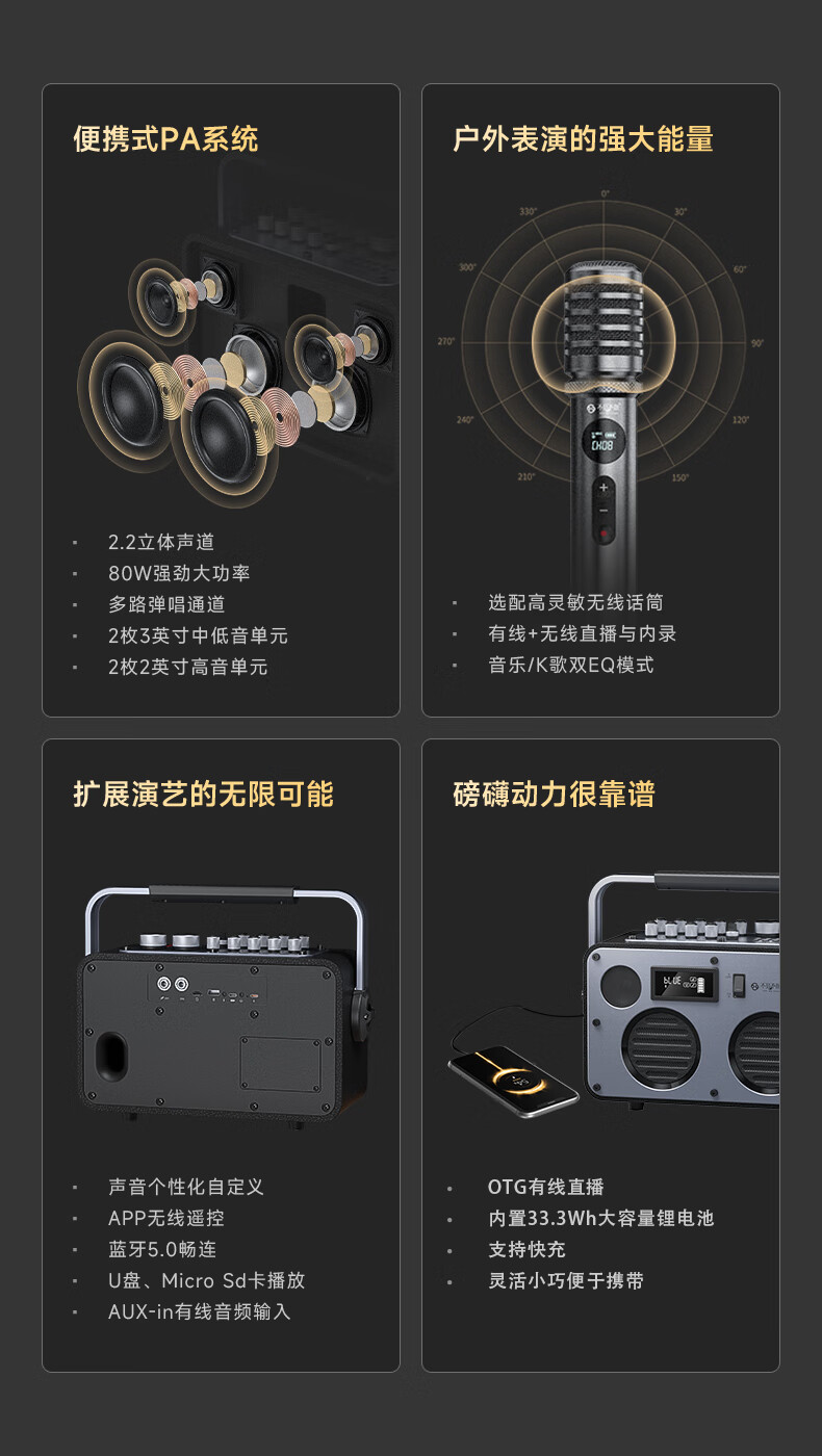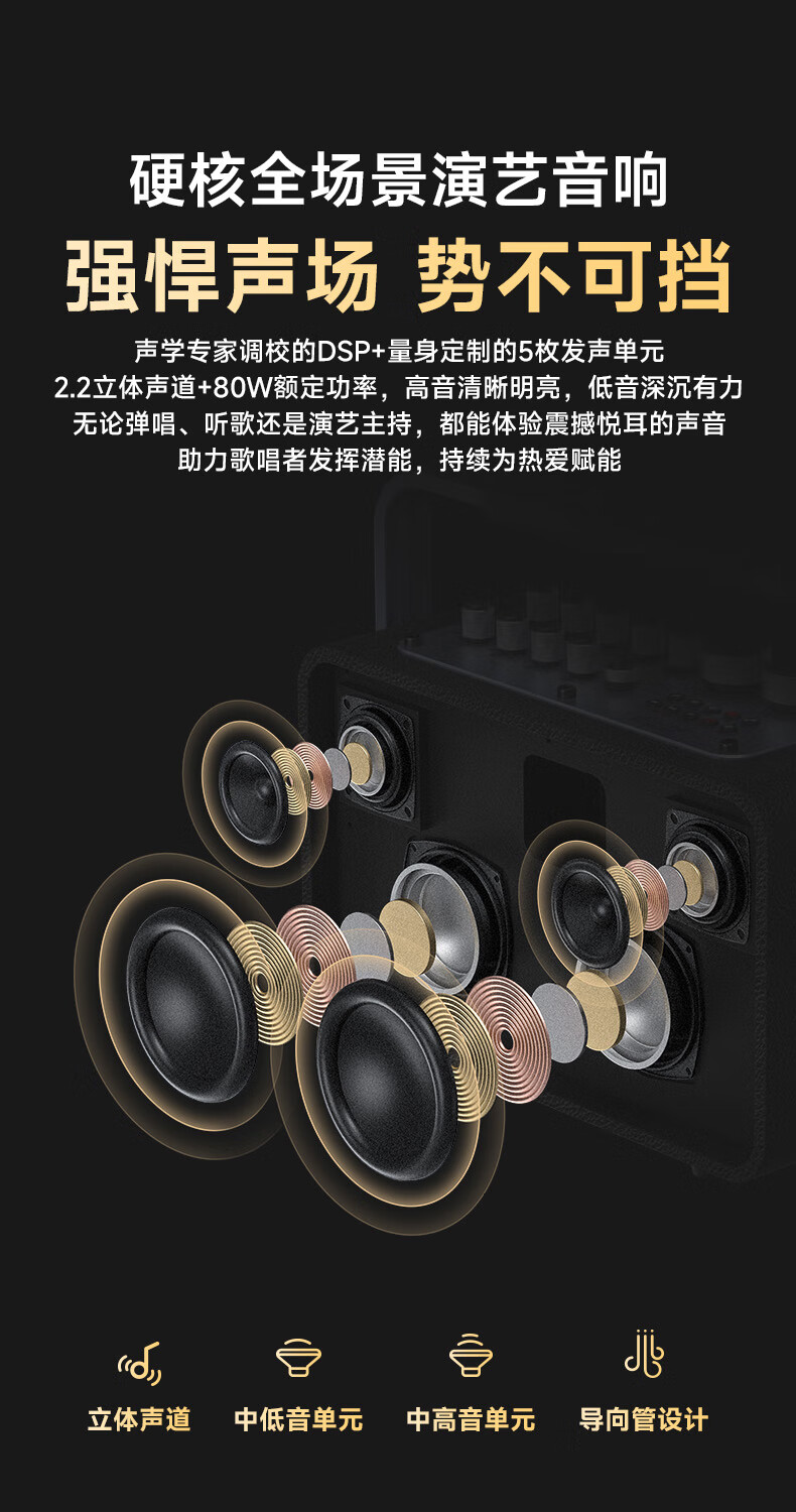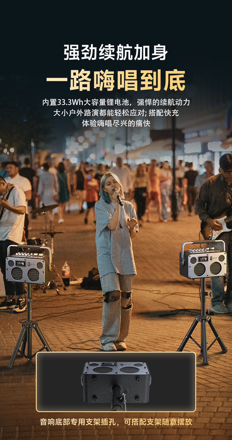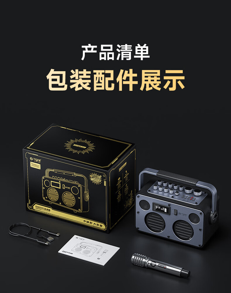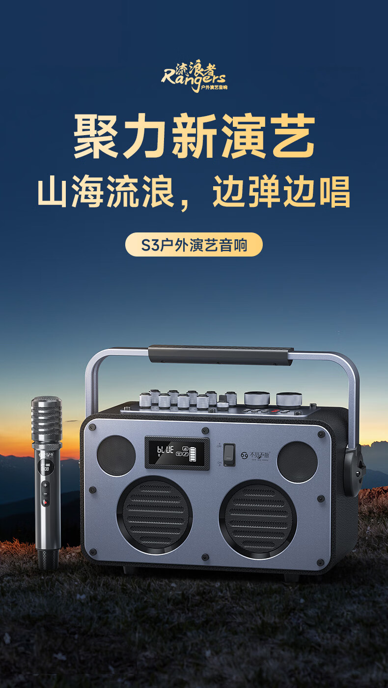 不见不散流浪者S3户外K歌音响手提便携式麦克风音响一体家庭KTV广场舞大音量重低音环绕立体声蓝牙小音箱 【典雅黑-单麦版】80W专业K歌+赠音响支架+U盘32G 【