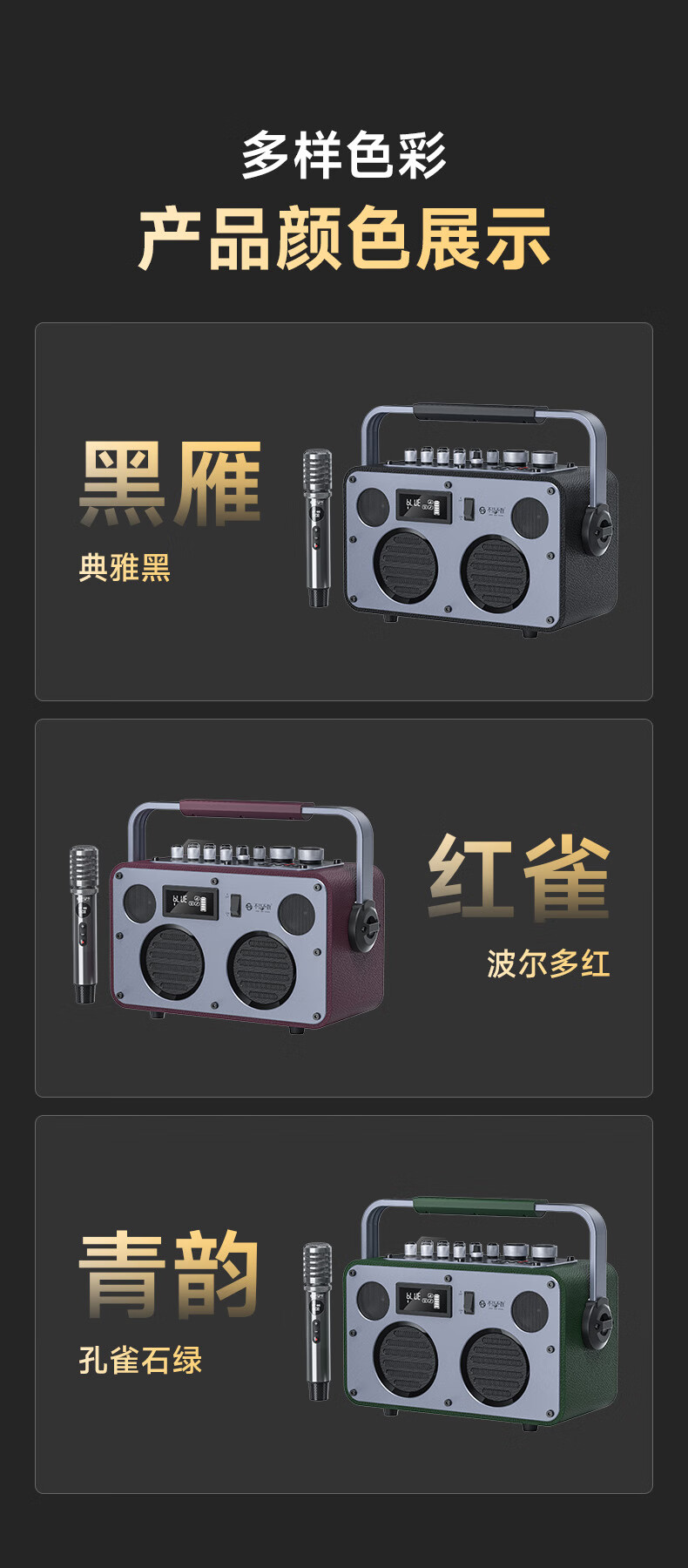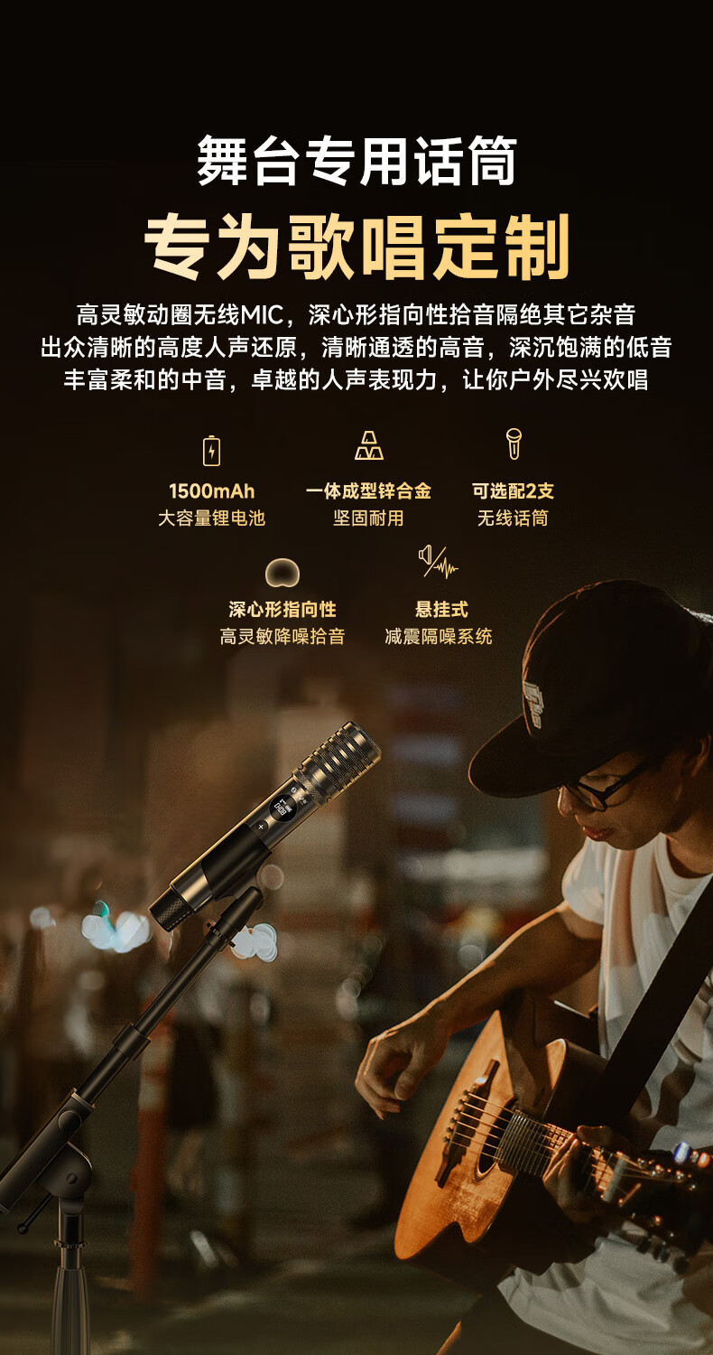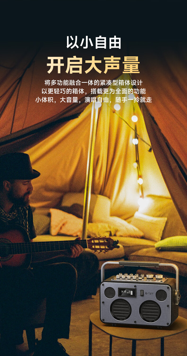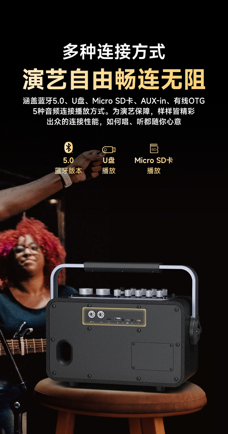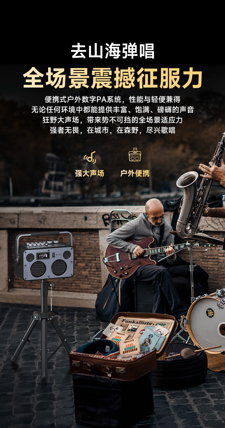 不见不散流浪者S3户外K歌音响手提便携式麦克风音响一体家庭KTV广场舞大音量重低音环绕立体声蓝牙小音箱 【典雅黑-单麦版】80W专业K歌+赠音响支架+U盘32G 【
