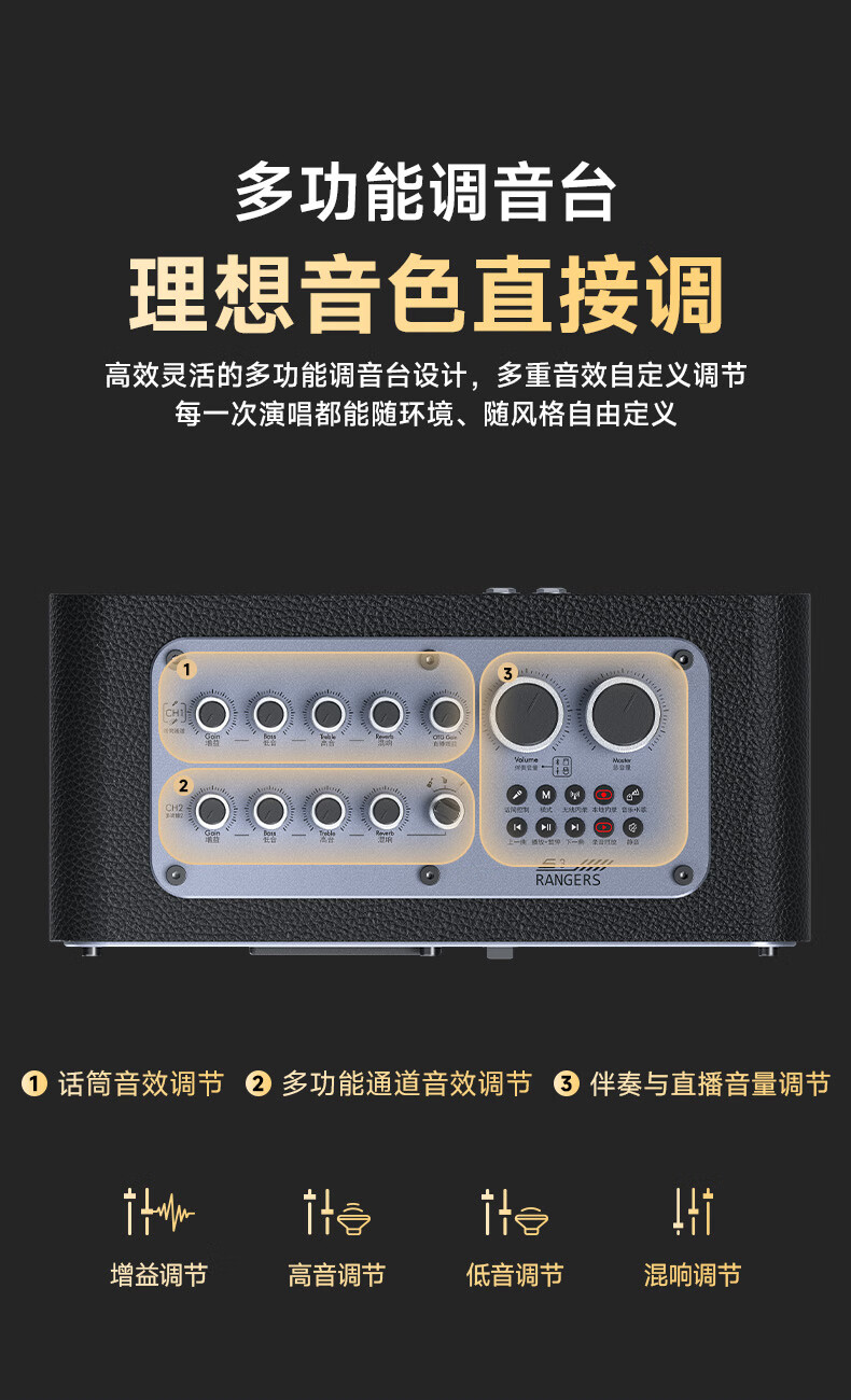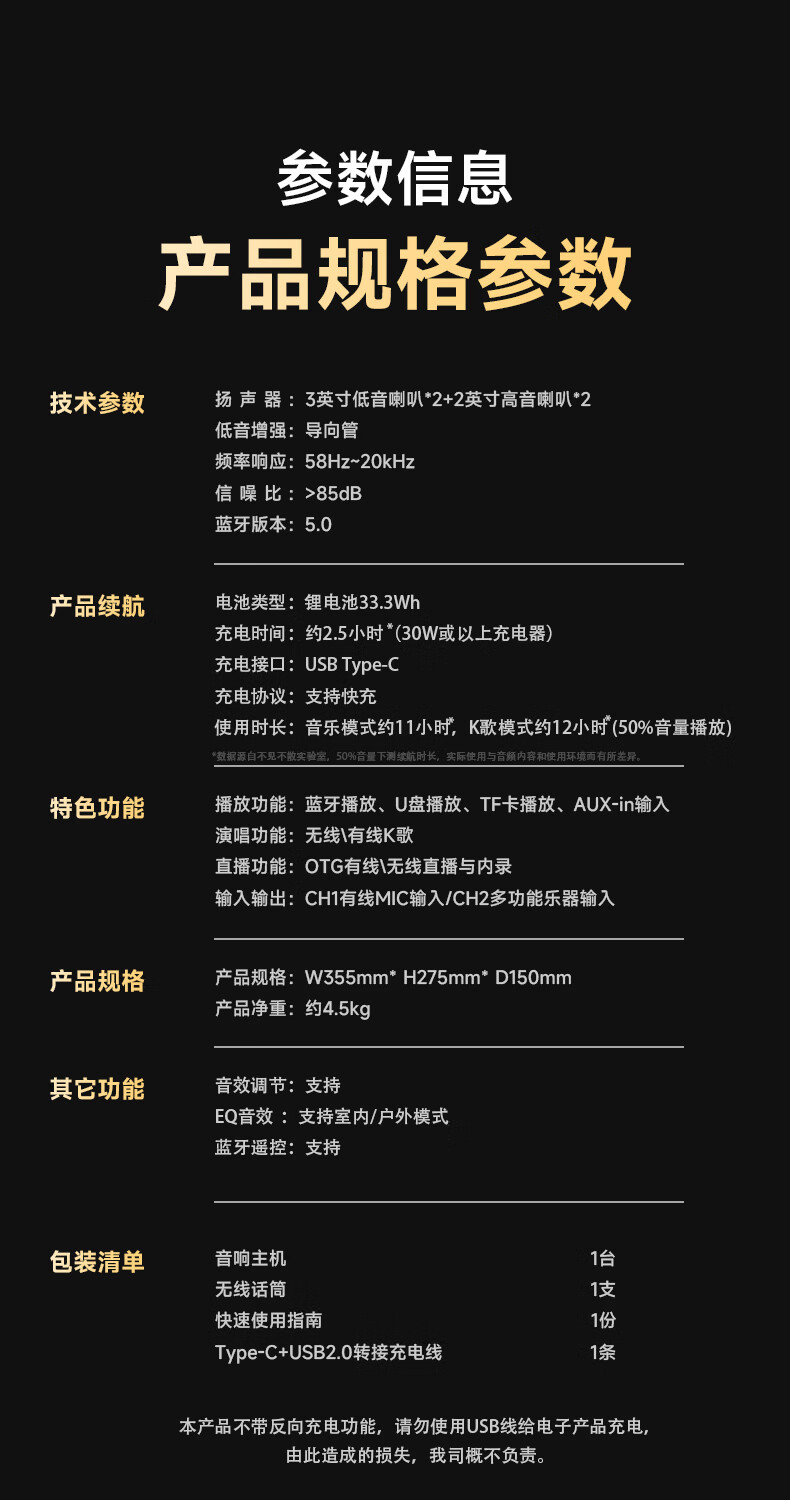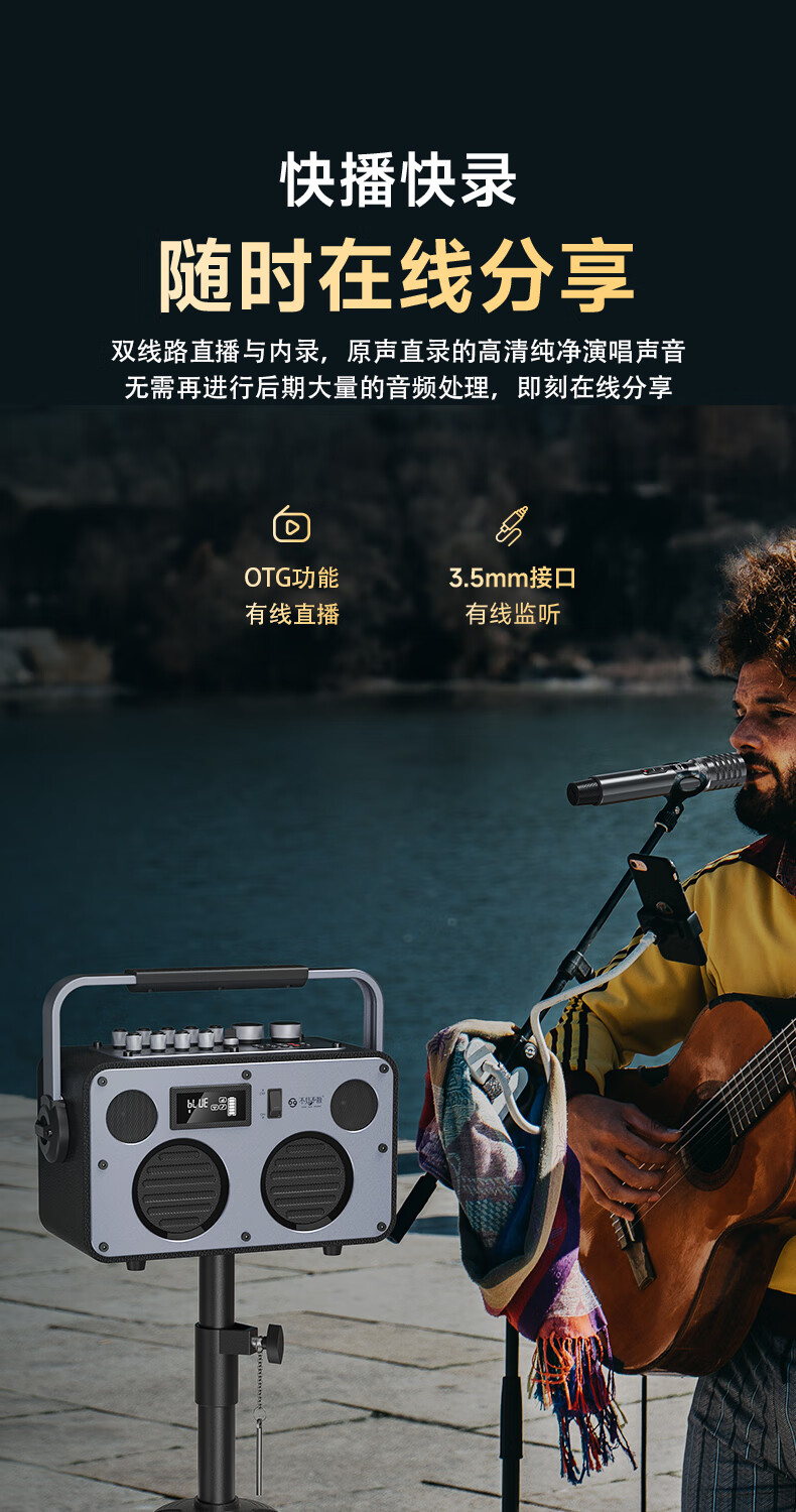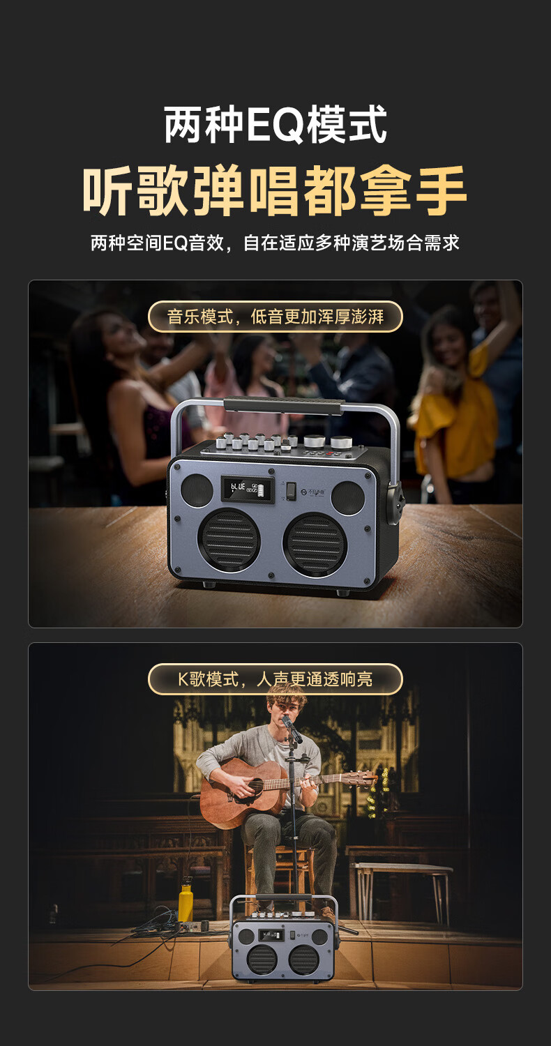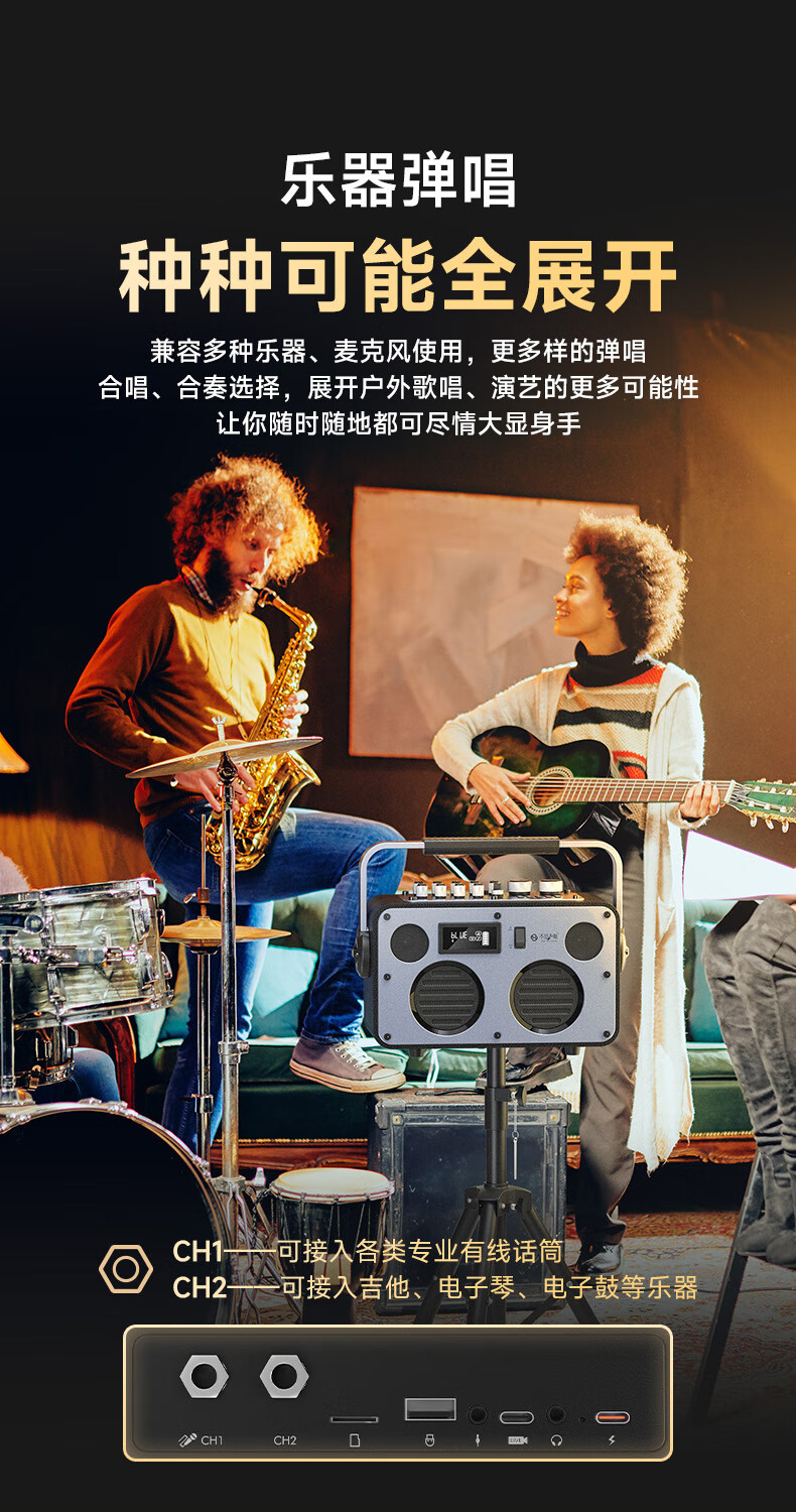 不见不散流浪者S3户外K歌音响手提便携式麦克风音响一体家庭KTV广场舞大音量重低音环绕立体声蓝牙小音箱 【典雅黑-单麦版】80W专业K歌+赠音响支架+U盘32G 【