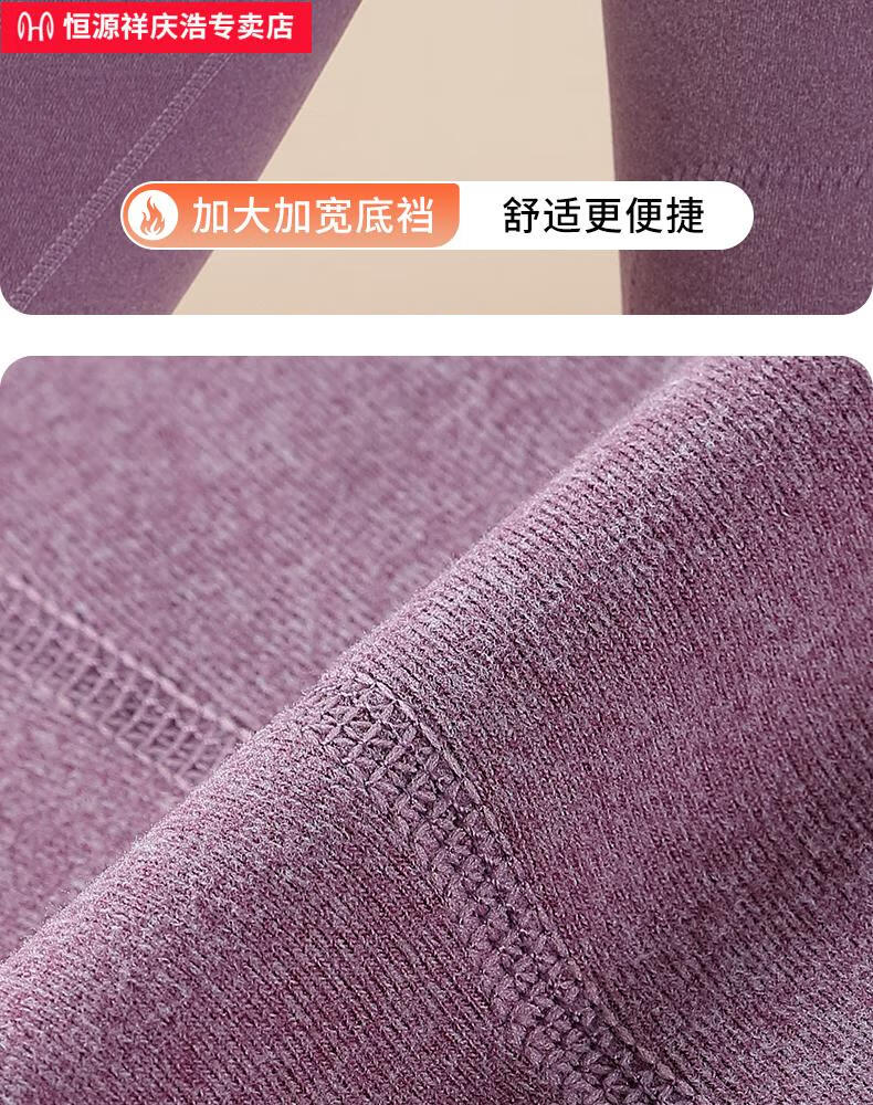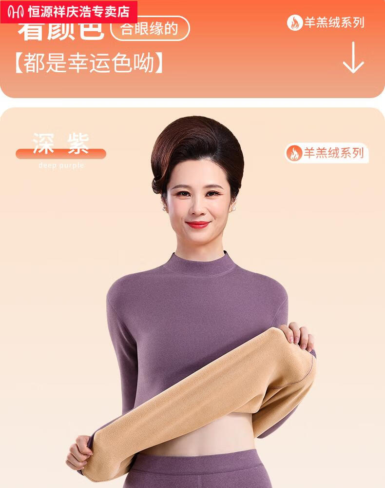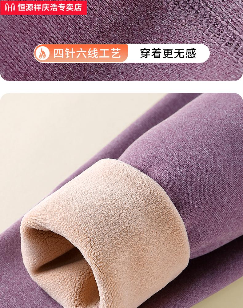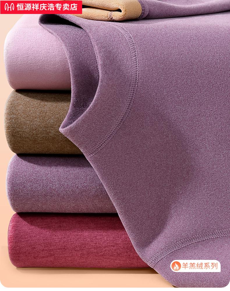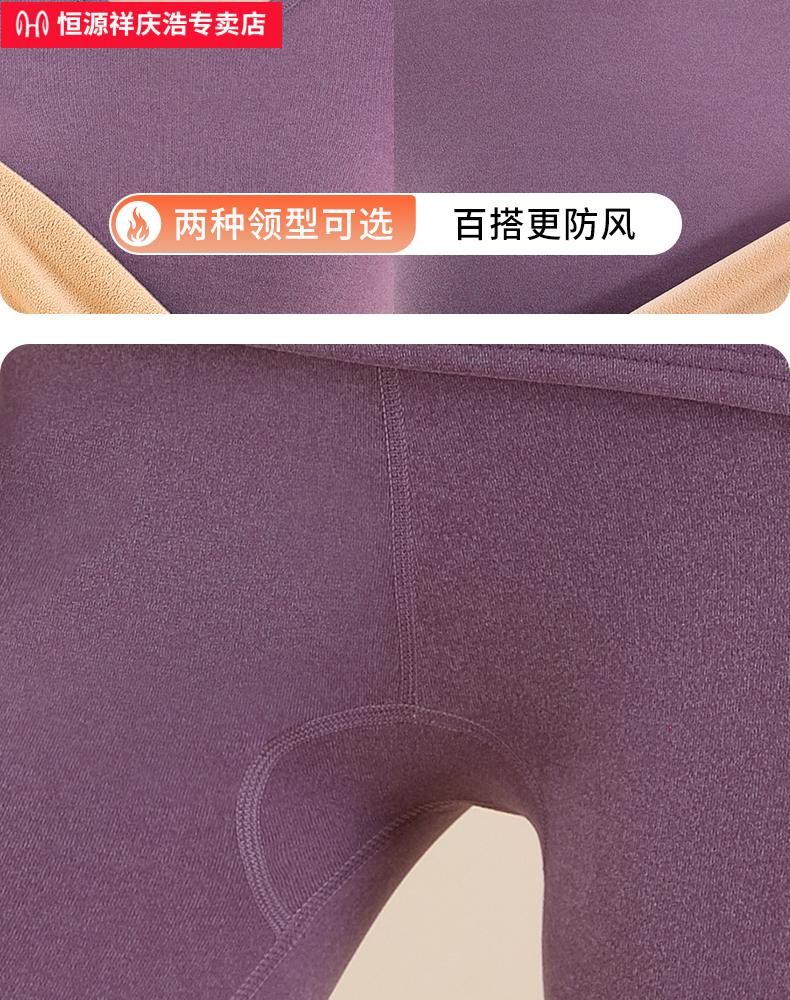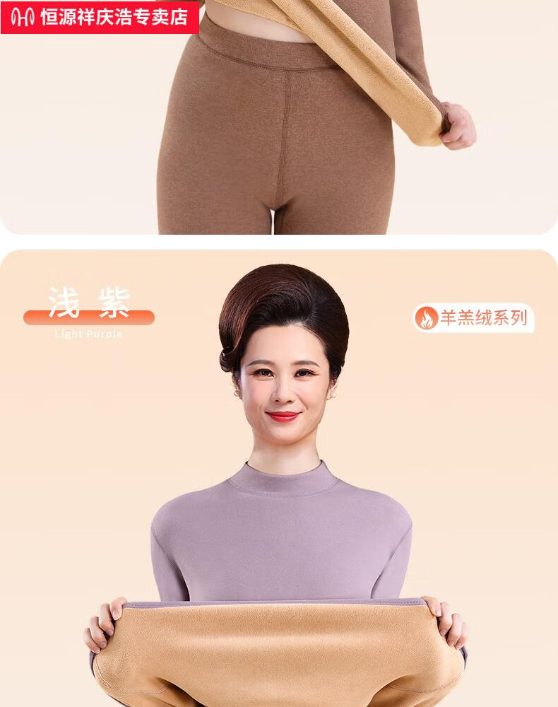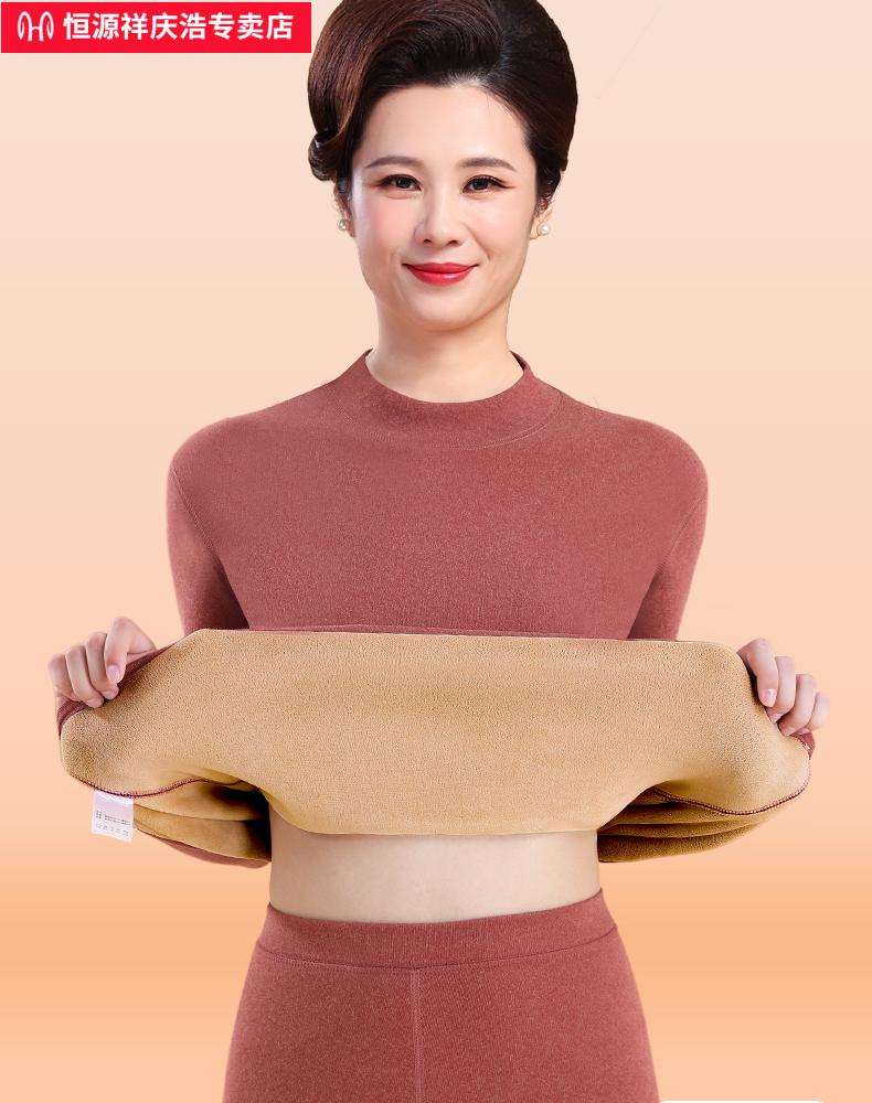 恒源祥保暖内衣女士套装加厚加绒德中老年人妈妈中高领秋衣秋裤打底冬季 【中领2套】浅紫+卡其 4XL