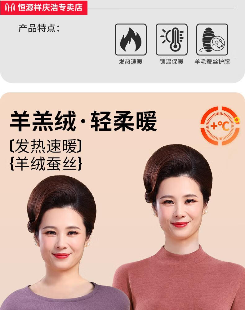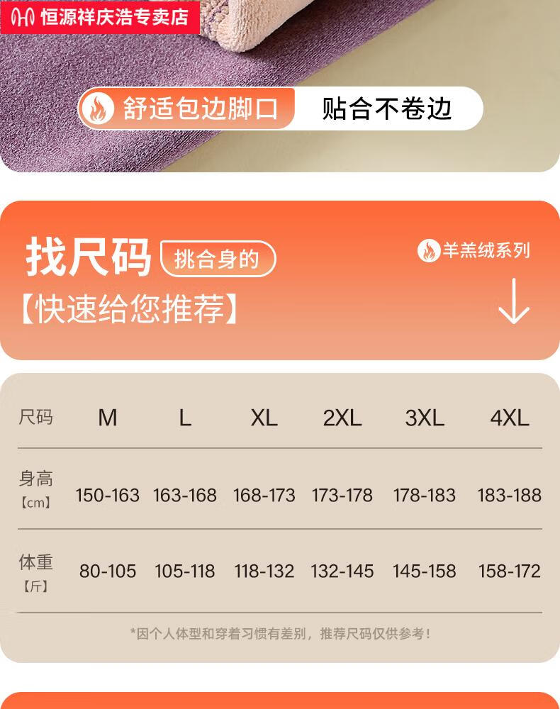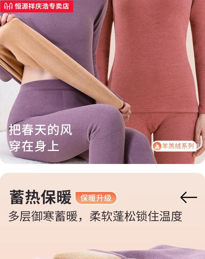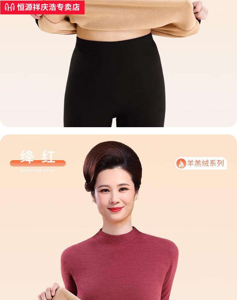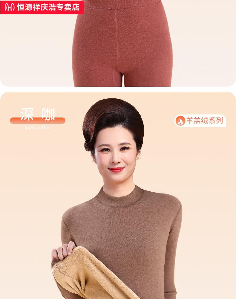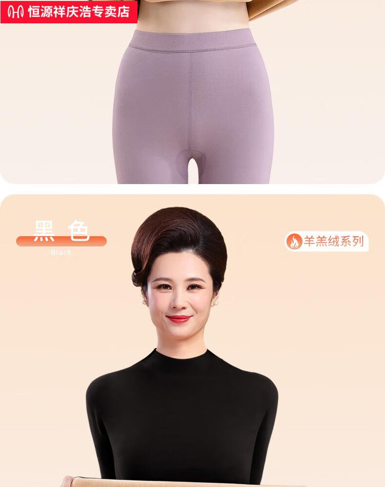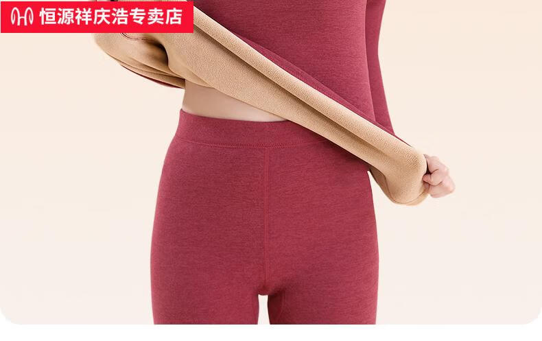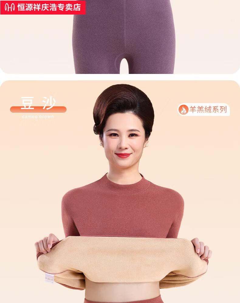 恒源祥保暖内衣女士套装加厚加绒德中老年人妈妈中高领秋衣秋裤打底冬季 【中领2套】浅紫+卡其 4XL